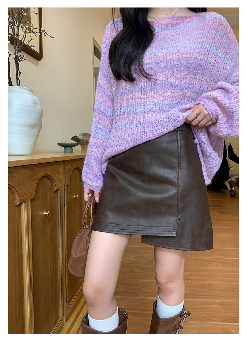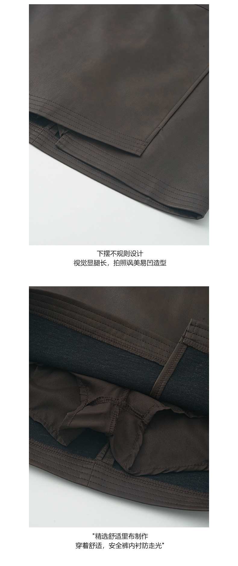 *o-ha-you*【FHZ143QY7011】不規則高腰A字半身皮裙2024秋韓修身顯瘦包臀短裙-2色
