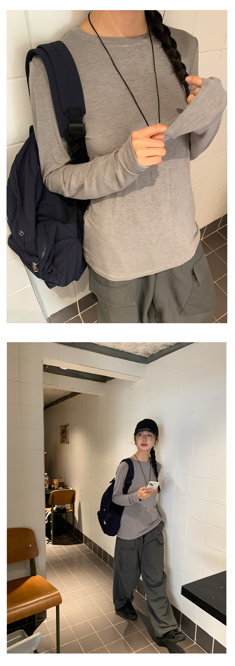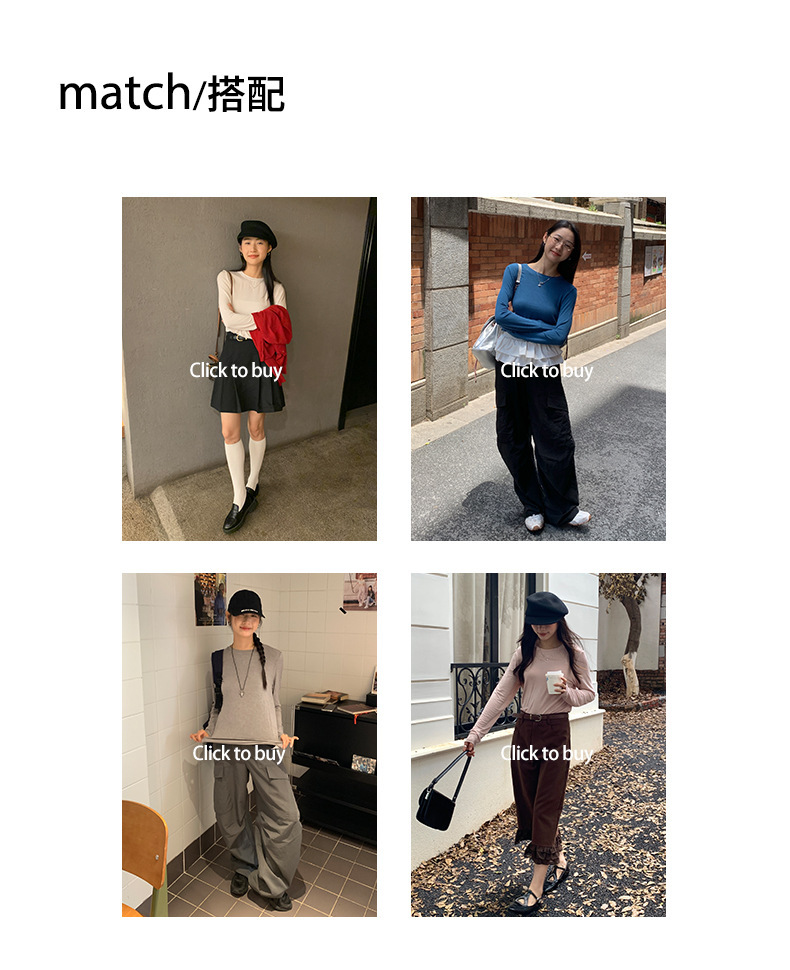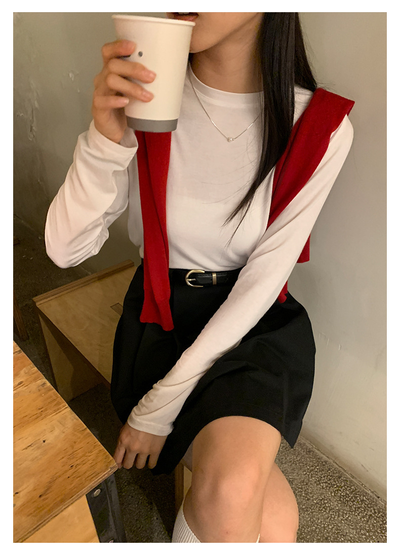 *o-ha-you*【FHZ143TH6007】簡約圓領薄款長袖T恤2024早秋韓版休閒顯瘦打底衫-5色