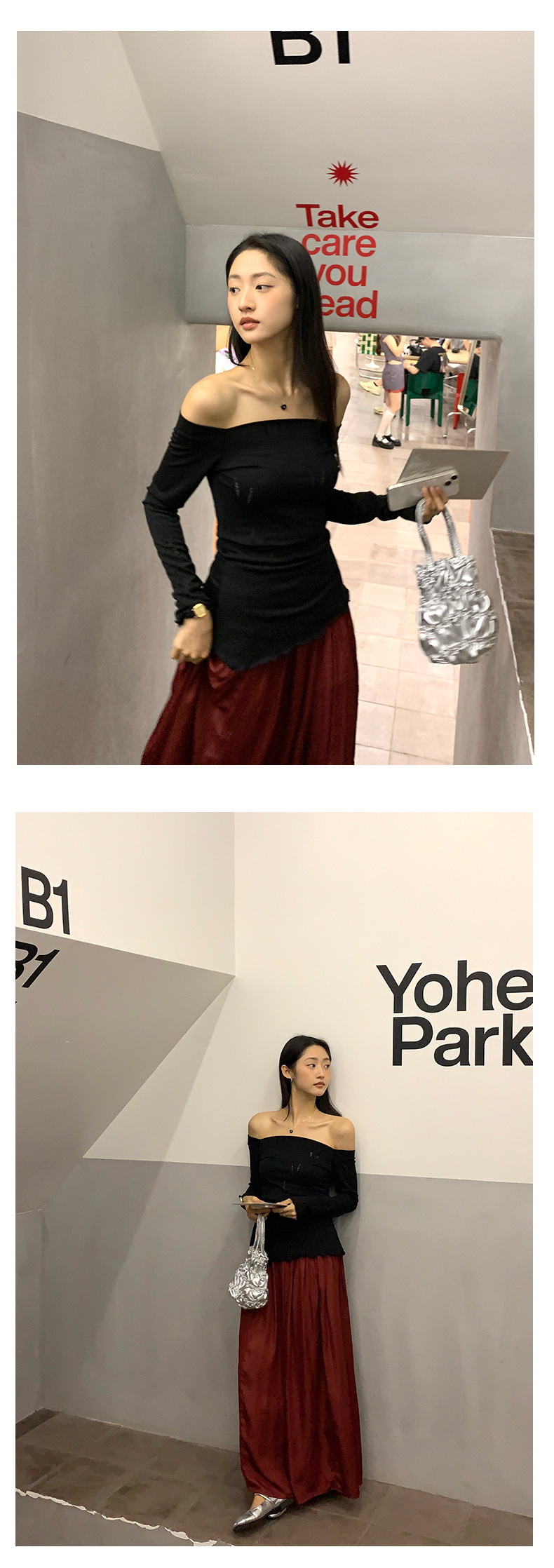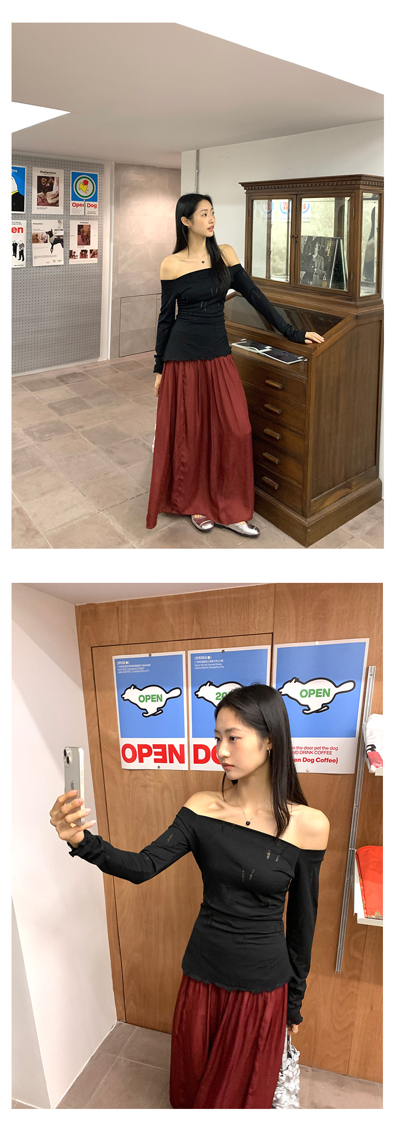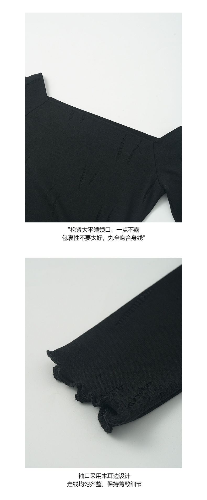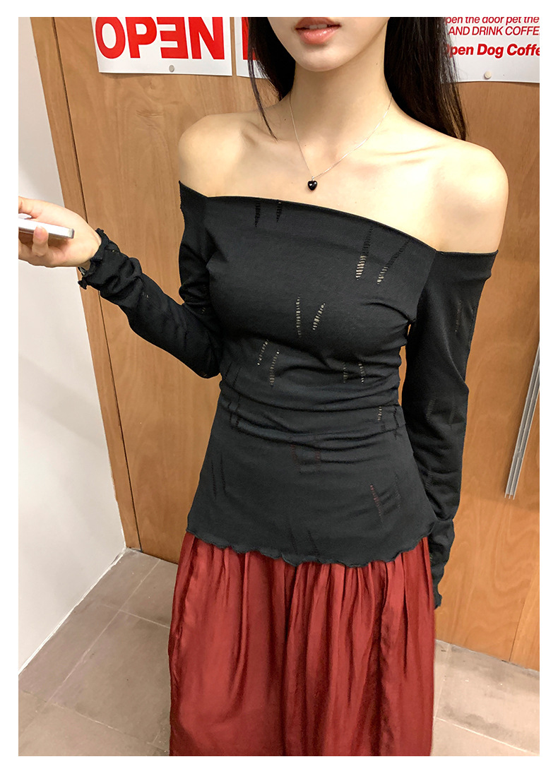 *o-ha-you*【FHZ143TY6045】不規則鏤空一字肩長袖T恤2024秋季韓版顯瘦打底衫