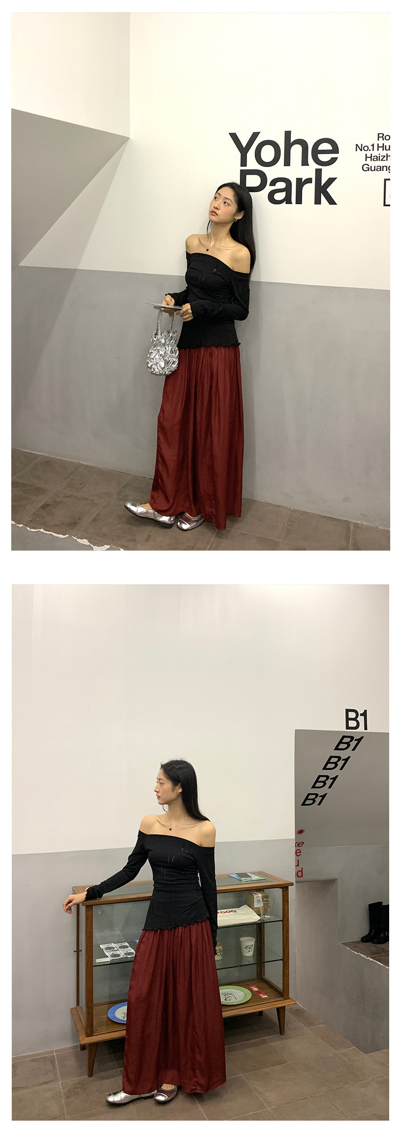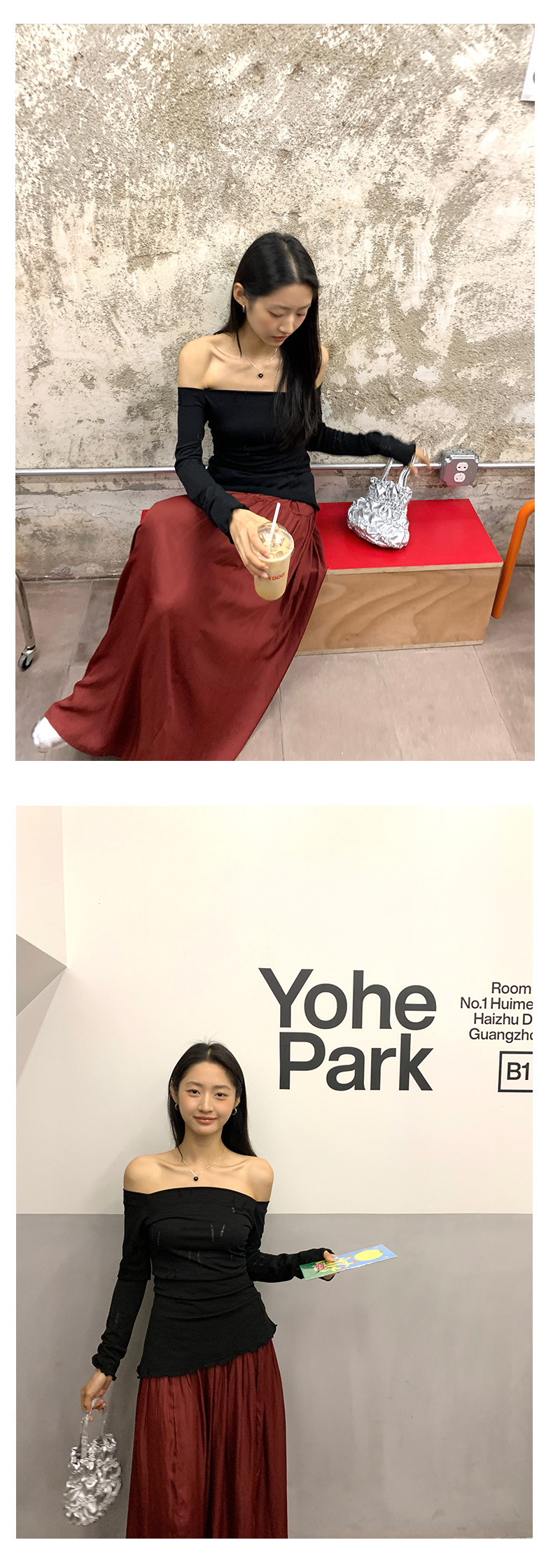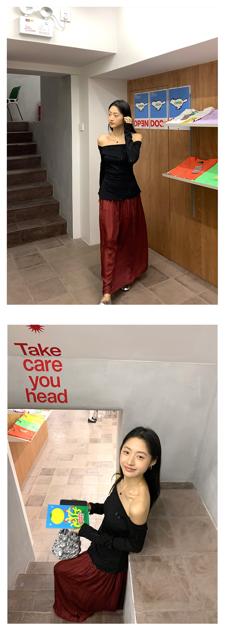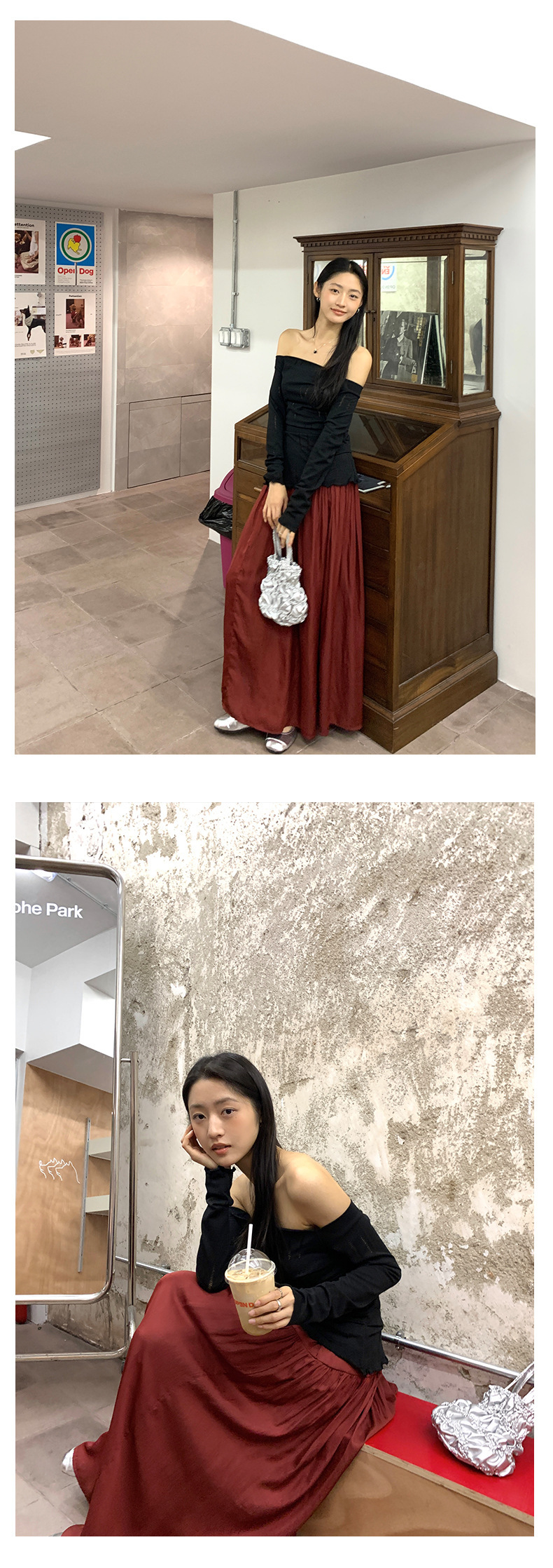 *o-ha-you*【FHZ143TY6045】不規則鏤空一字肩長袖T恤2024秋季韓版顯瘦打底衫
