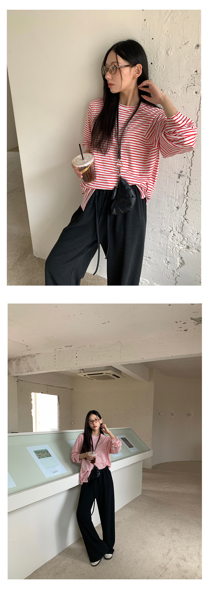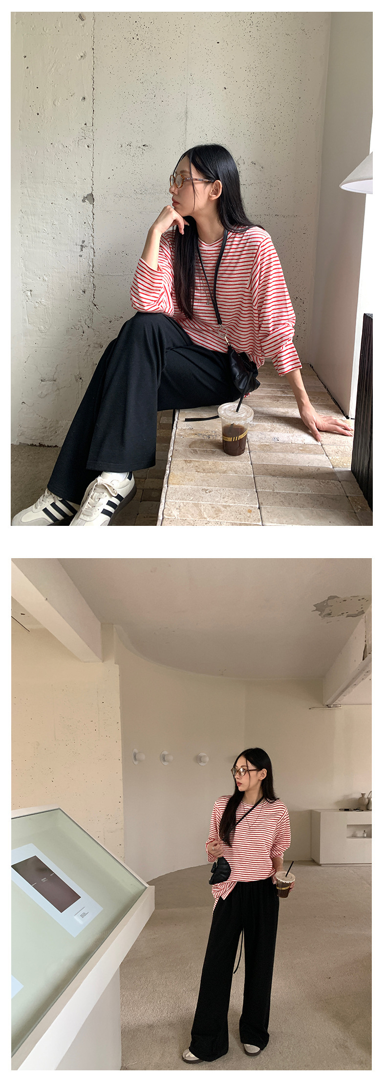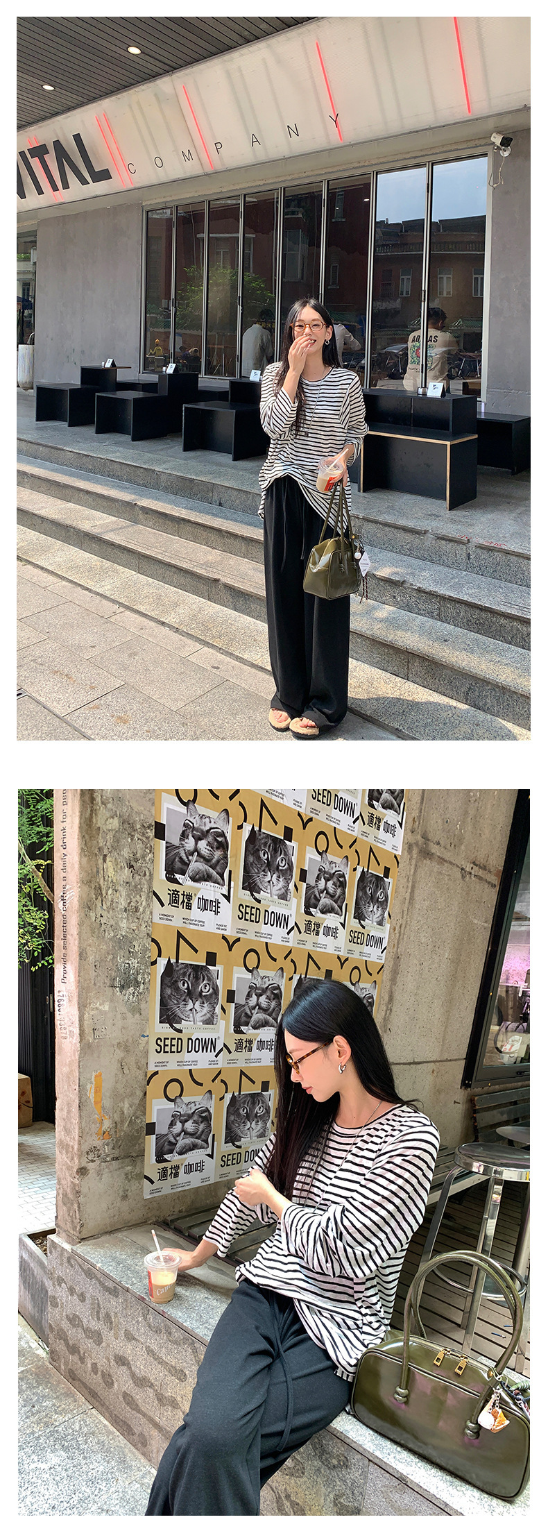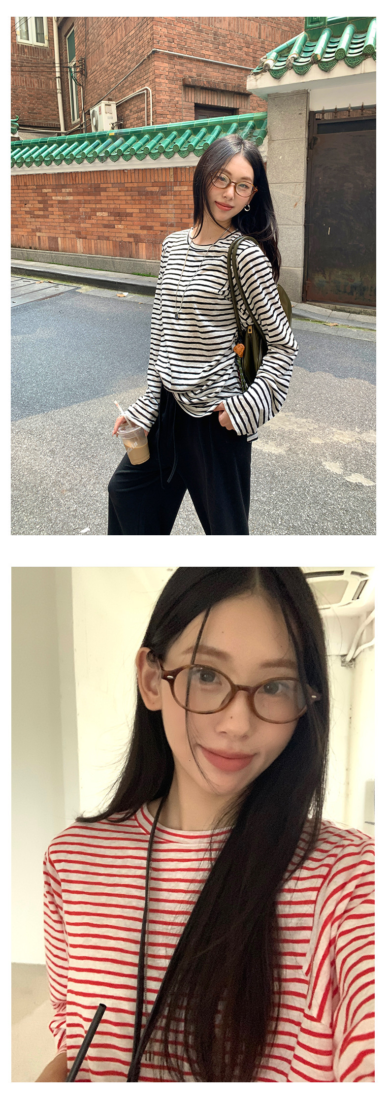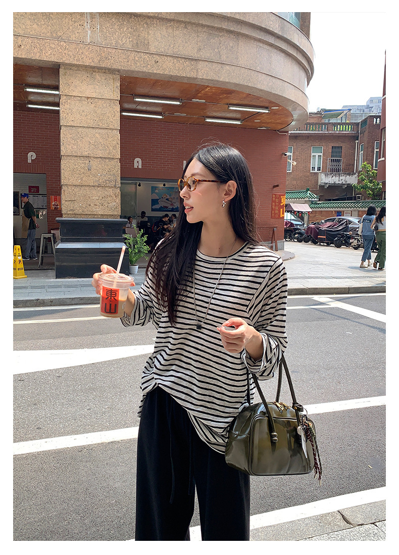 *o-ha-you*【FHZ143TY7036】韓系撞色條紋長袖T恤2024秋韓版寬鬆休閒打底衫-2色