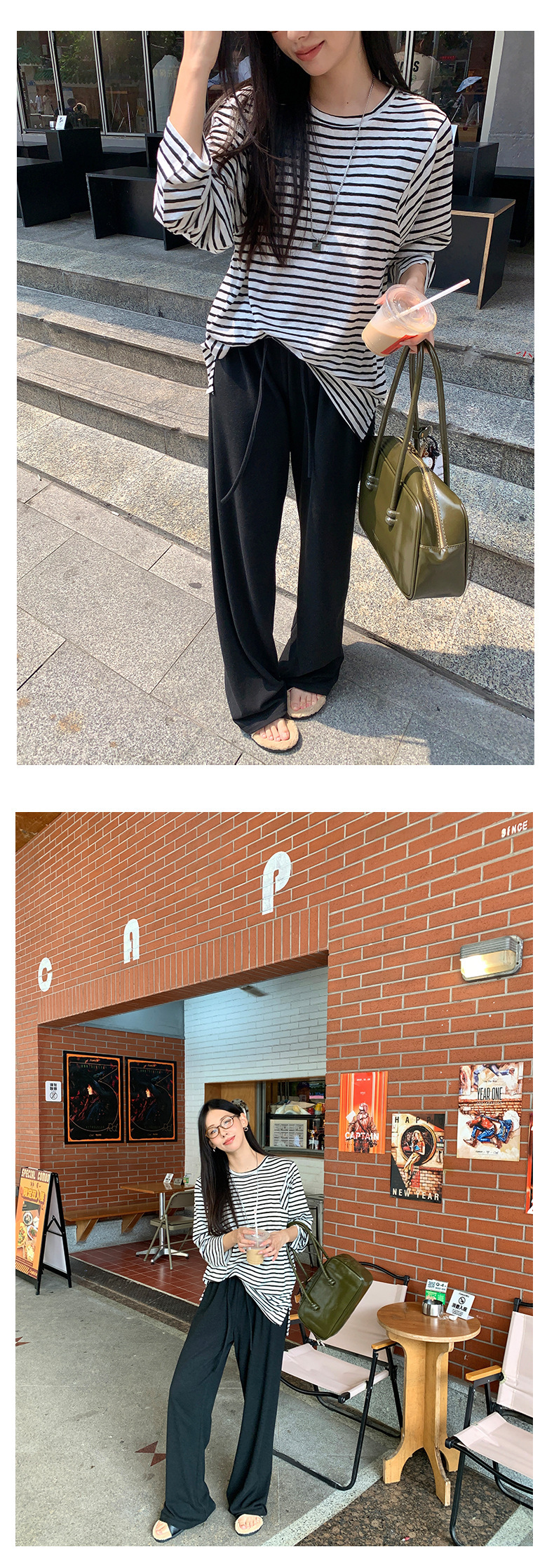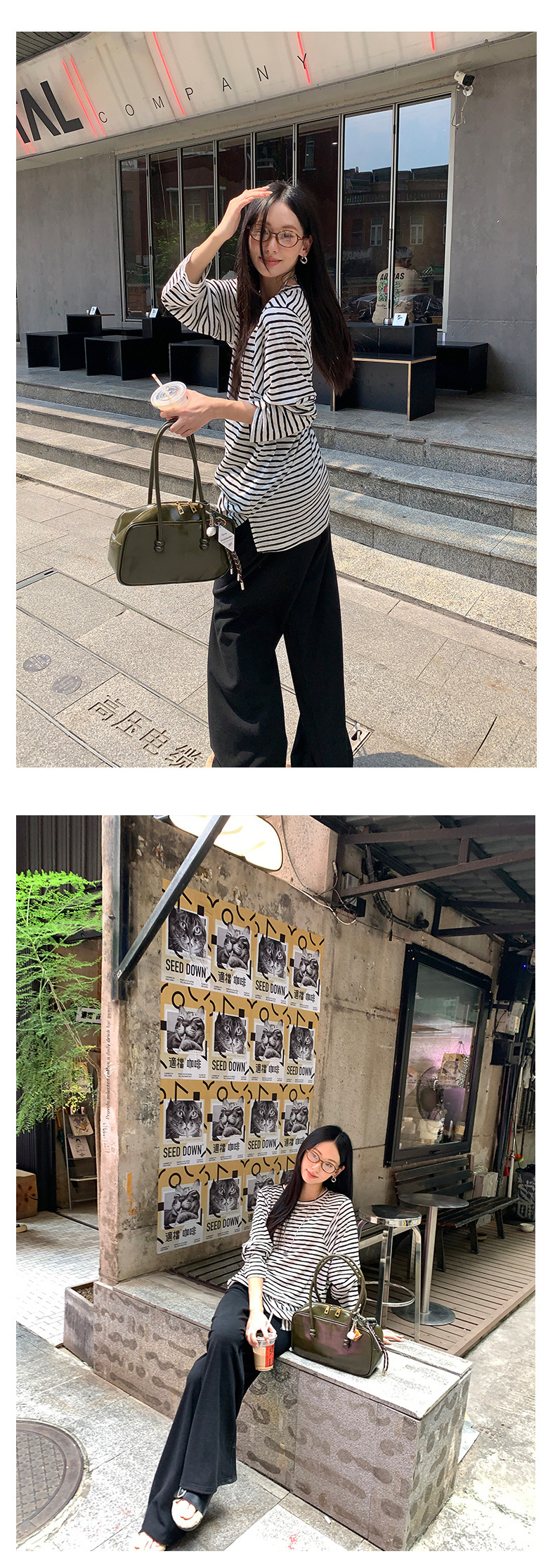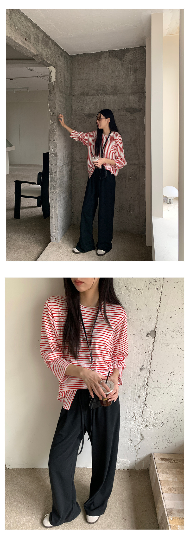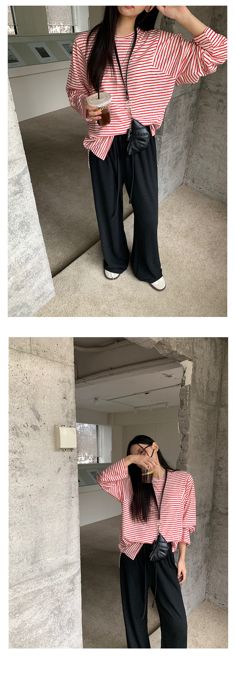 *o-ha-you*【FHZ143TY7036】韓系撞色條紋長袖T恤2024秋韓版寬鬆休閒打底衫-2色