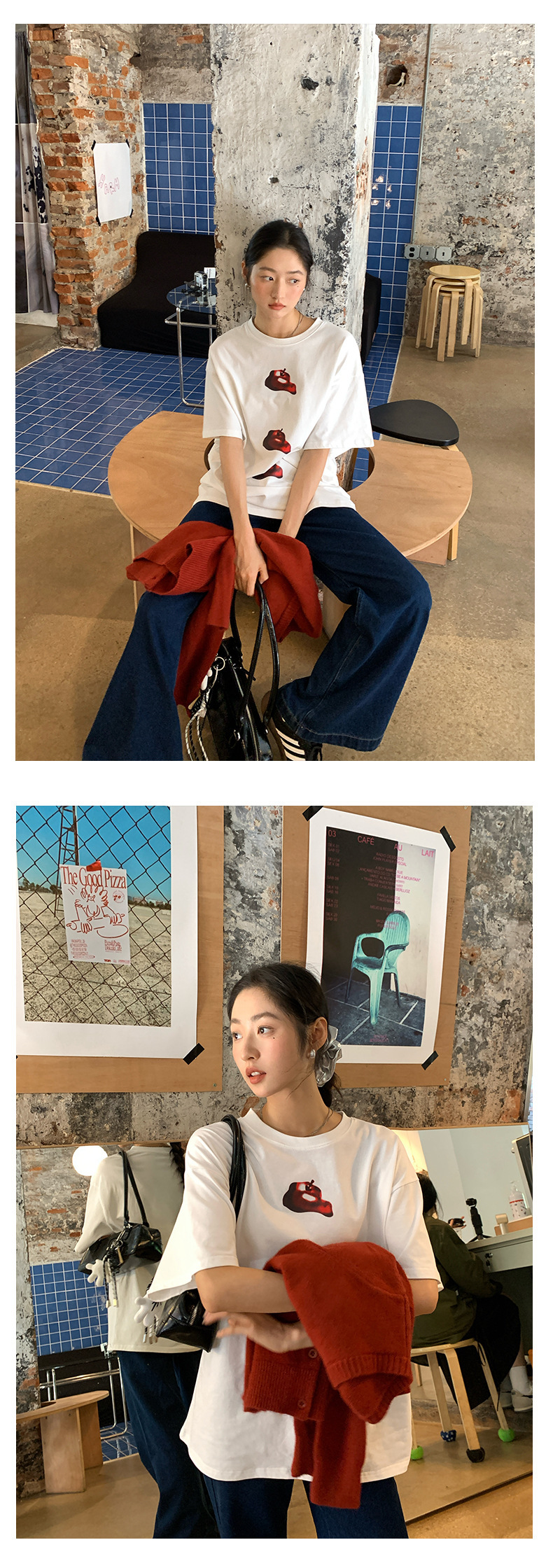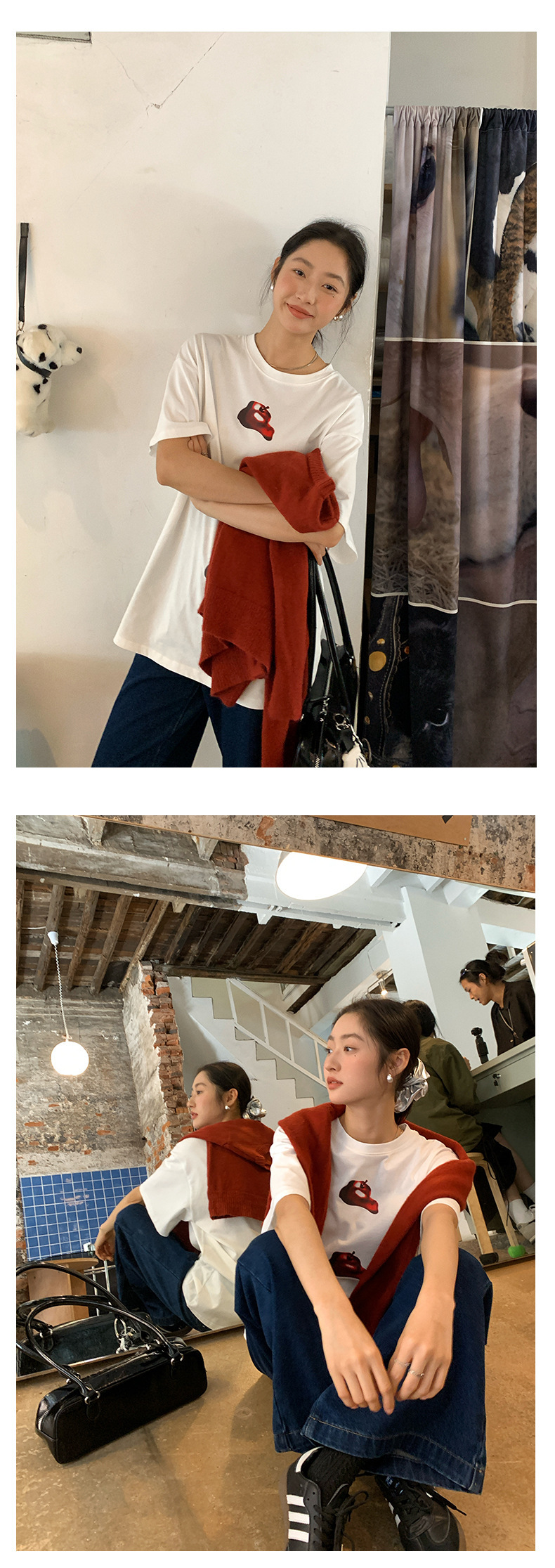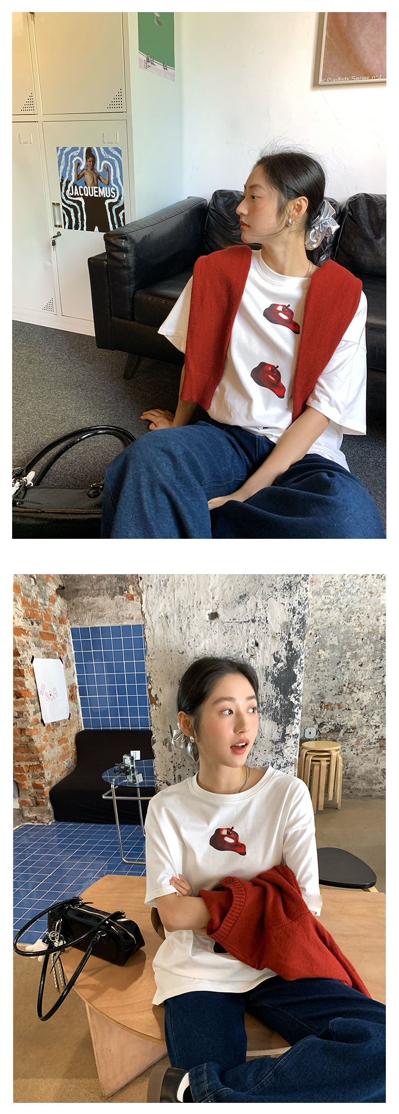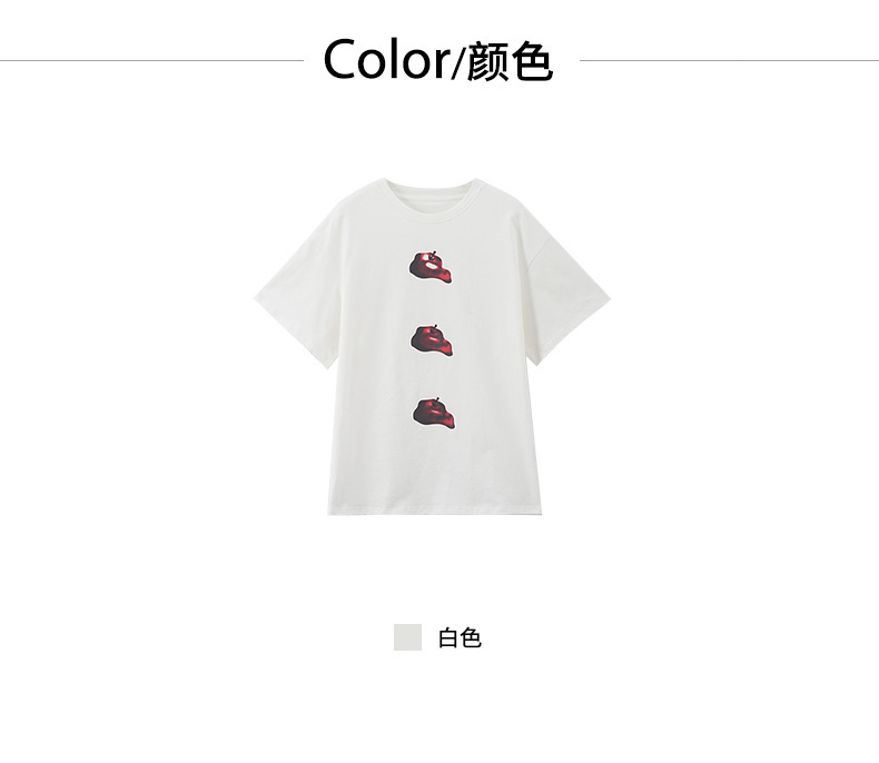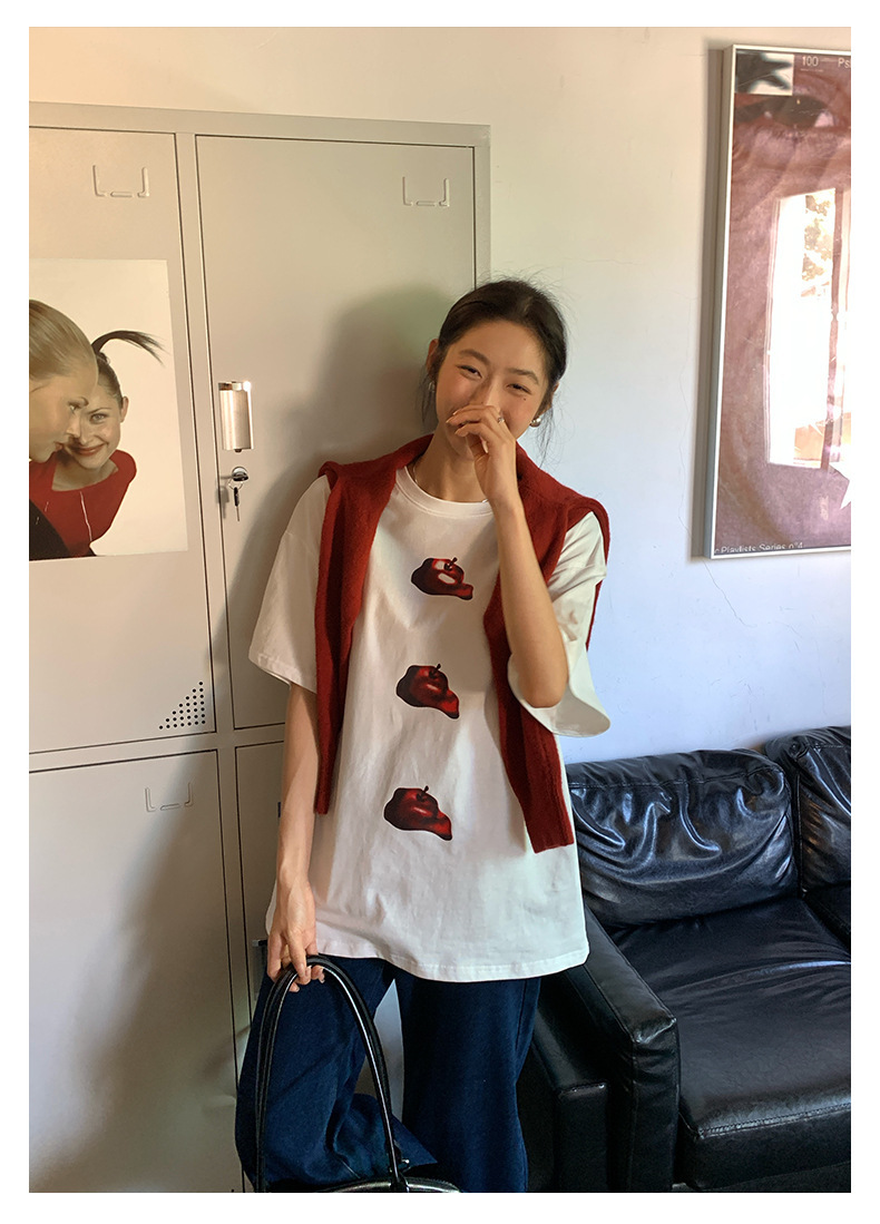 *o-ha-you*【FHZ143TY7059】韓系卡通蘋果印花短袖T恤2024秋韓版寬鬆休閒上衣
