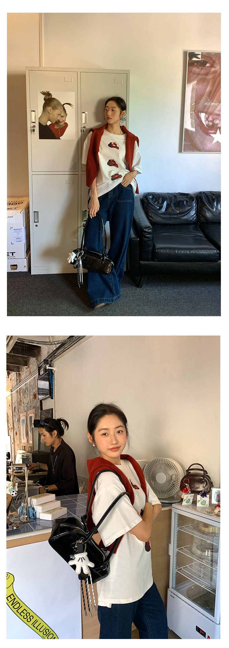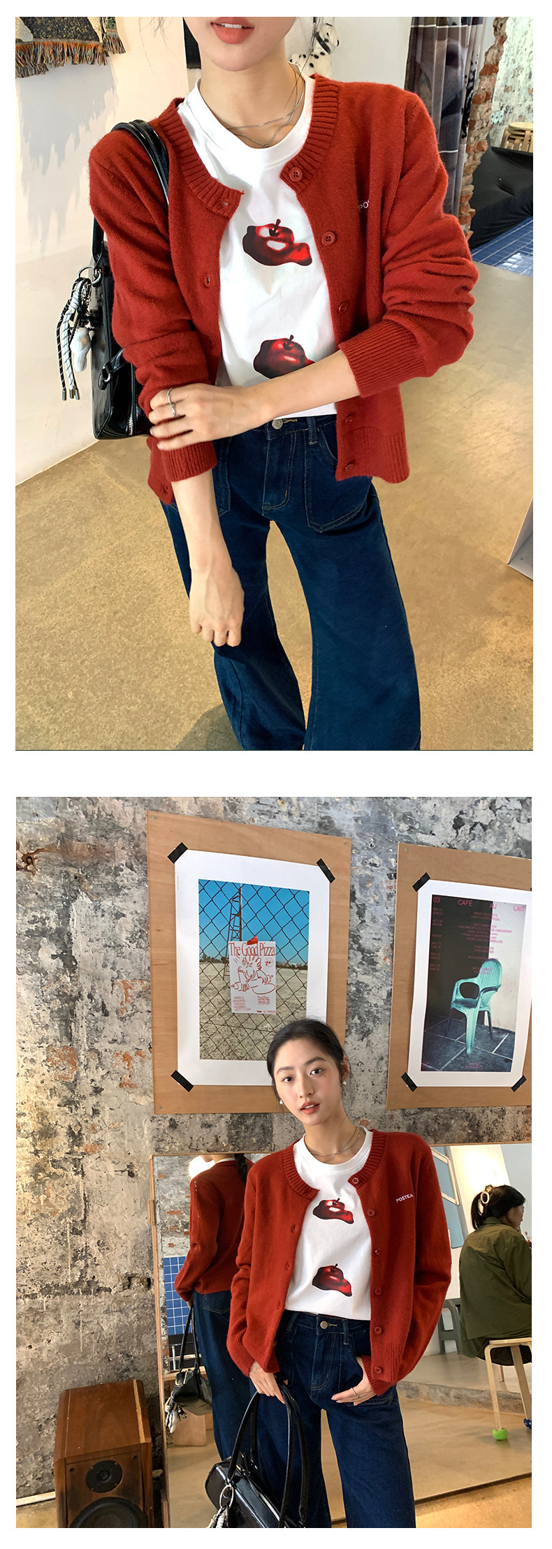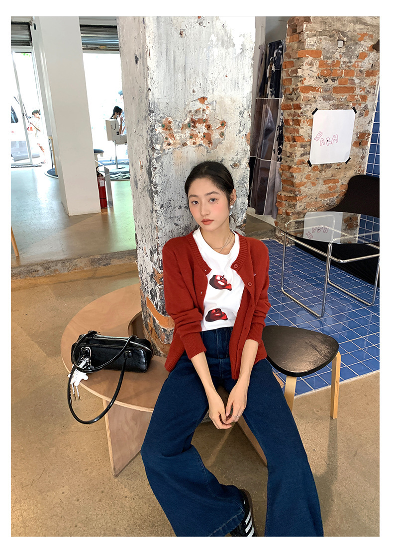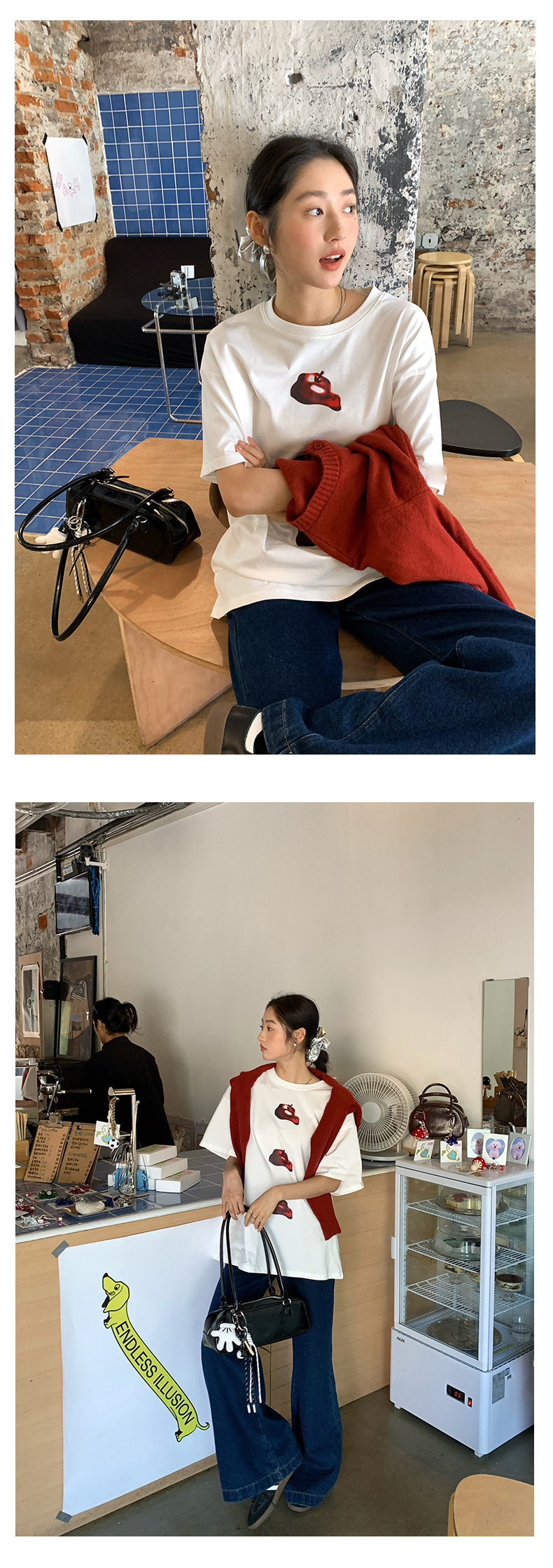 *o-ha-you*【FHZ143TY7059】韓系卡通蘋果印花短袖T恤2024秋韓版寬鬆休閒上衣