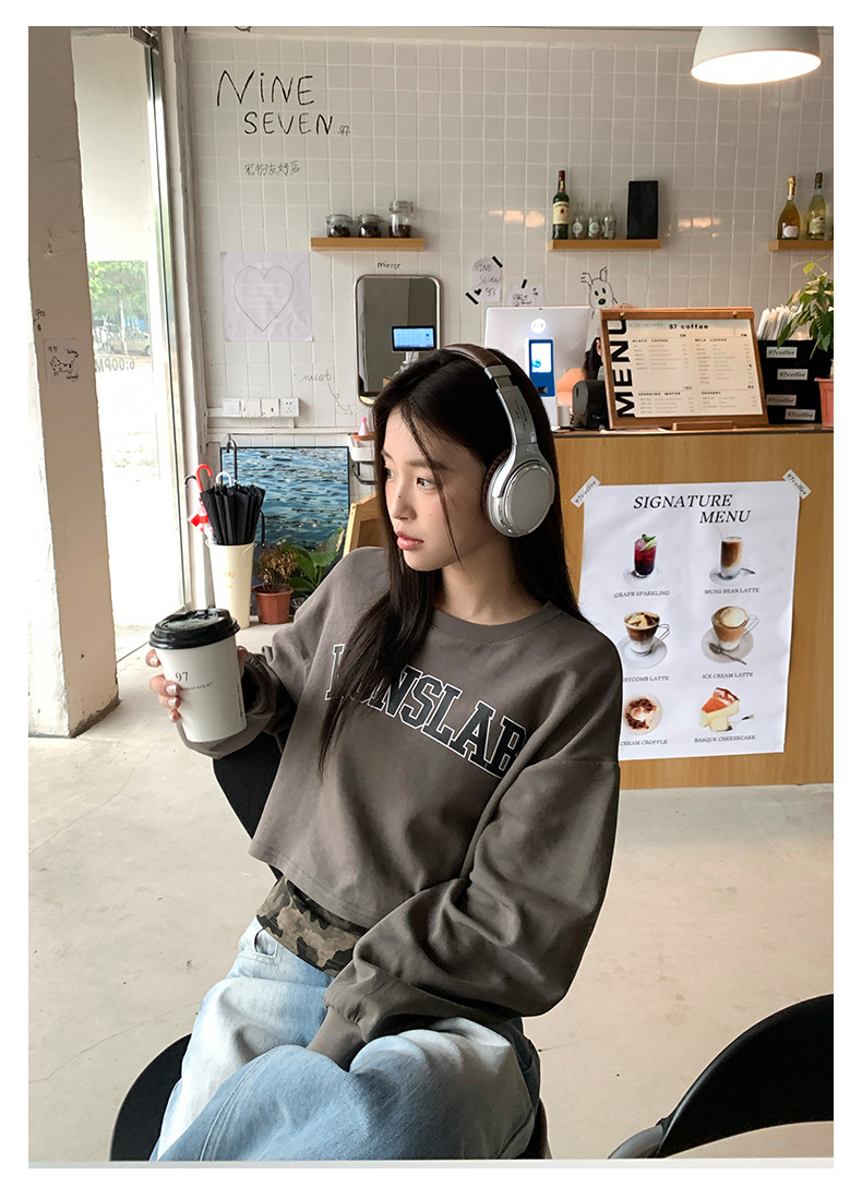 *o-ha-you*【FHZ143WY6082】美式字母印花短版衛衣2024秋季寬鬆顯瘦長袖外套