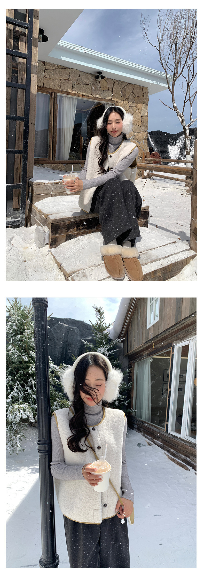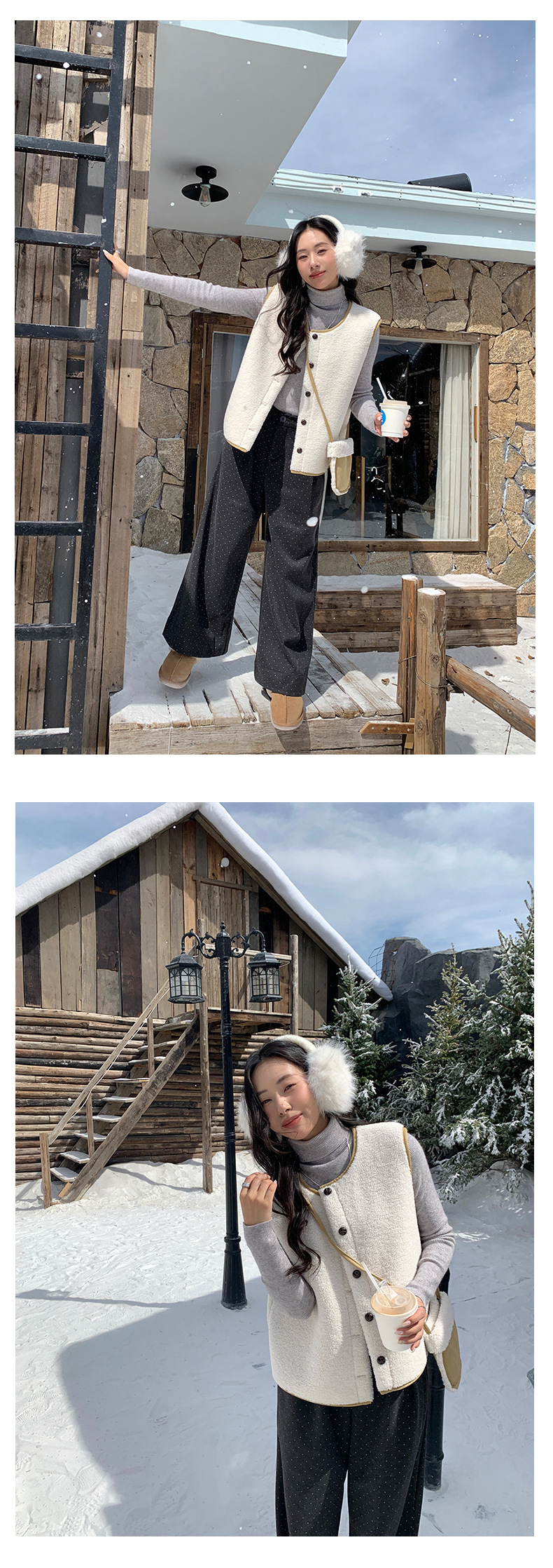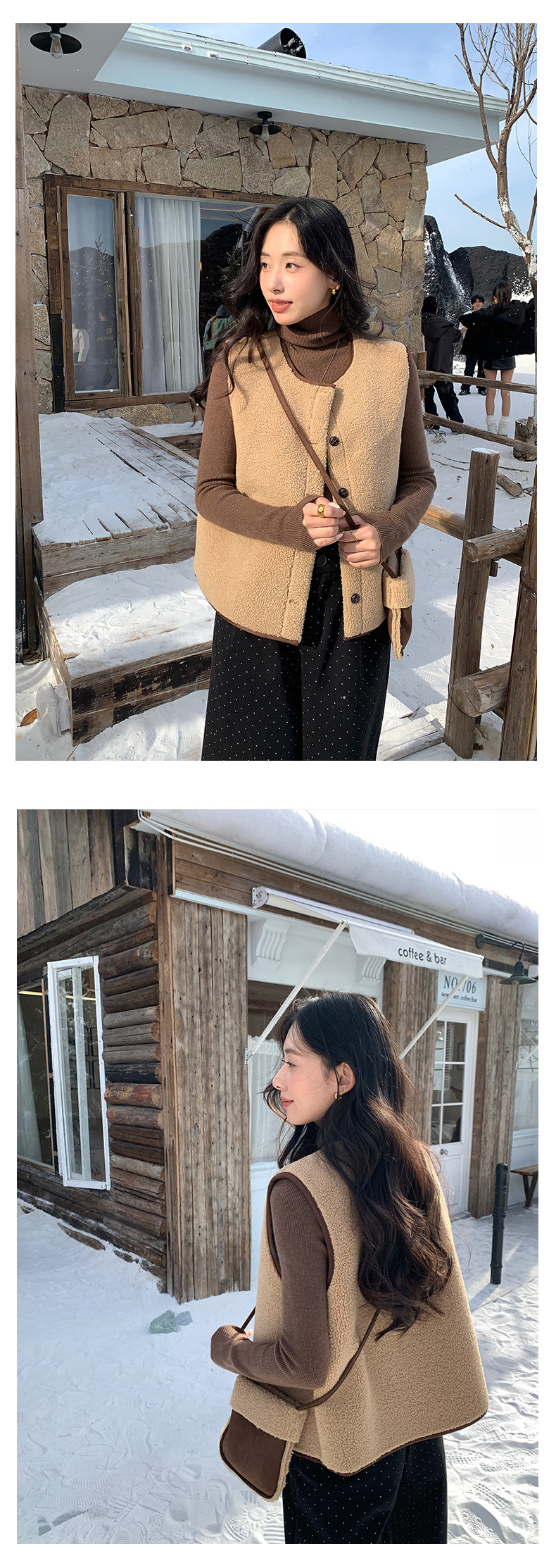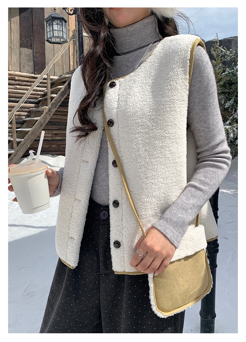 *o-ha-you*【FHZ145AY10016】韓系撞色邊馬甲2024年冬季氣質圓領背心無袖外套-2色