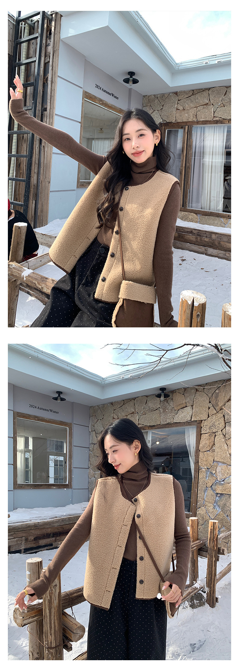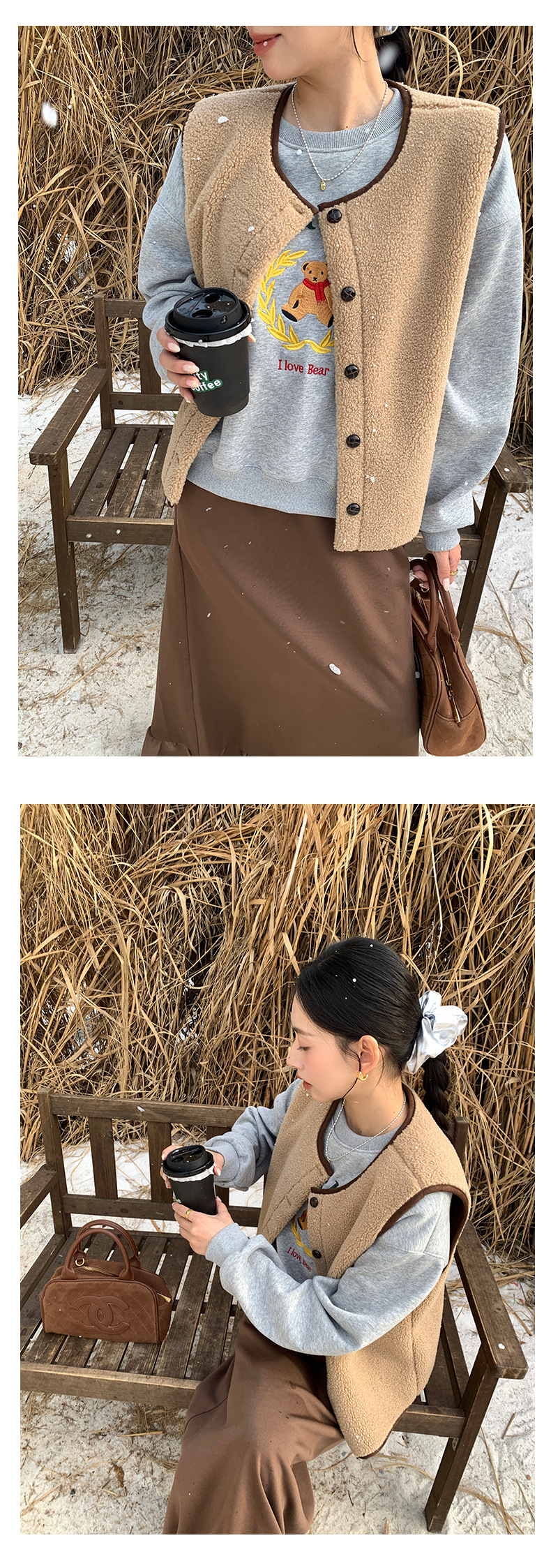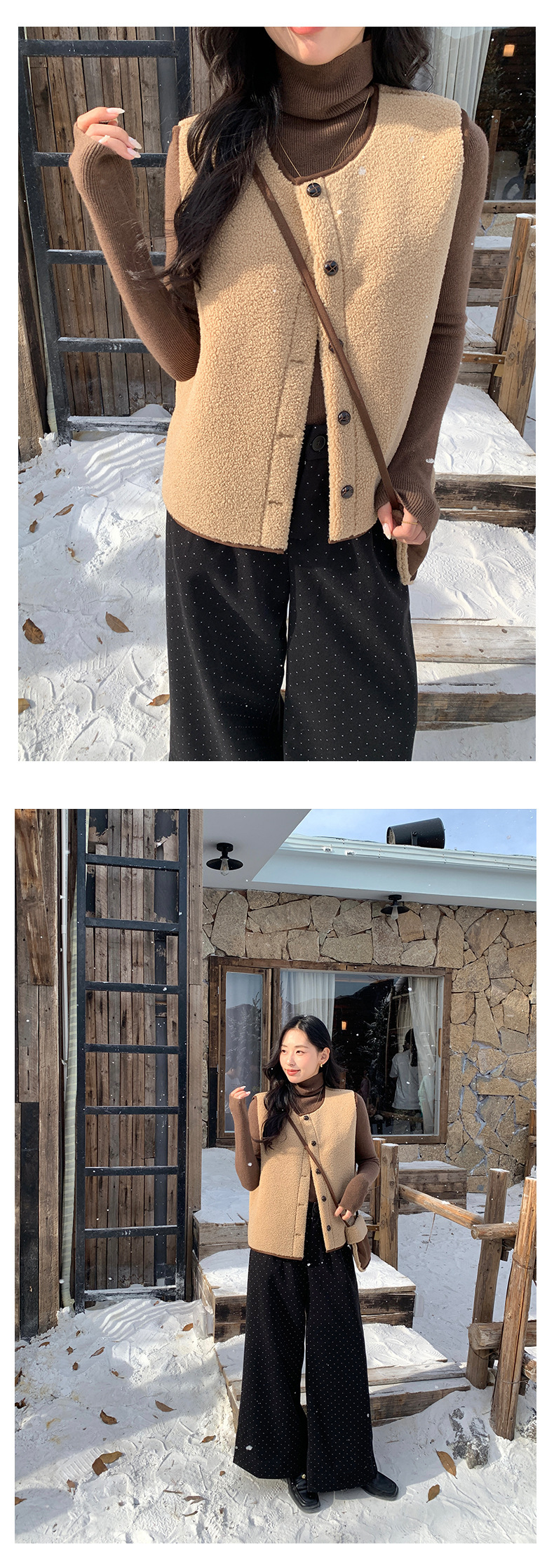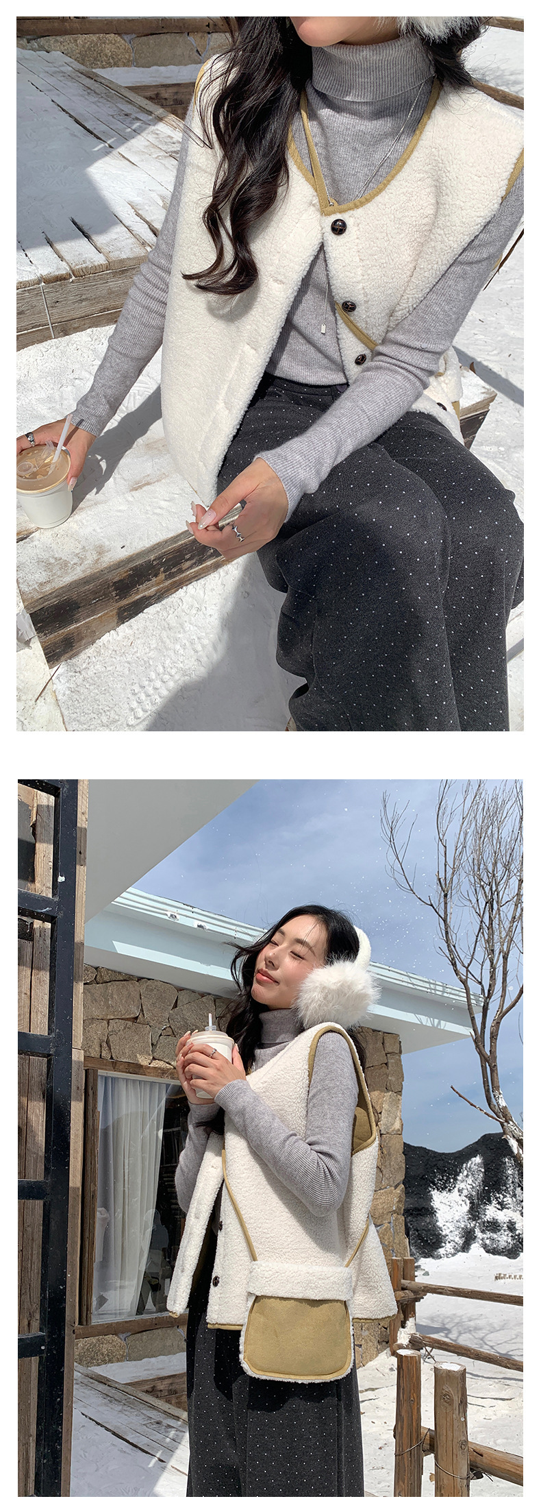 *o-ha-you*【FHZ145AY10016】韓系撞色邊馬甲2024年冬季氣質圓領背心無袖外套-2色