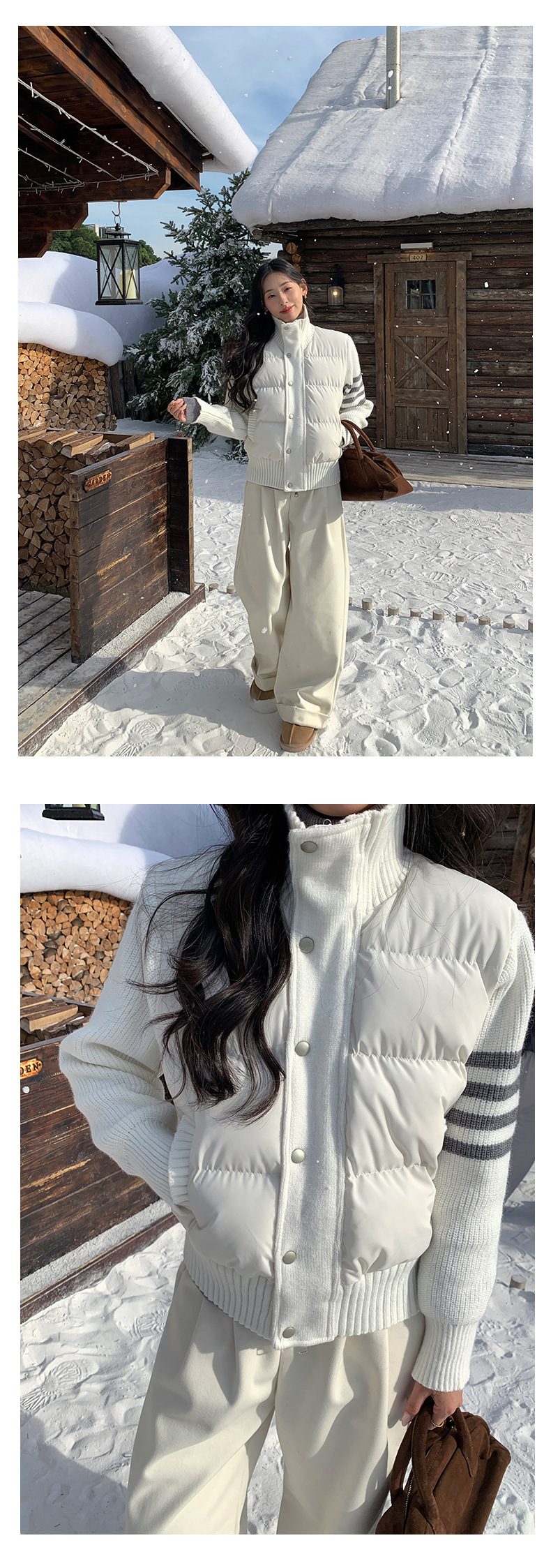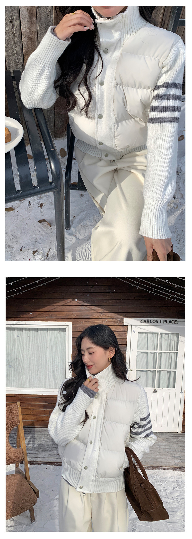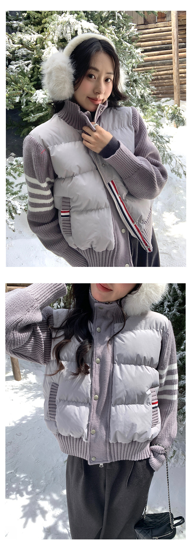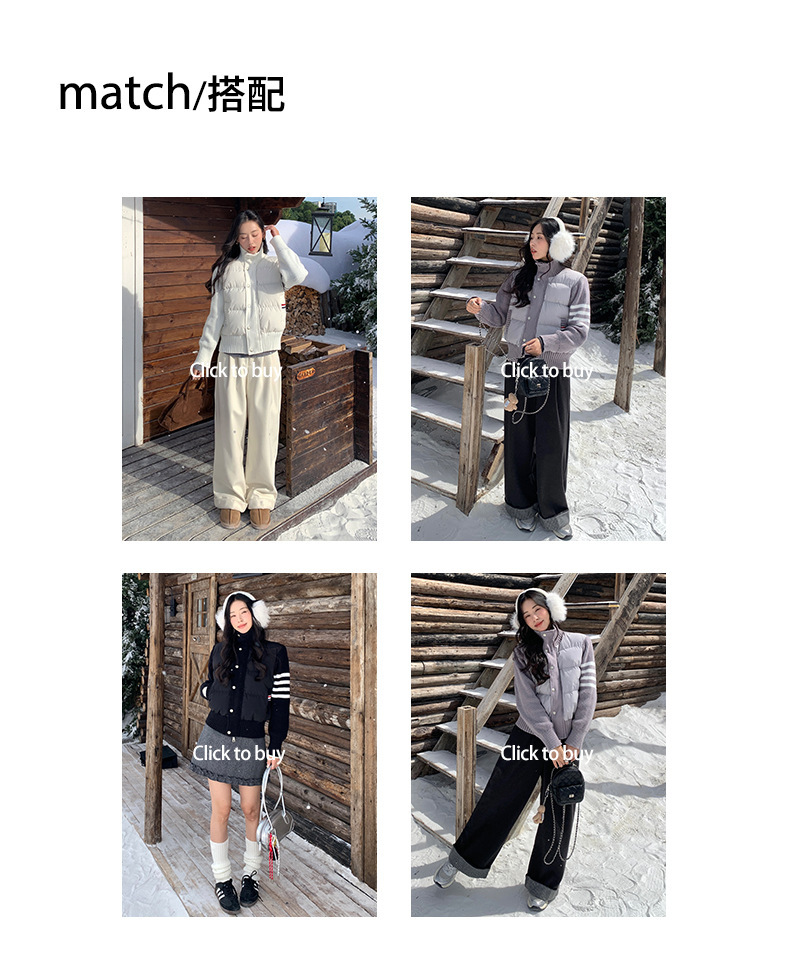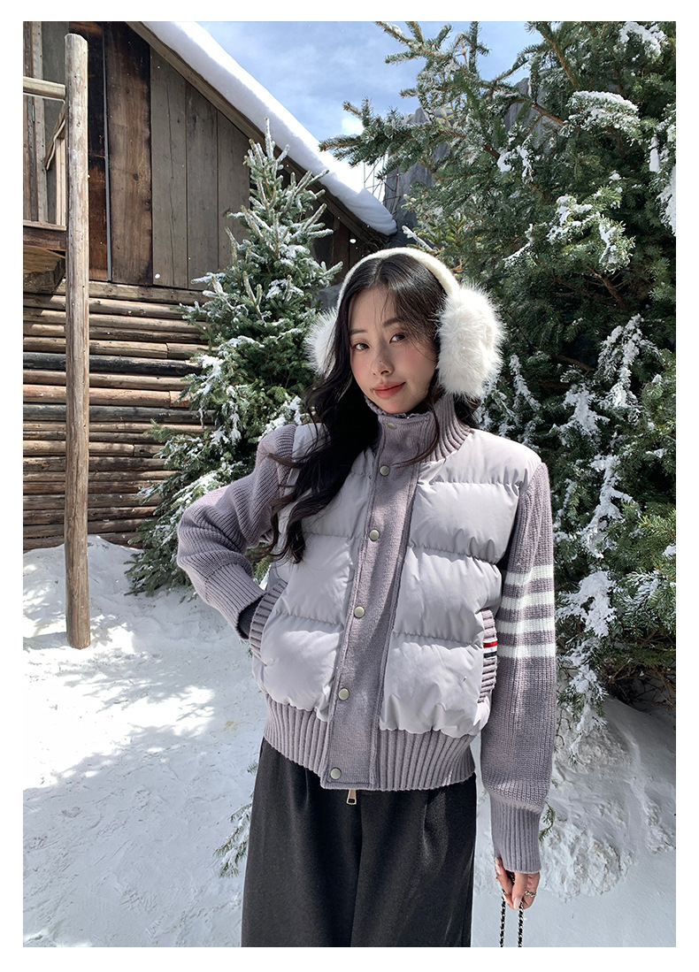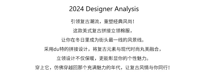 *o-ha-you*【FHZ145AY10017】美式復古拼接立領棉服2024年冬季保暖短版外套針織-3色