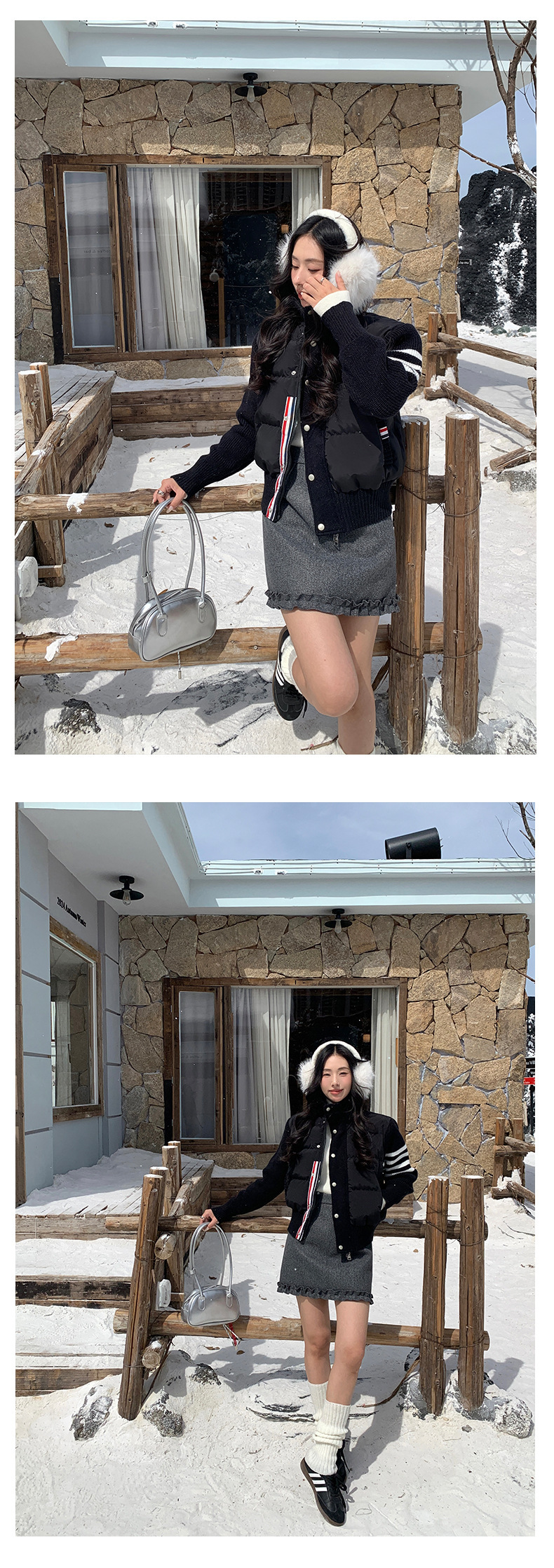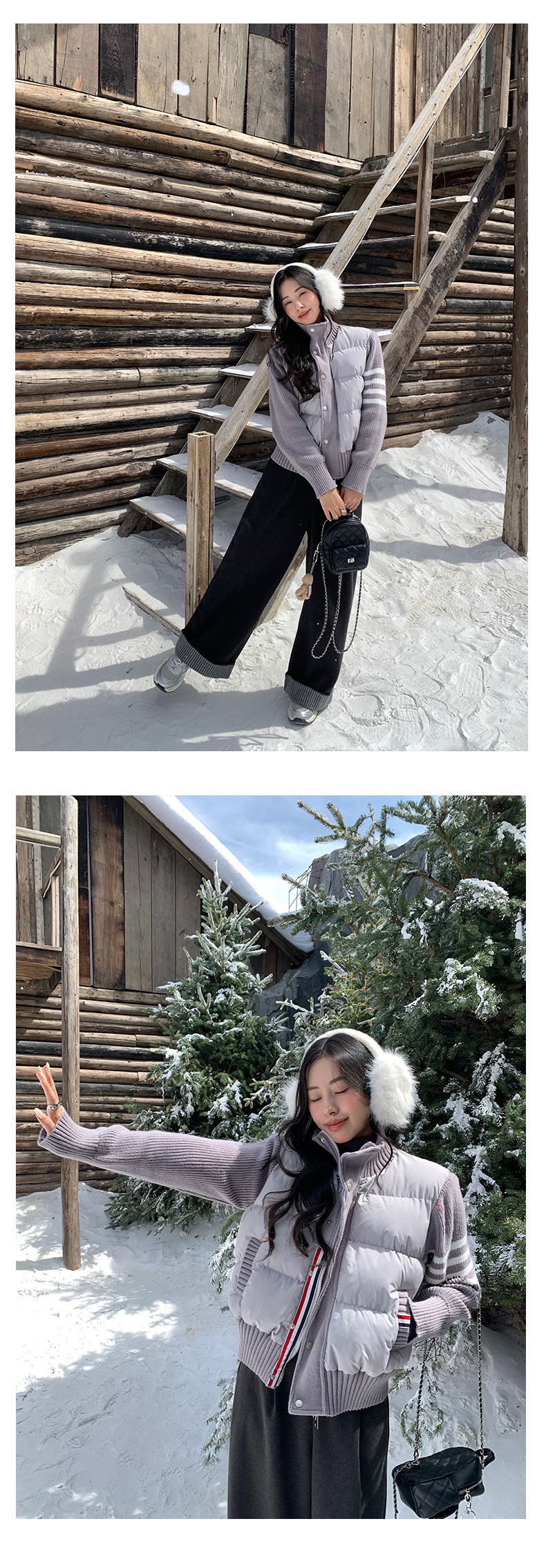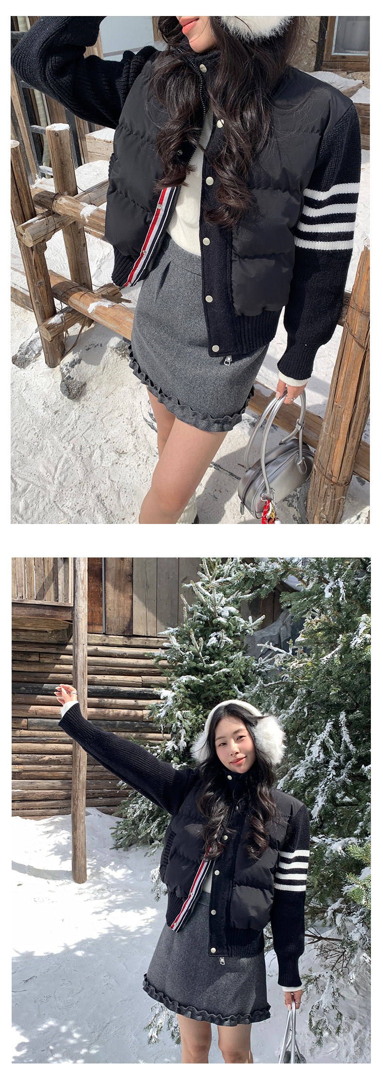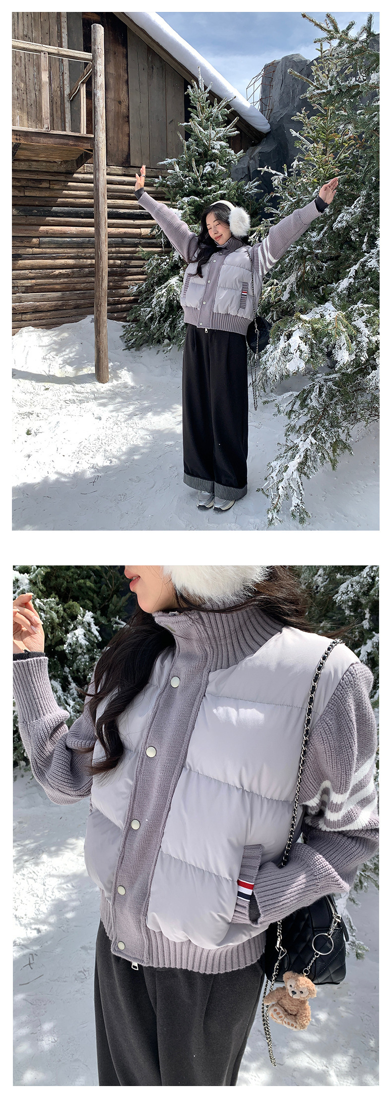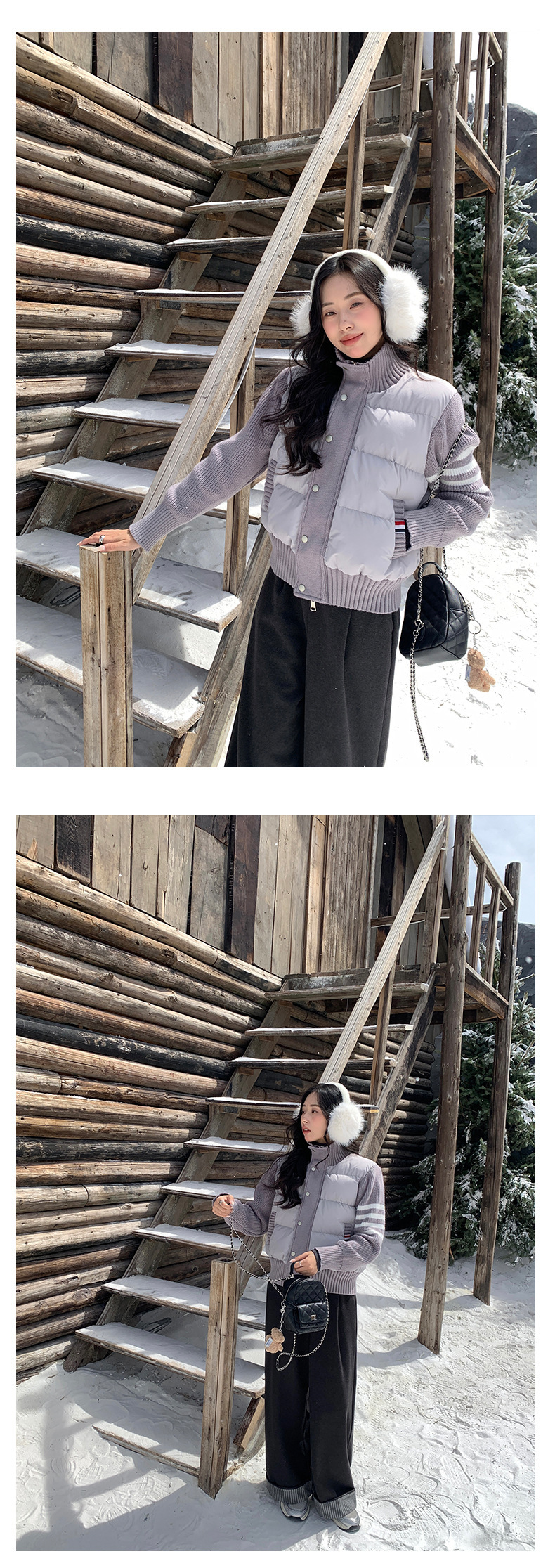 *o-ha-you*【FHZ145AY10017】美式復古拼接立領棉服2024年冬季保暖短版外套針織-3色
