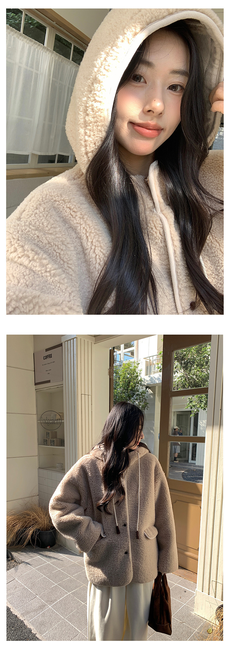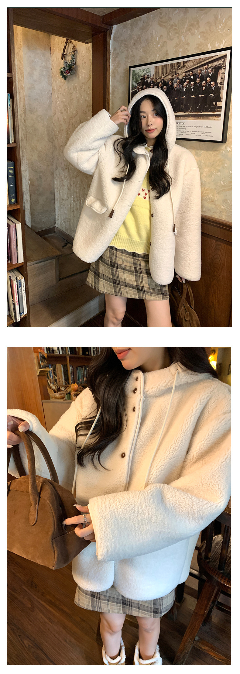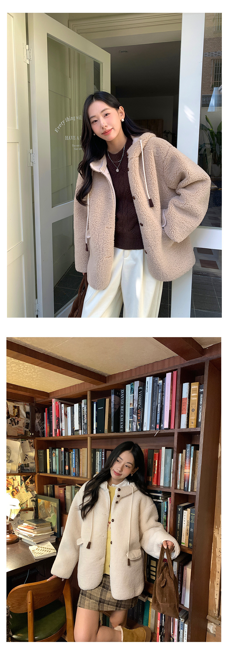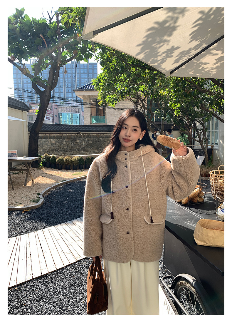 *o-ha-you*【FHZ145AY10033】韓系連帽羊羔毛外套2024冬寬鬆保暖加厚上衣-2色