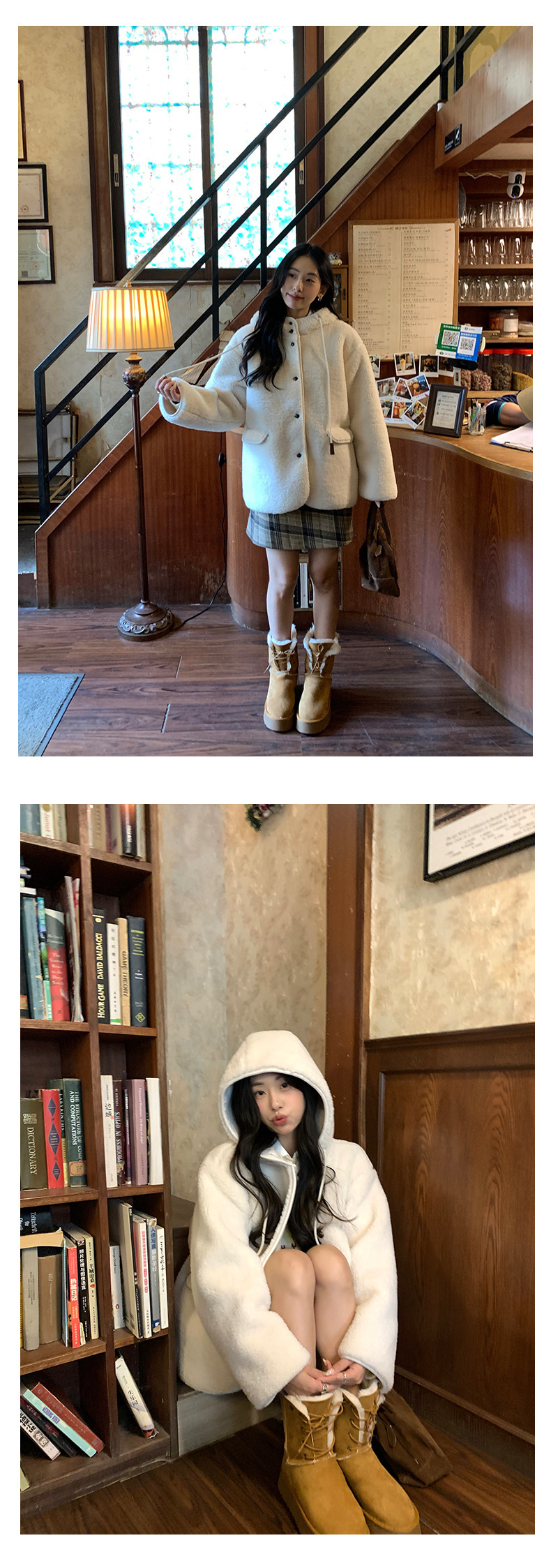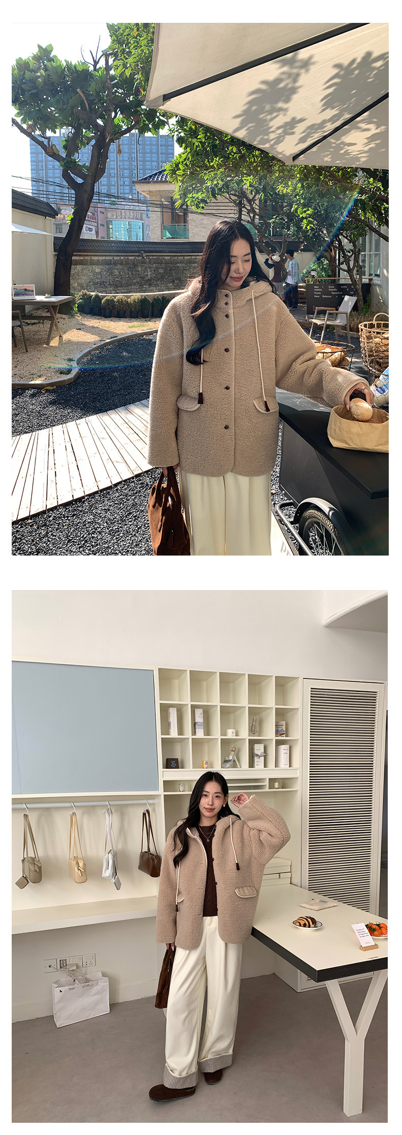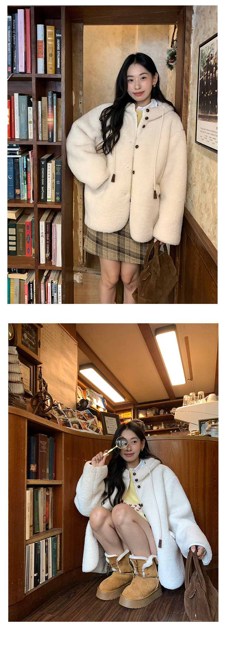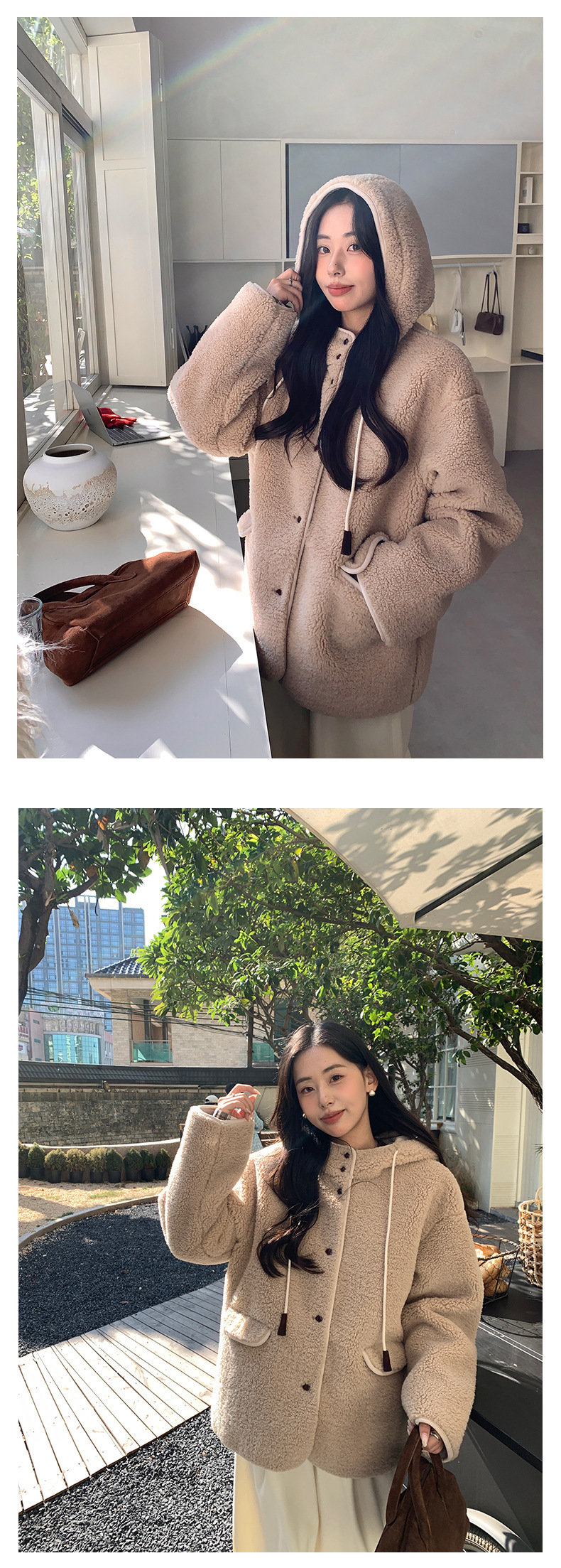 *o-ha-you*【FHZ145AY10033】韓系連帽羊羔毛外套2024冬寬鬆保暖加厚上衣-2色