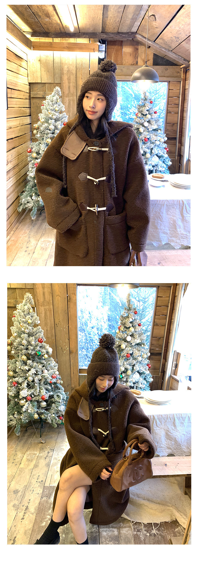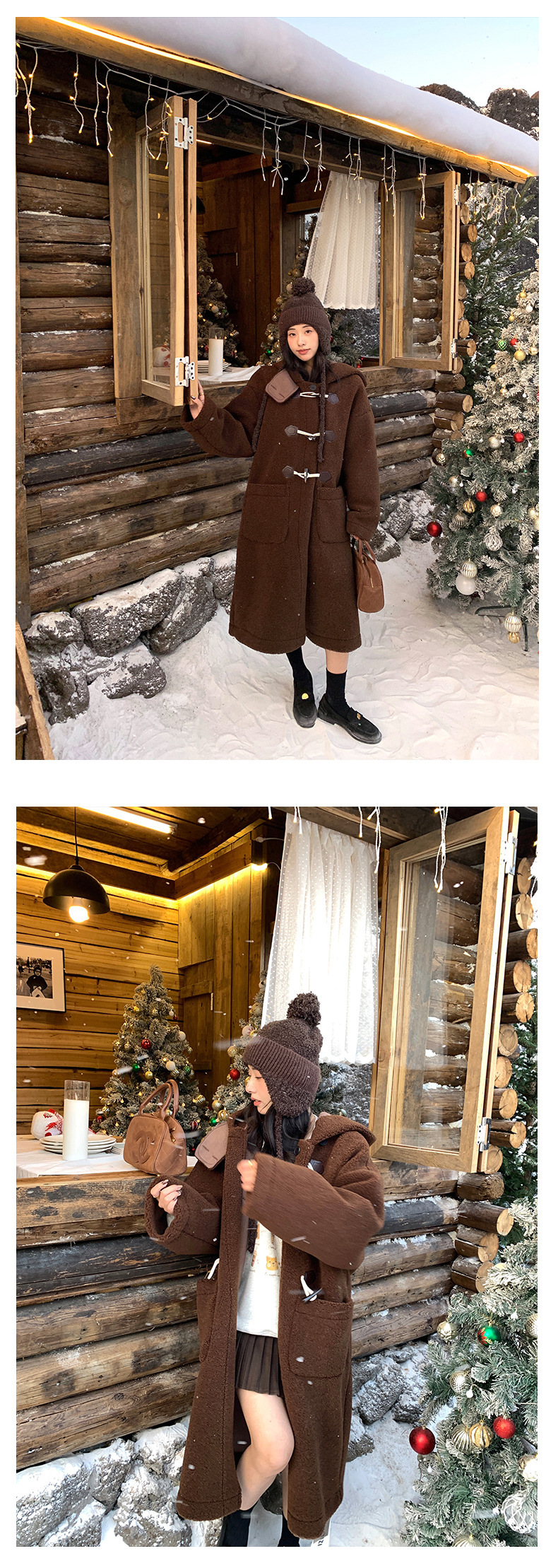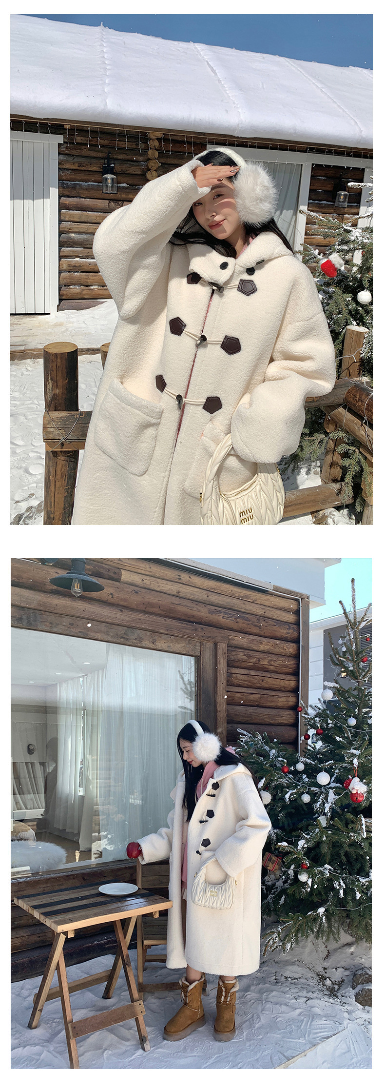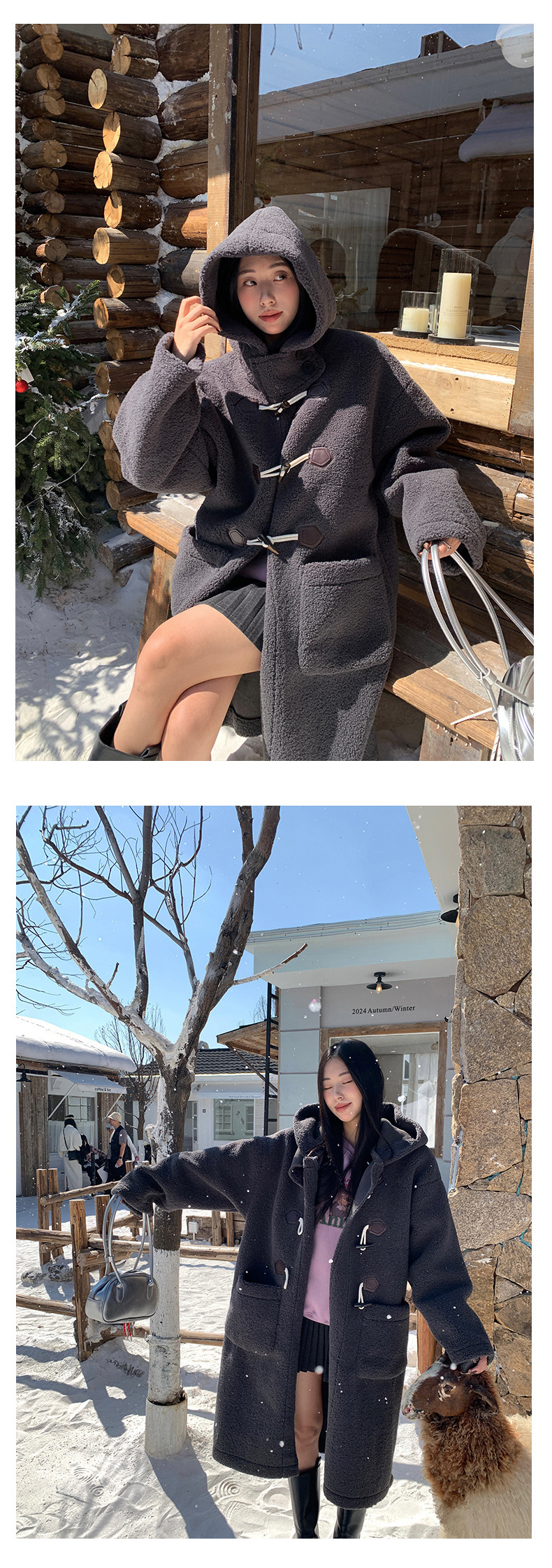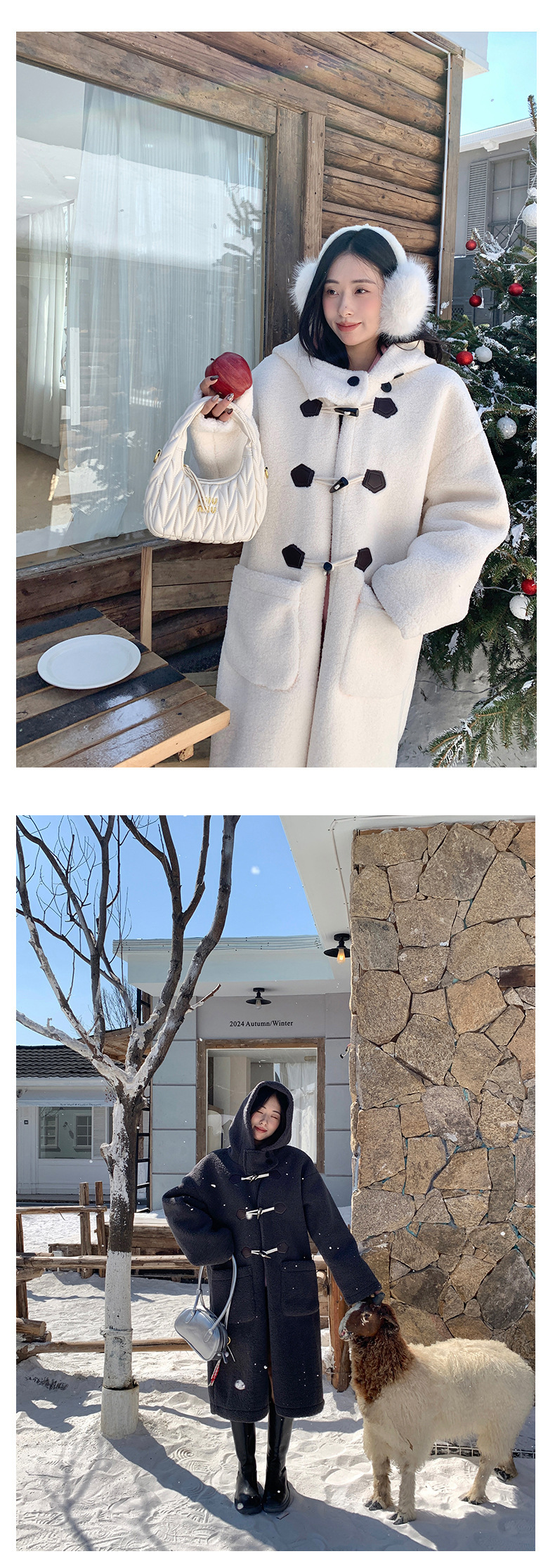 *o-ha-you*【FHZ145AY10053】韓系絨毛中長款外套2024冬寬鬆牛角一體連帽-4色