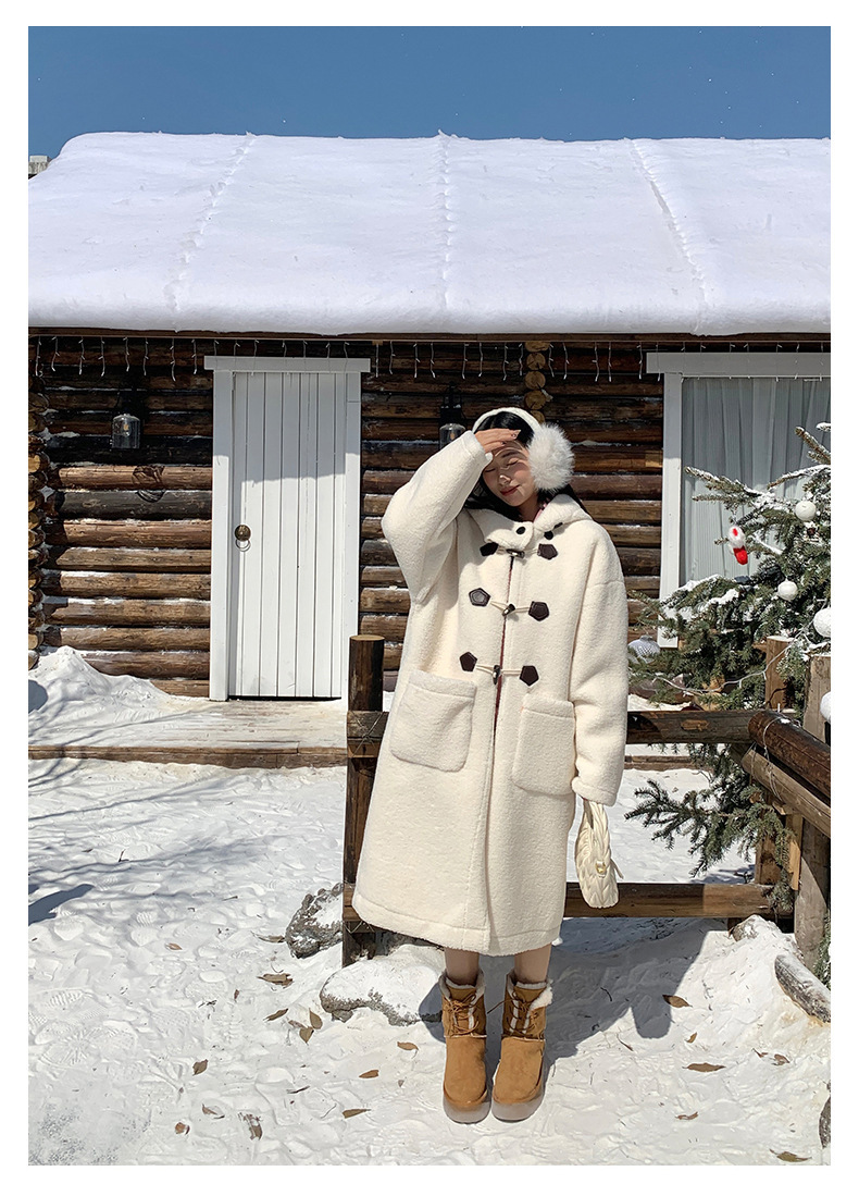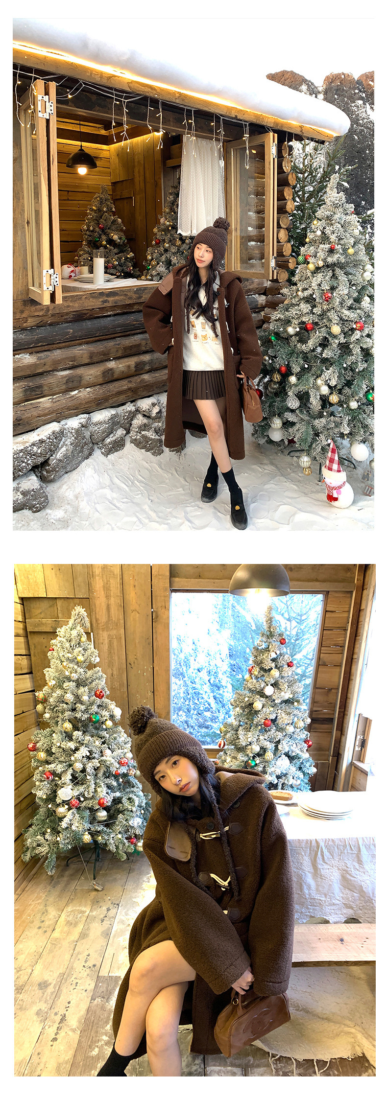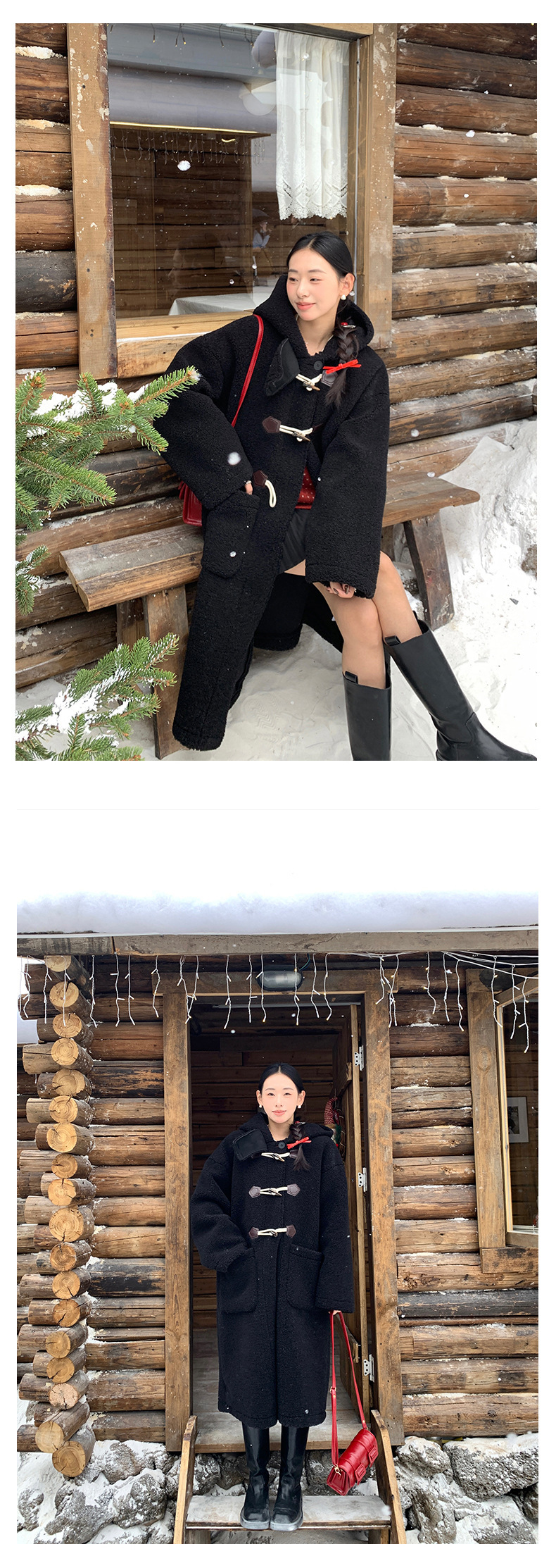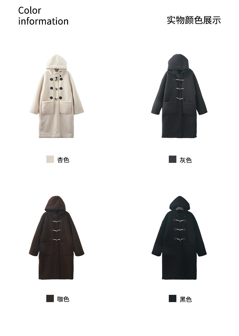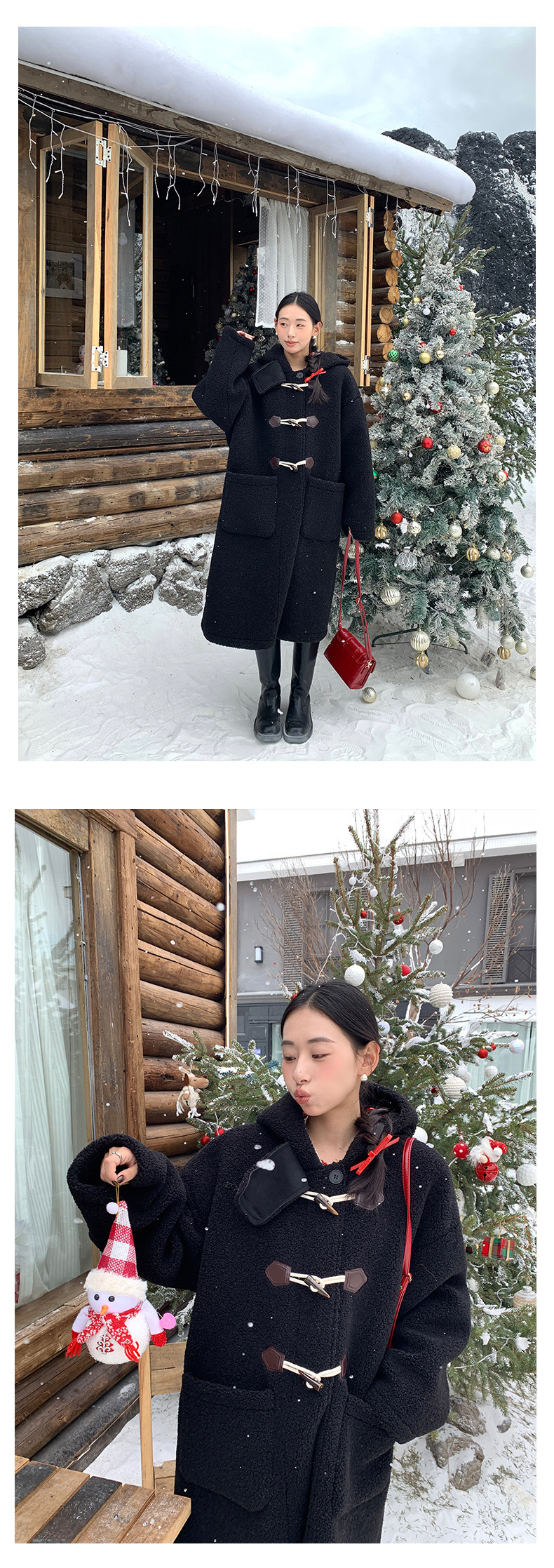 *o-ha-you*【FHZ145AY10053】韓系絨毛中長款外套2024冬寬鬆牛角一體連帽-4色