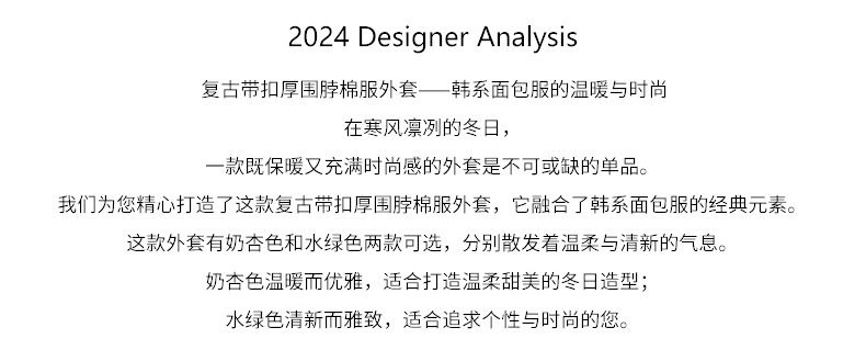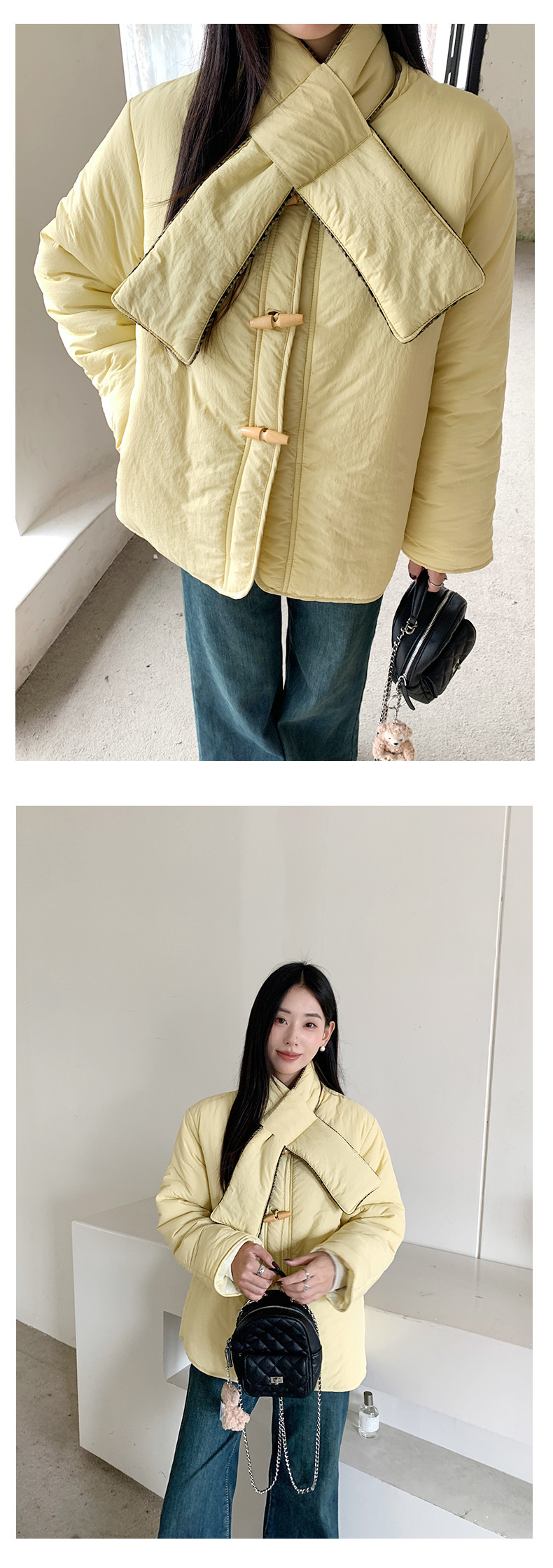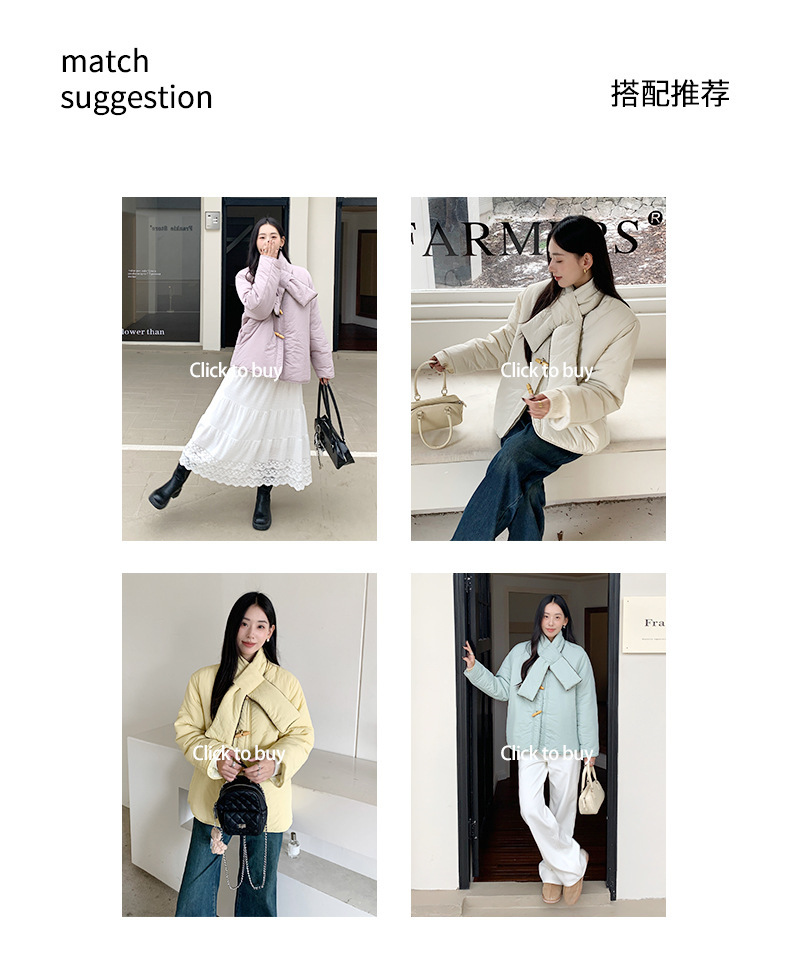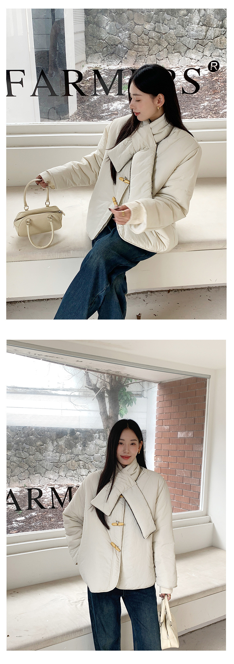 *o-ha-you*【FHZ145AY10074】復古扣環加厚圍脖棉服外套2024年冬保暖寬鬆外穿-4色