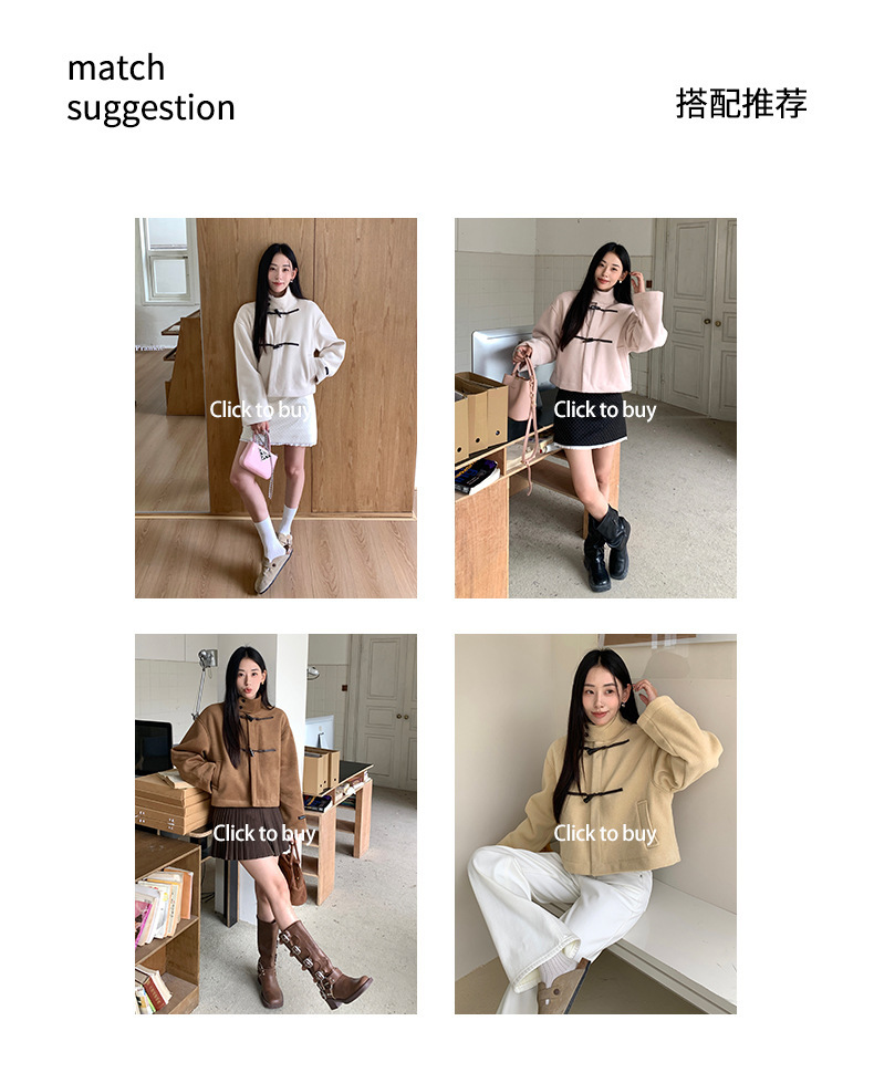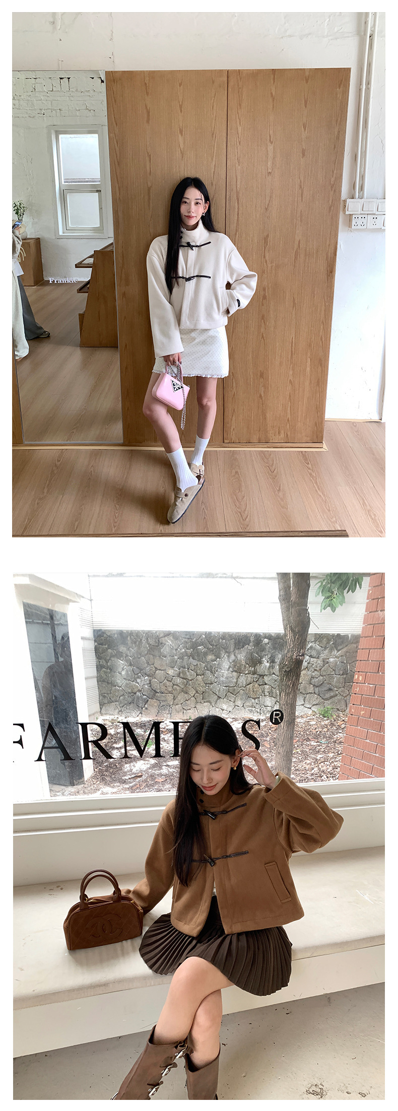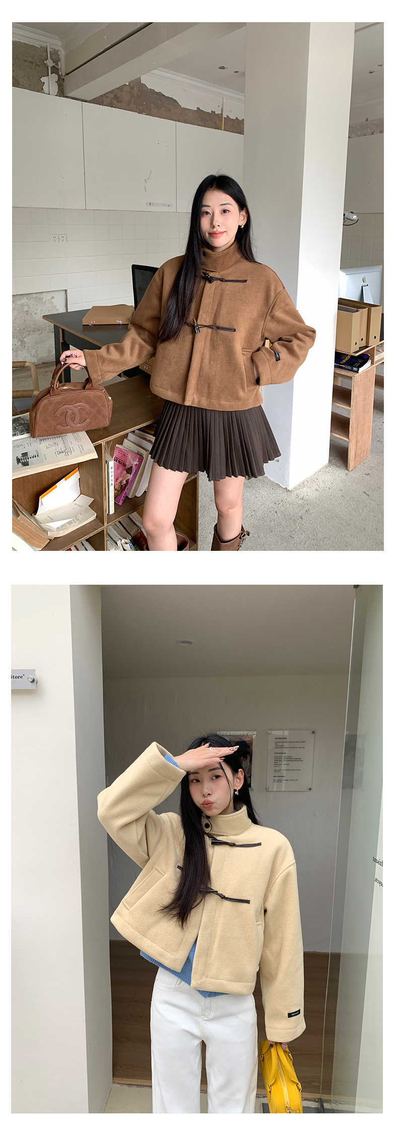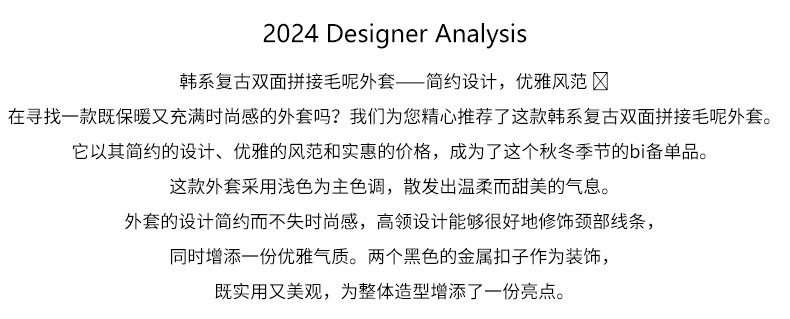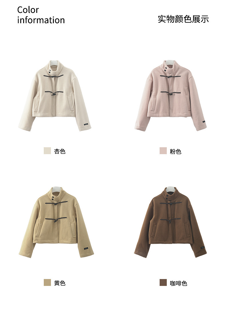 *o-ha-you*【FHZ145AY10075】韓系復古雙面拼接毛呢外套2024冬保暖立領帶扣-4色