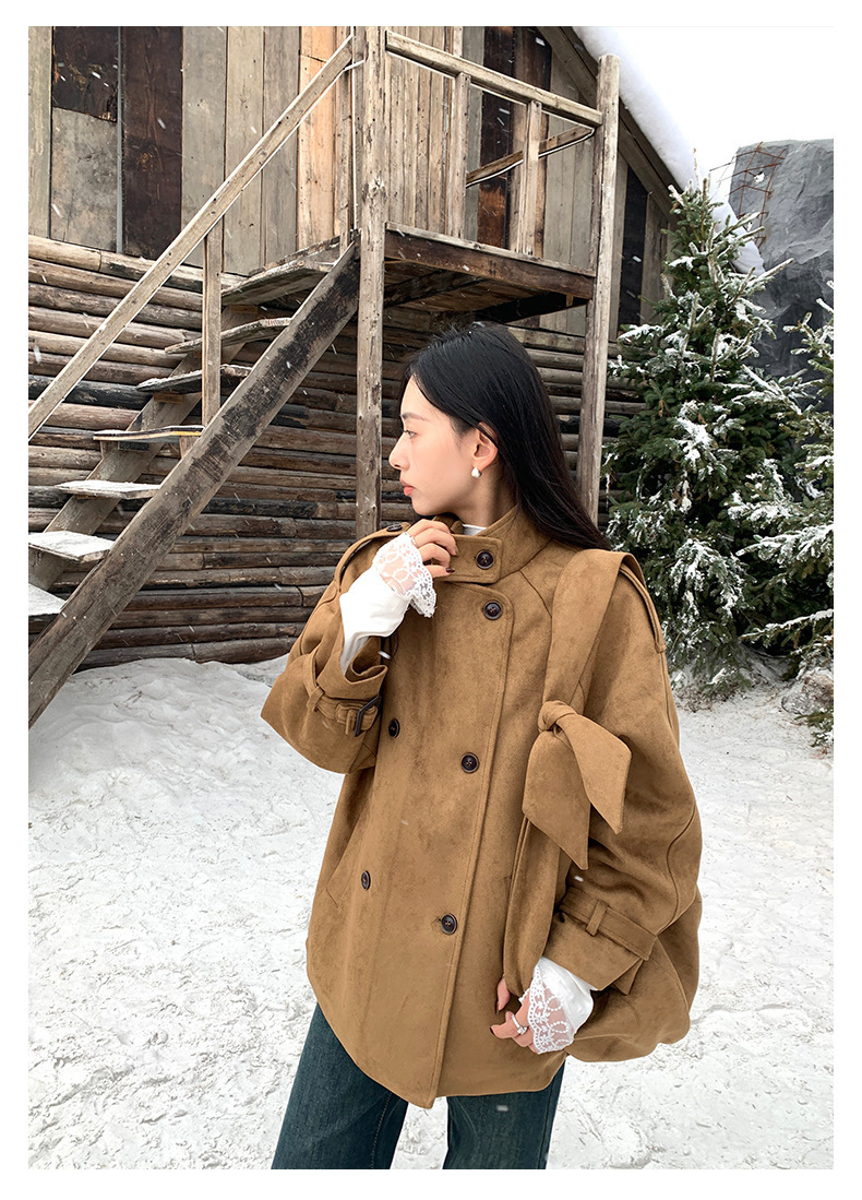 *o-ha-you*【FHZ145AY10076】復古美拉德夾克外套帶包2024年冬寬鬆百搭絨感風衣-2色
