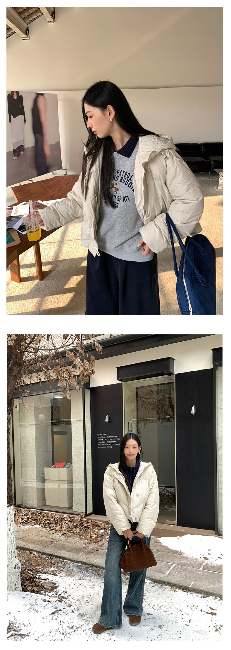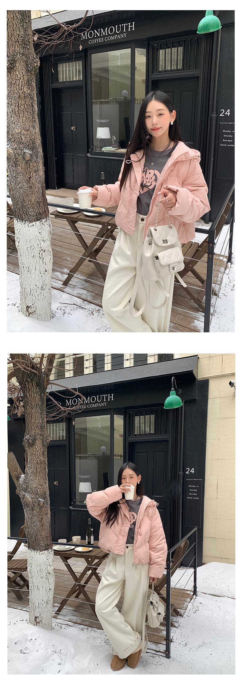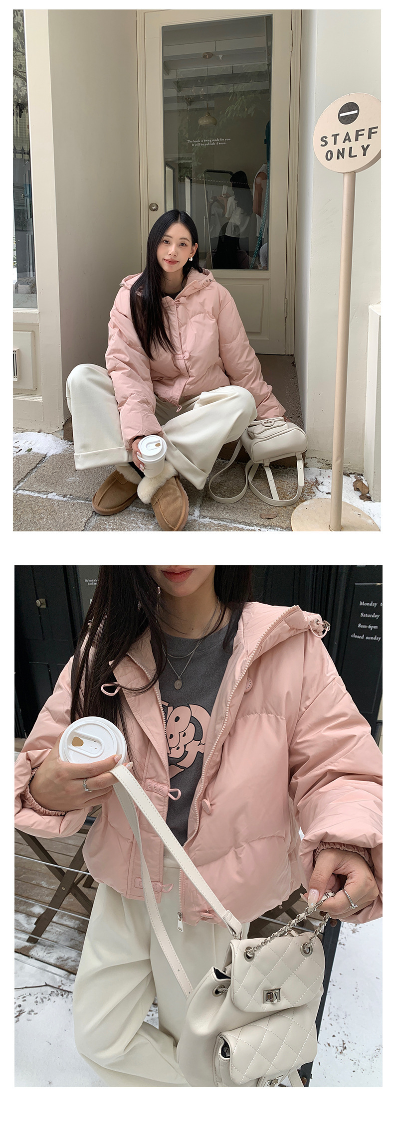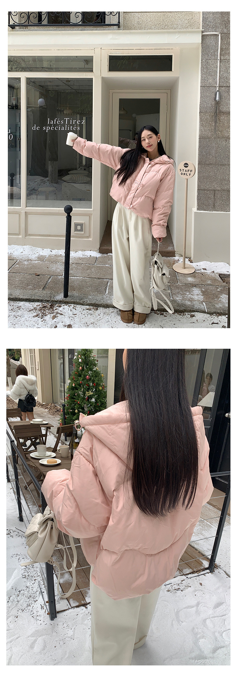 *o-ha-you*【FHZ145AY9050】韓風帶帽米色羽絨外套2024年冬糯嘰甜美短版長袖保暖-4色
