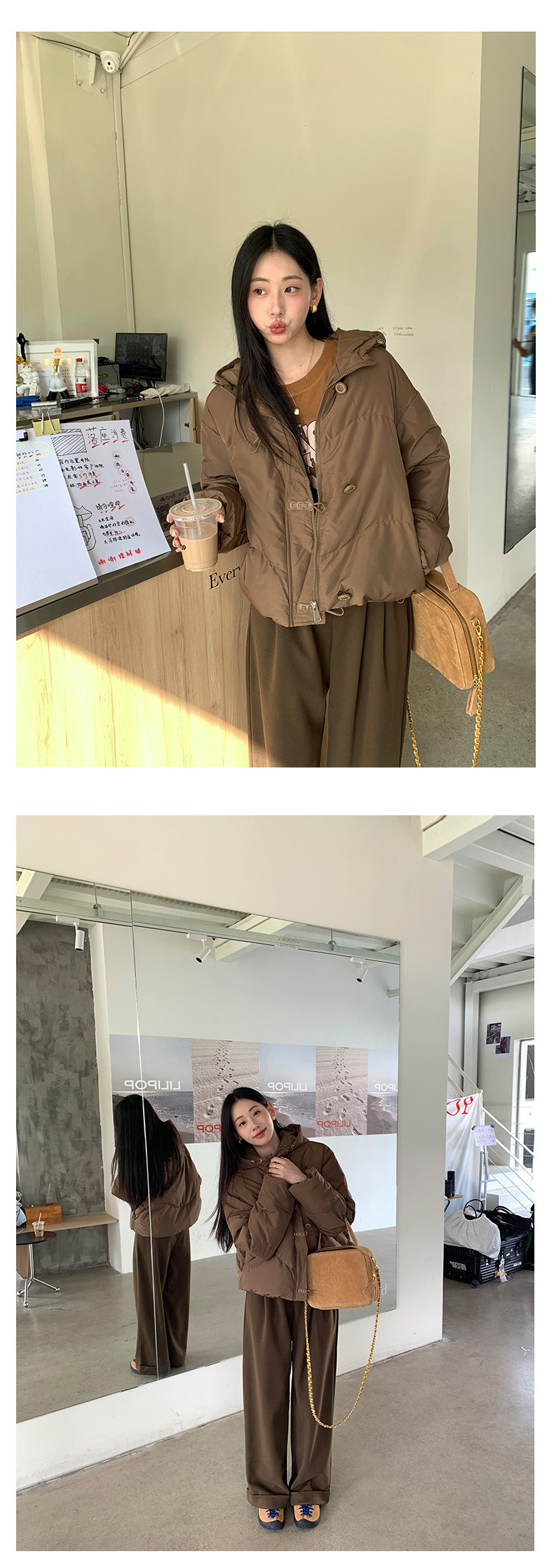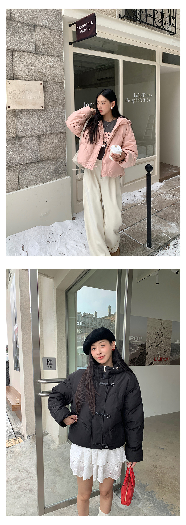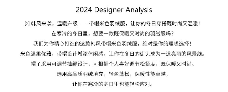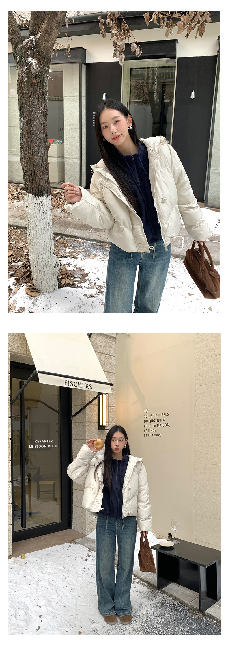 *o-ha-you*【FHZ145AY9050】韓風帶帽米色羽絨外套2024年冬糯嘰甜美短版長袖保暖-4色