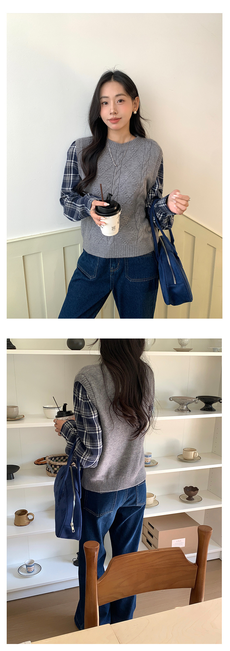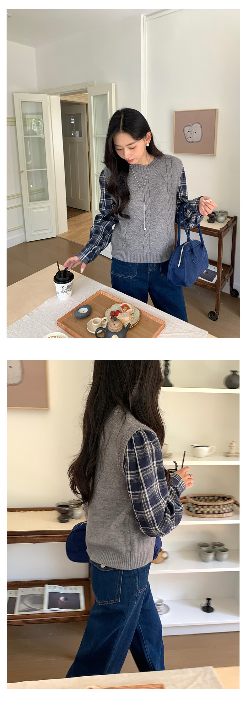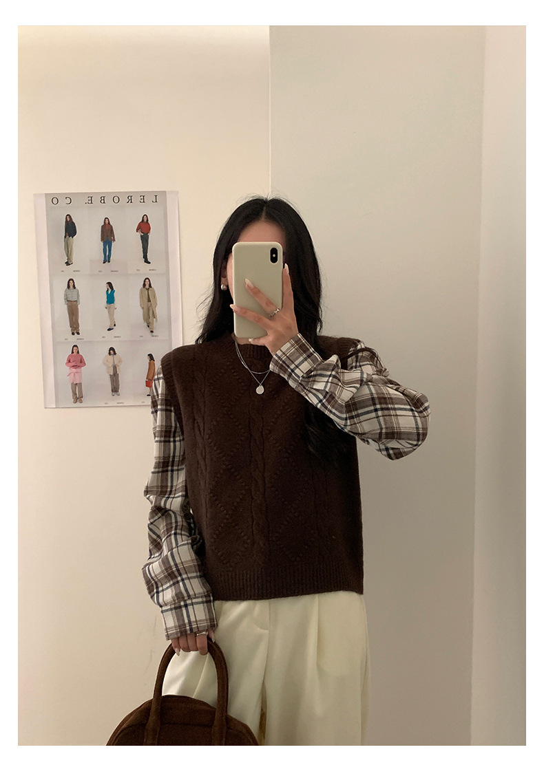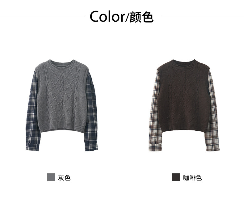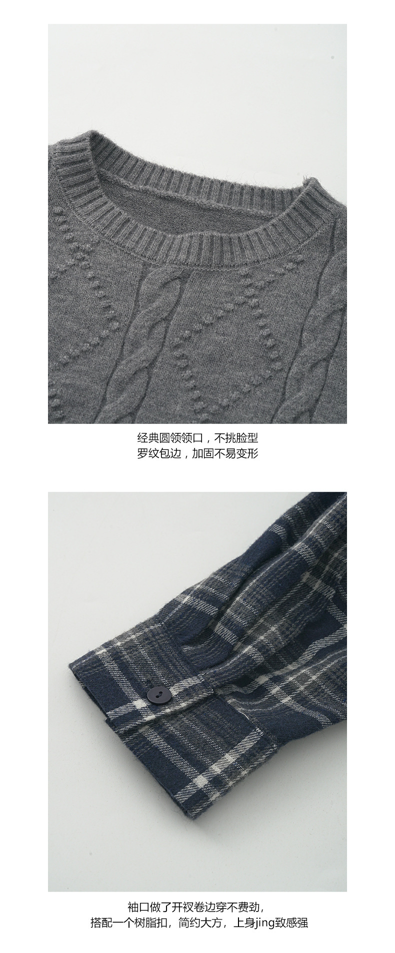 *o-ha-you*【FHZ145CY10036】磨毛格子針織拼接毛衣2024年冬季保暖襯衫-2色-如有需要請先諮詢