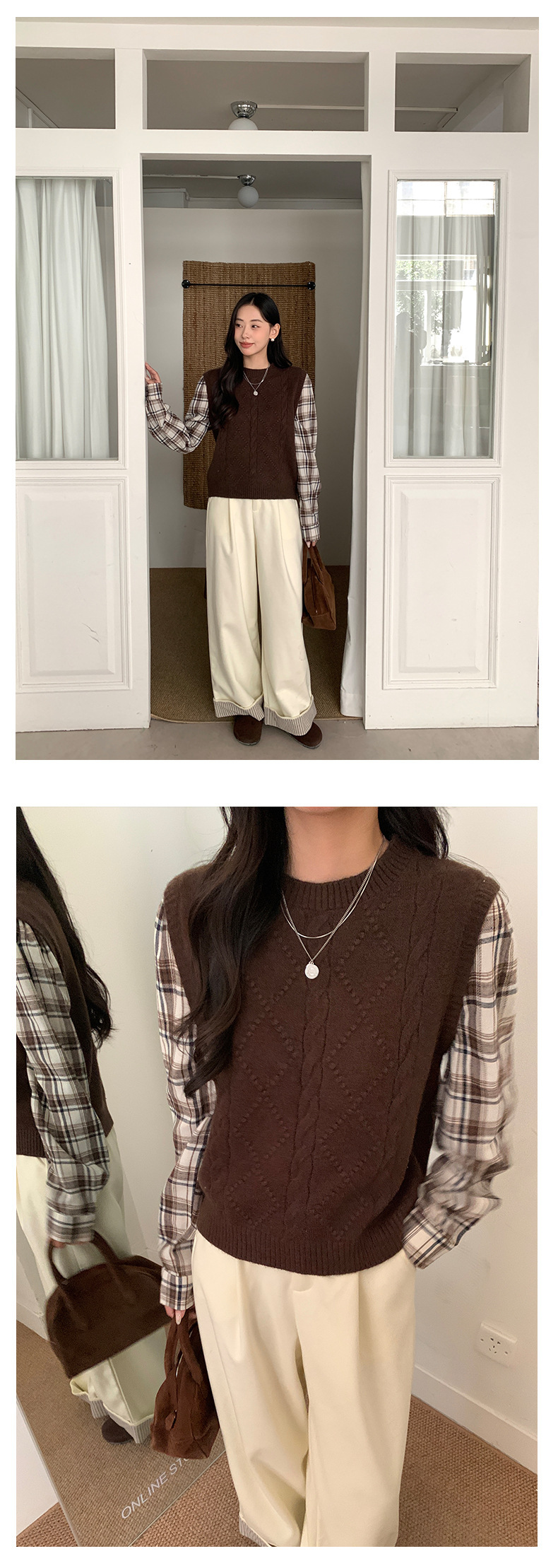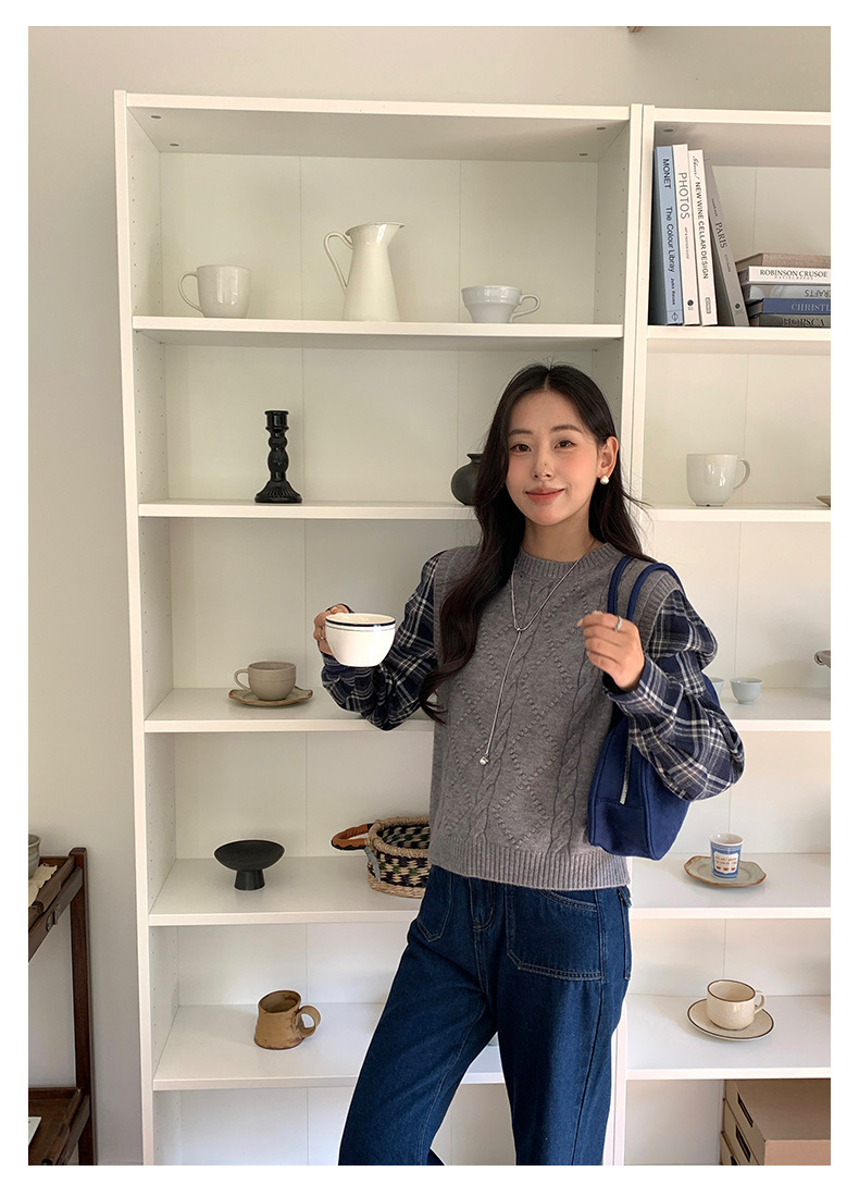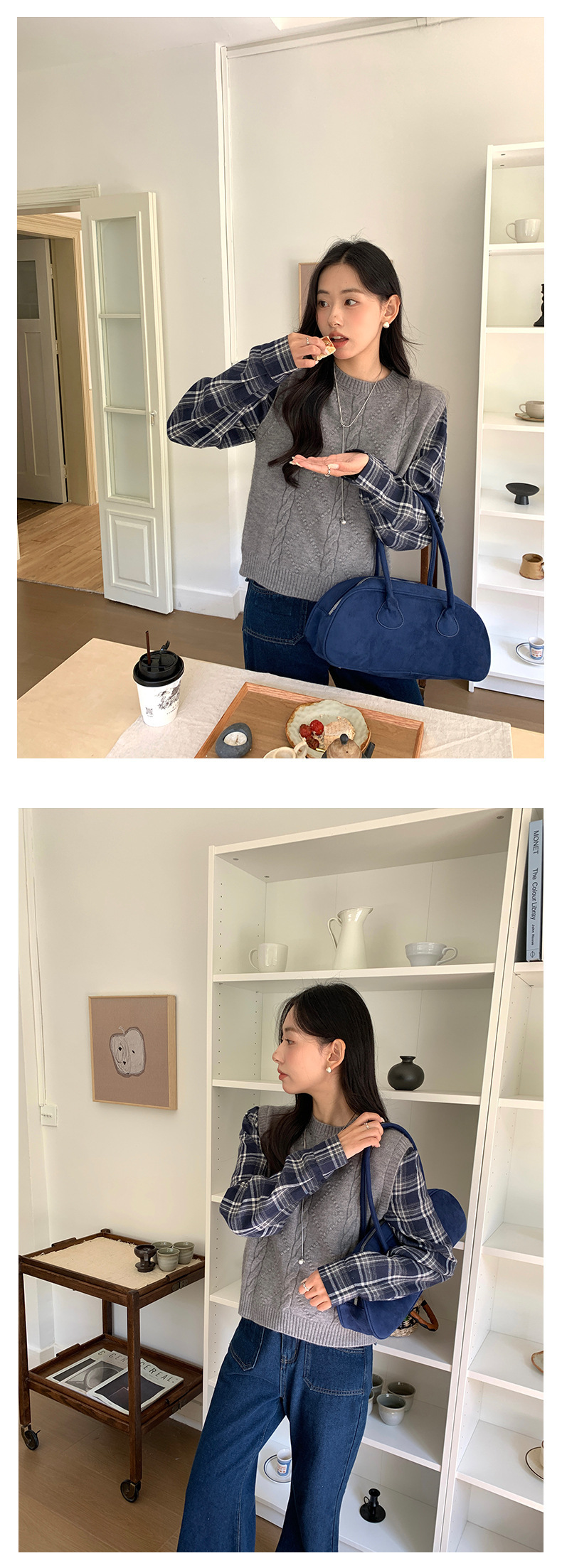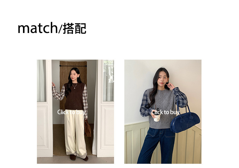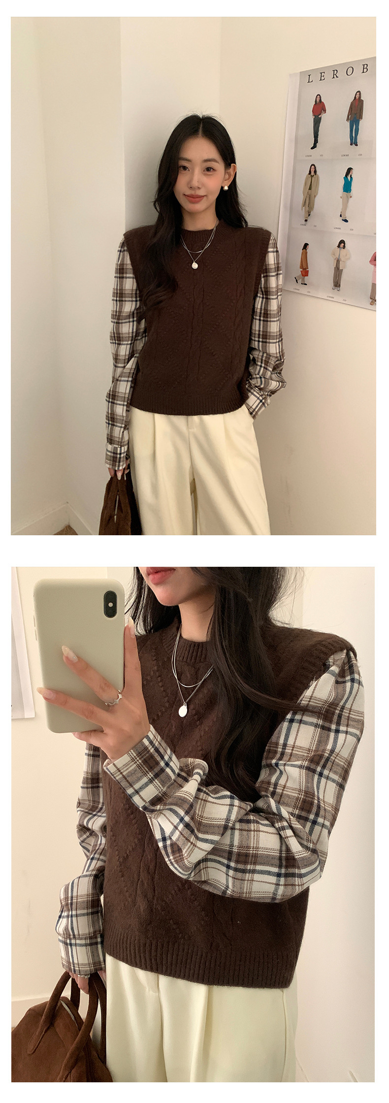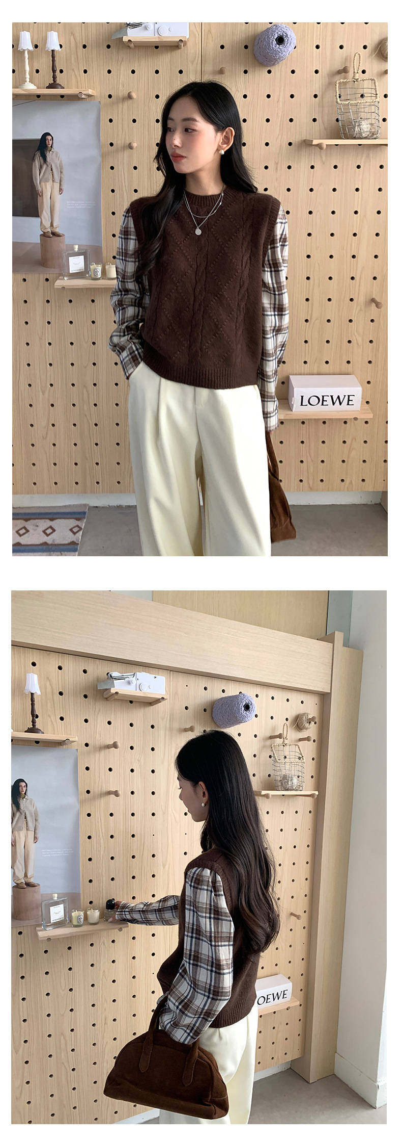 *o-ha-you*【FHZ145CY10036】磨毛格子針織拼接毛衣2024年冬季保暖襯衫-2色-如有需要請先諮詢