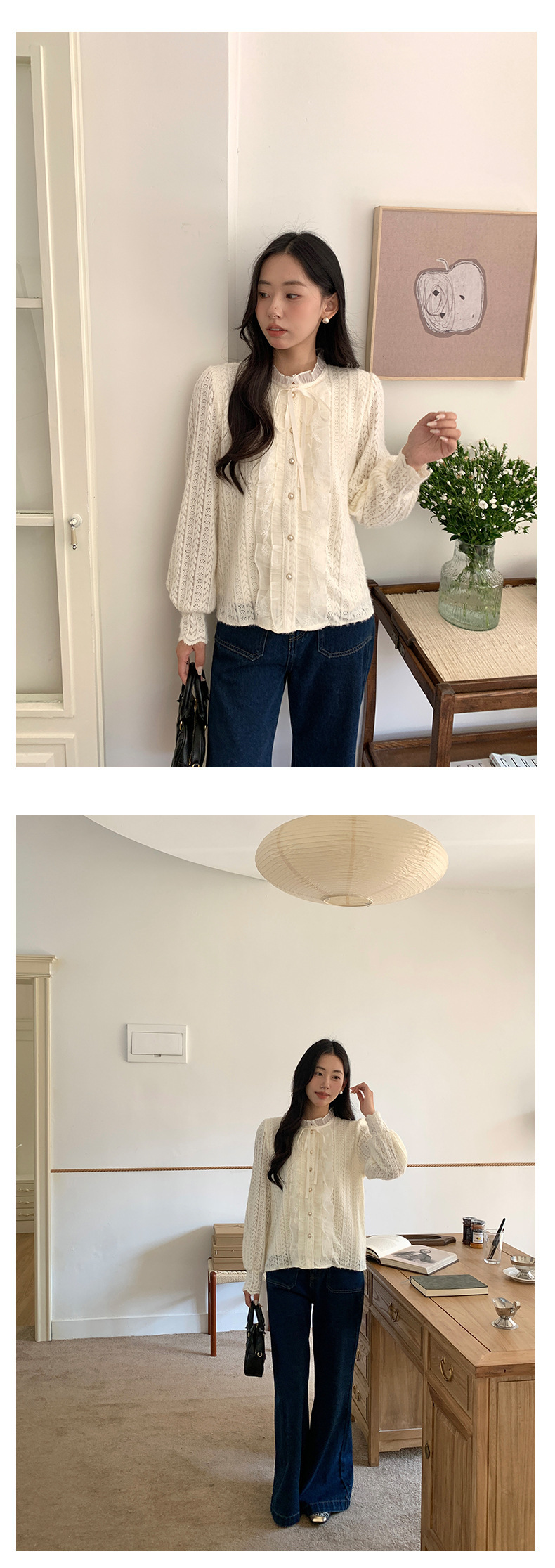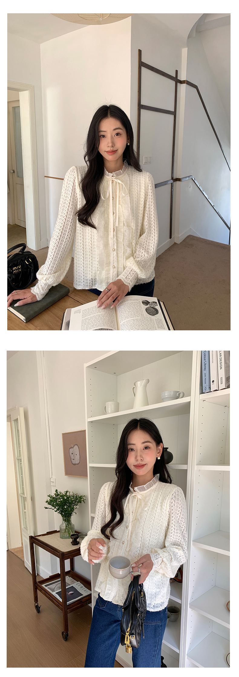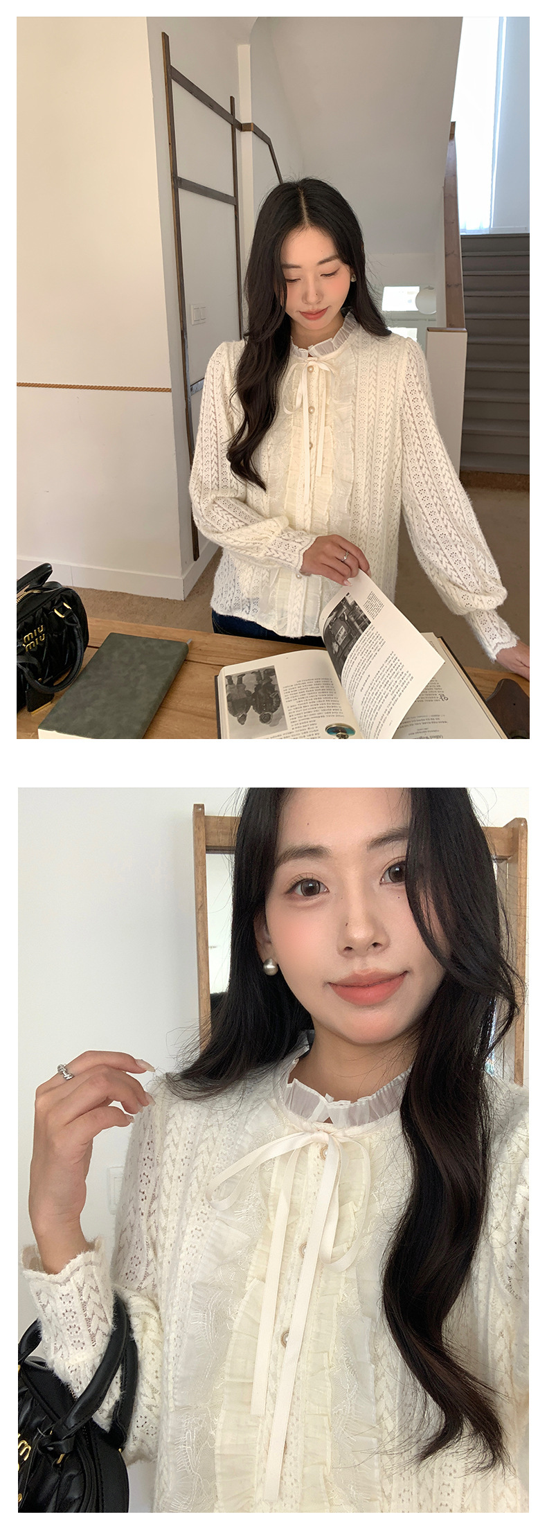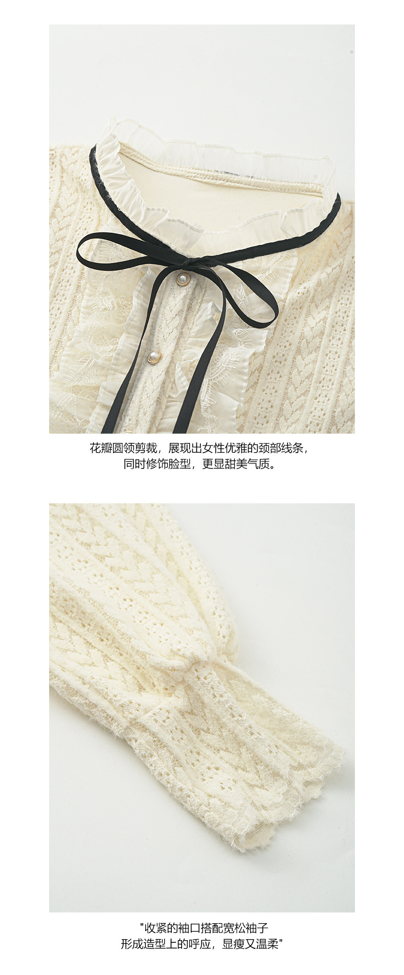 *o-ha-you*【FHZ145CY10037】法式木耳邊蕾絲打底小衫2024冬季半高領上衣-2色