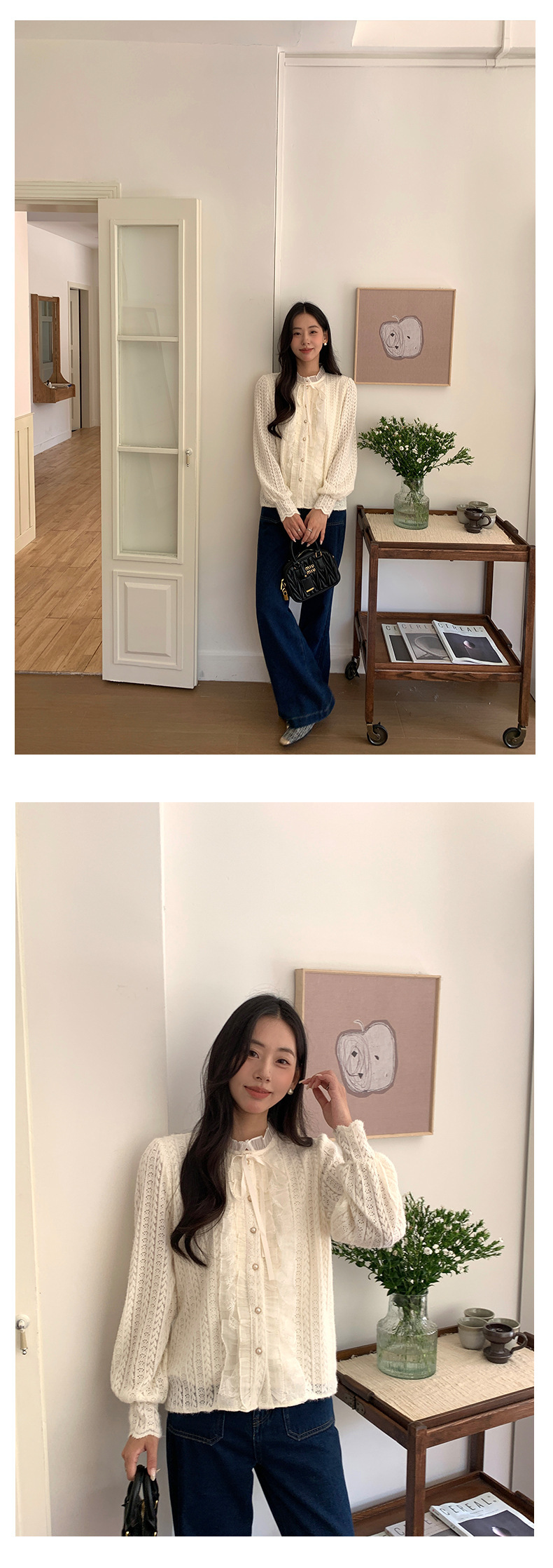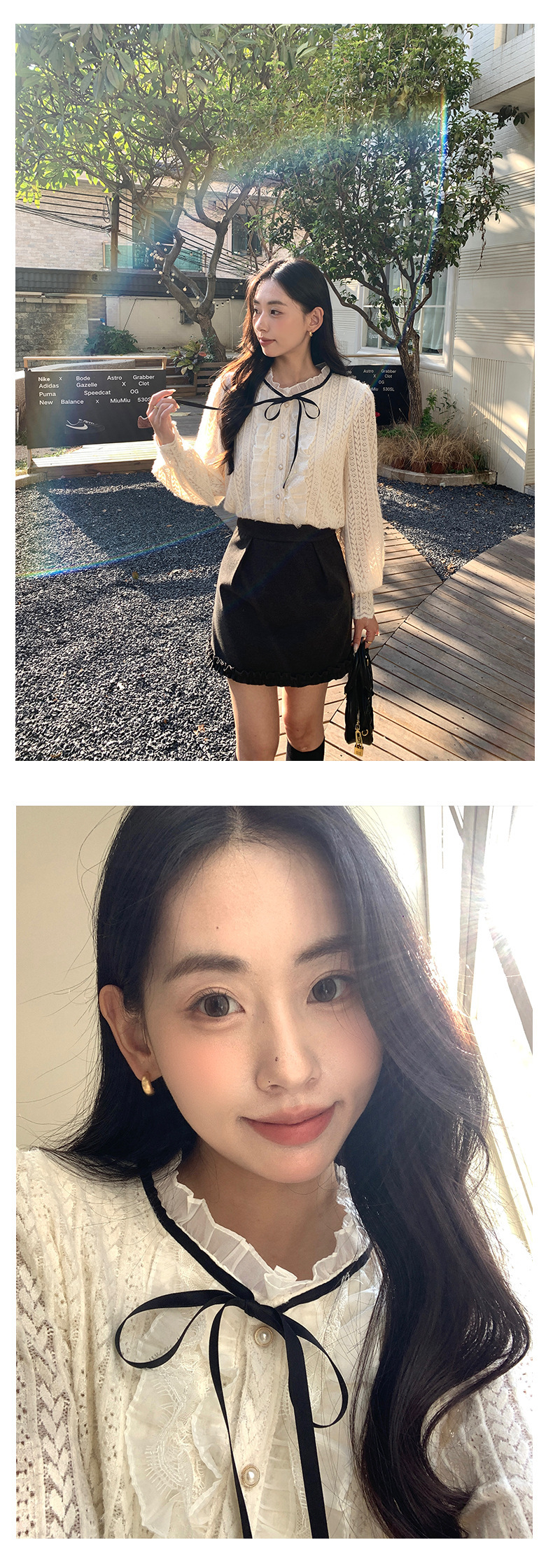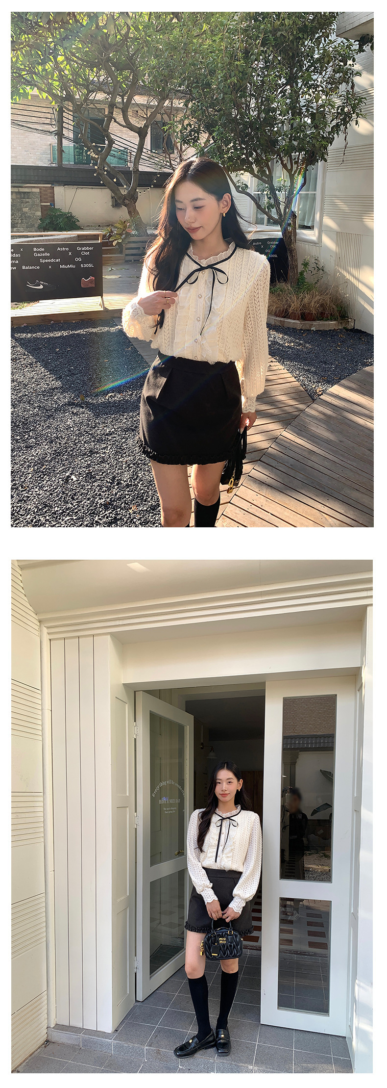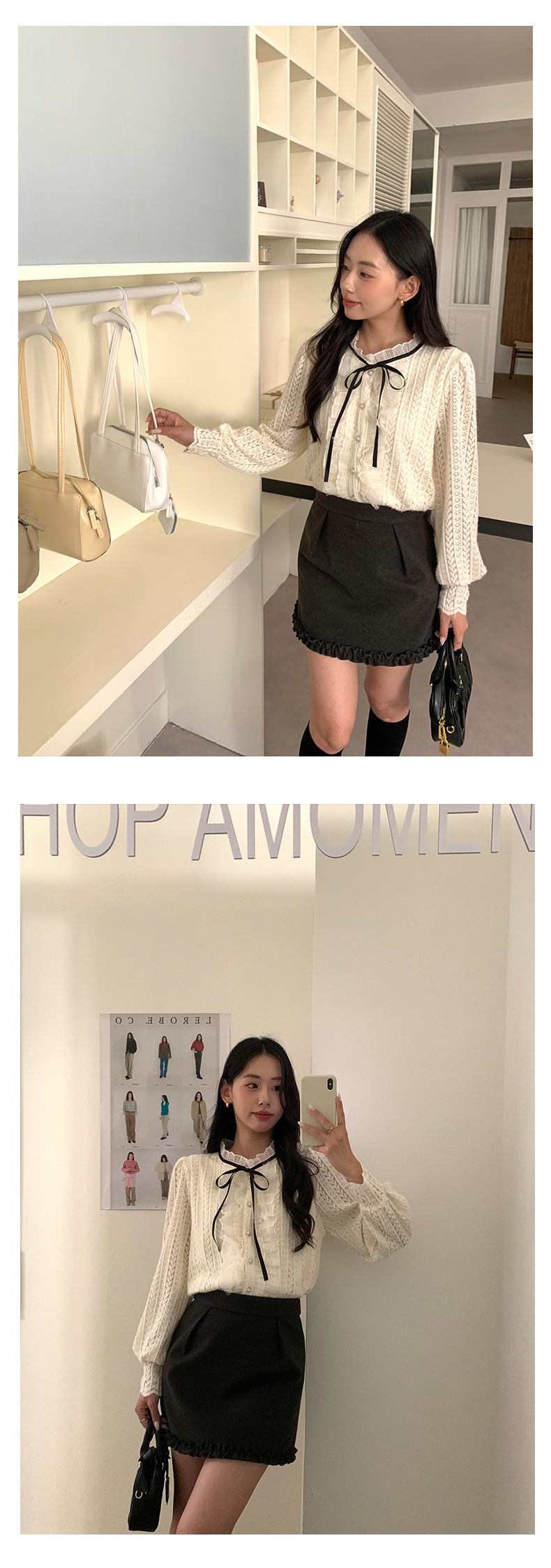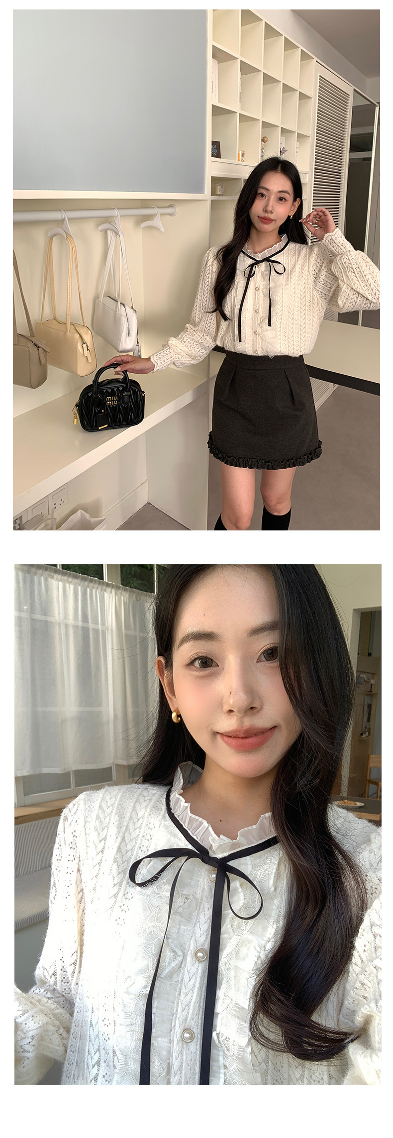 *o-ha-you*【FHZ145CY10037】法式木耳邊蕾絲打底小衫2024冬季半高領上衣-2色
