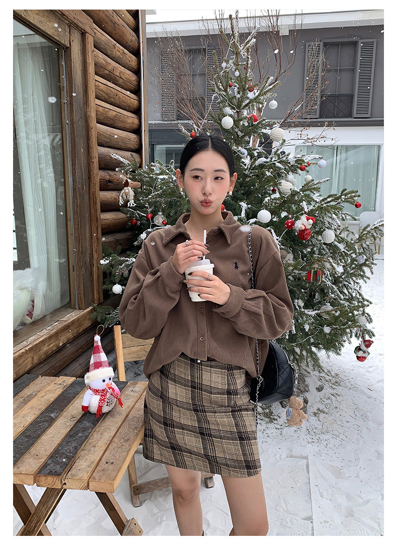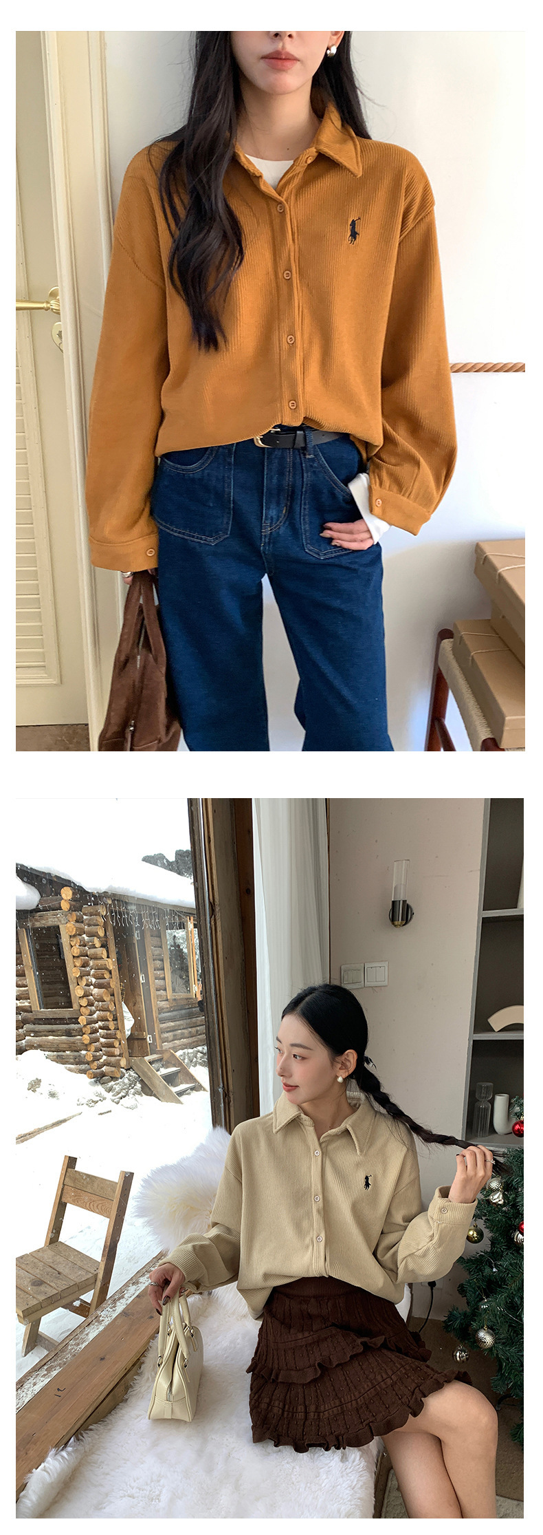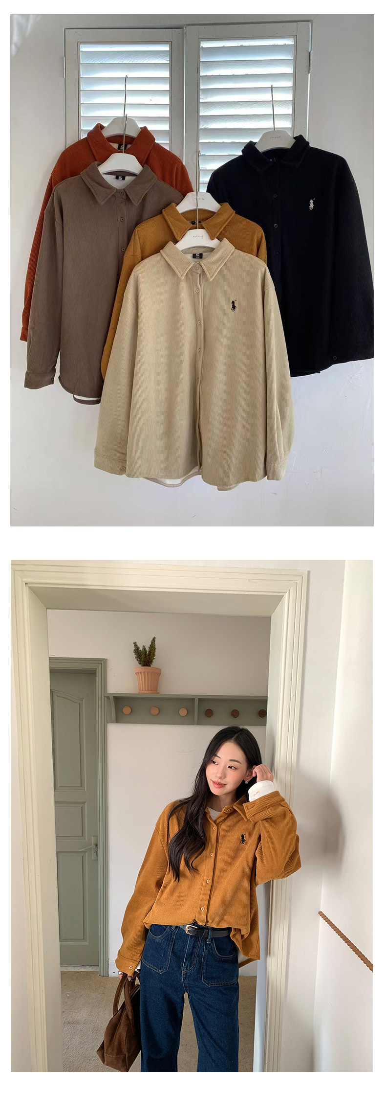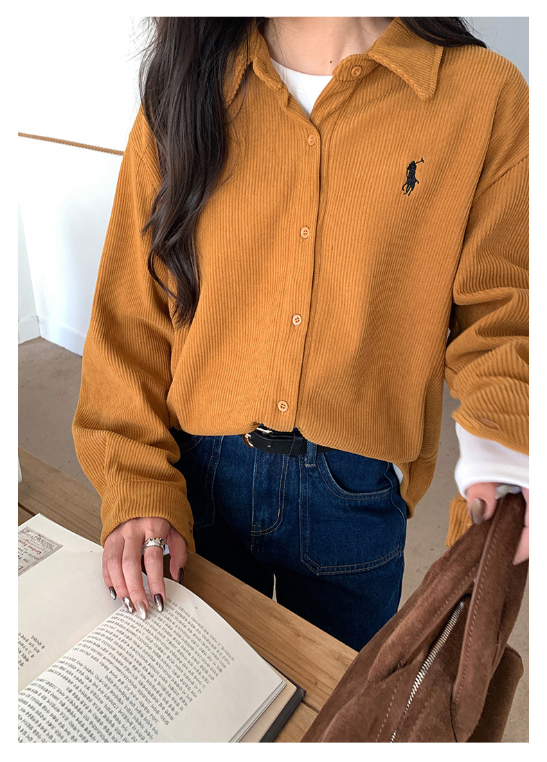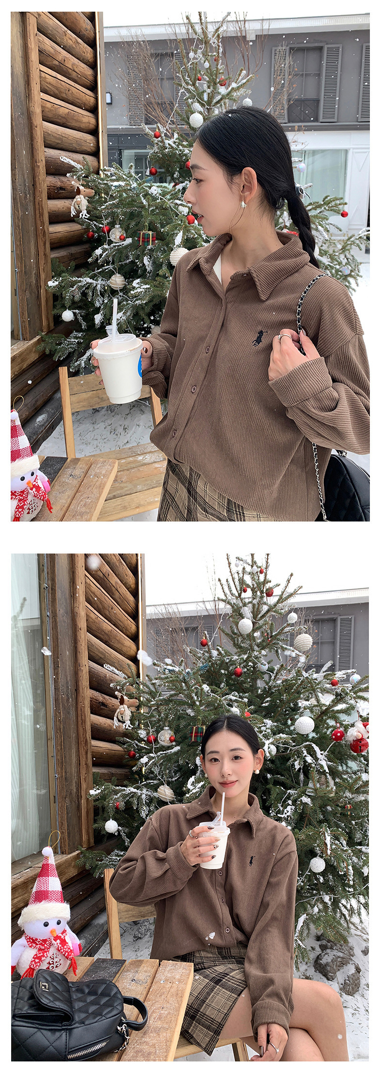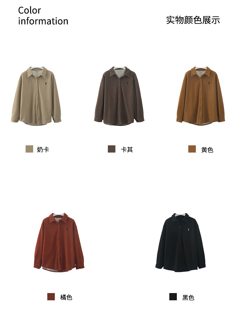 *o-ha-you*【FHZ145CY10057】韓系復古加絨襯衫2024冬寬鬆保暖開襟衫刺繡上衣-5色