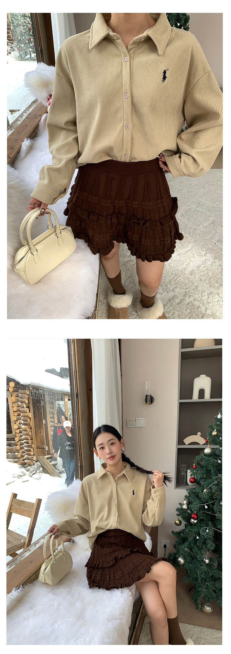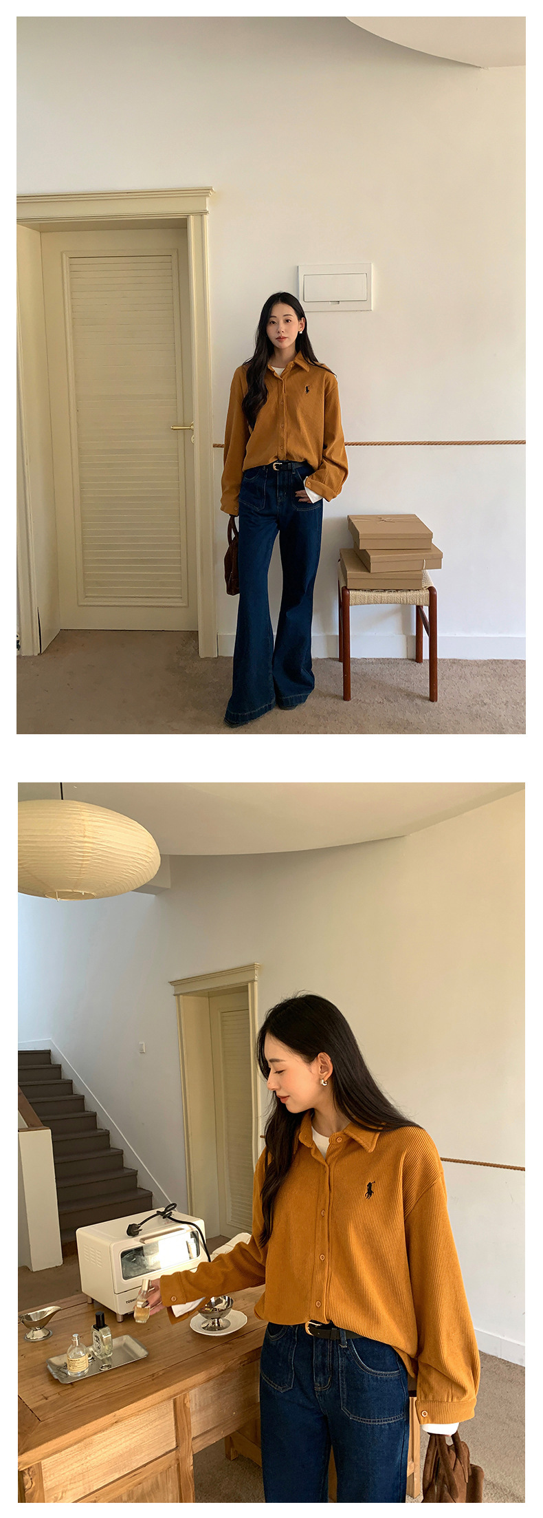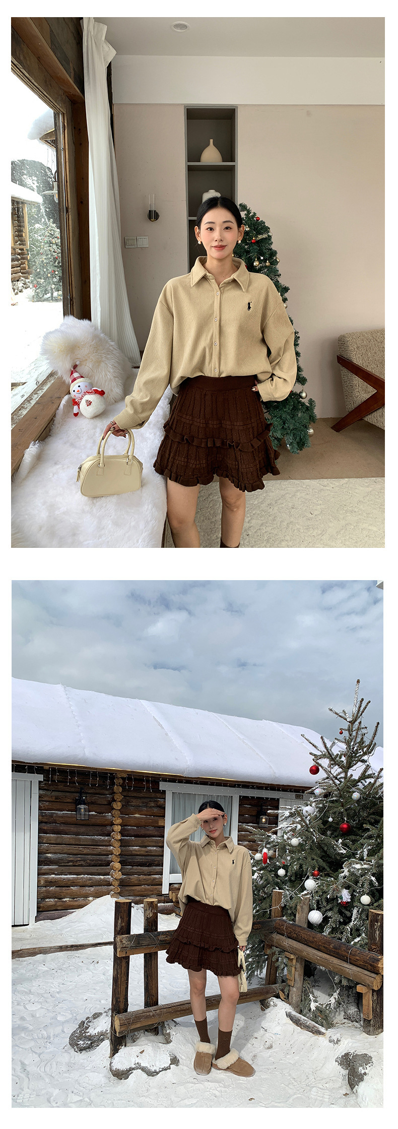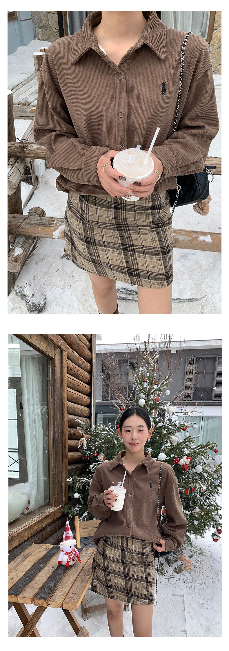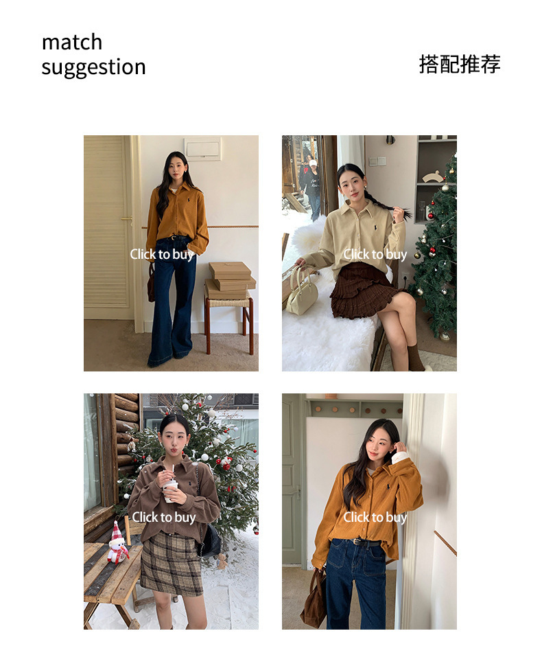 *o-ha-you*【FHZ145CY10057】韓系復古加絨襯衫2024冬寬鬆保暖開襟衫刺繡上衣-5色