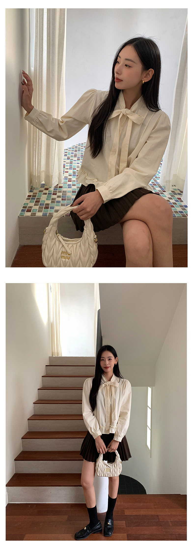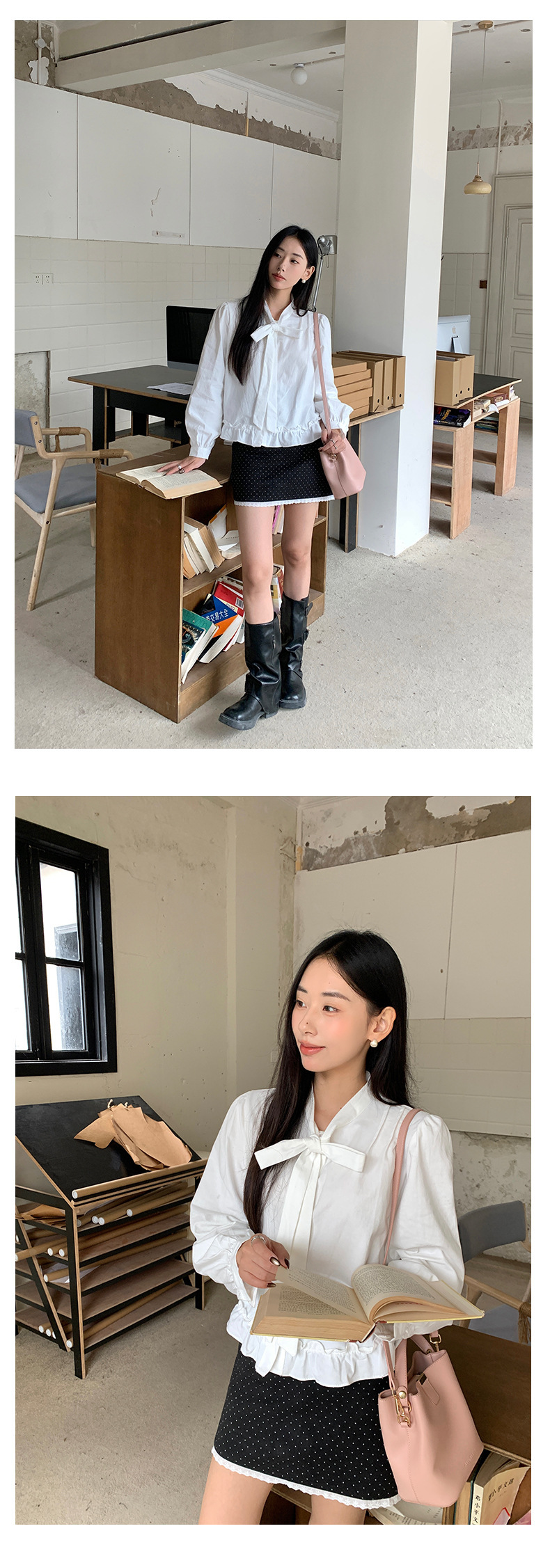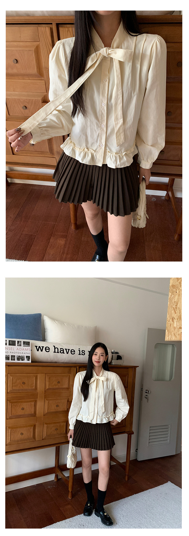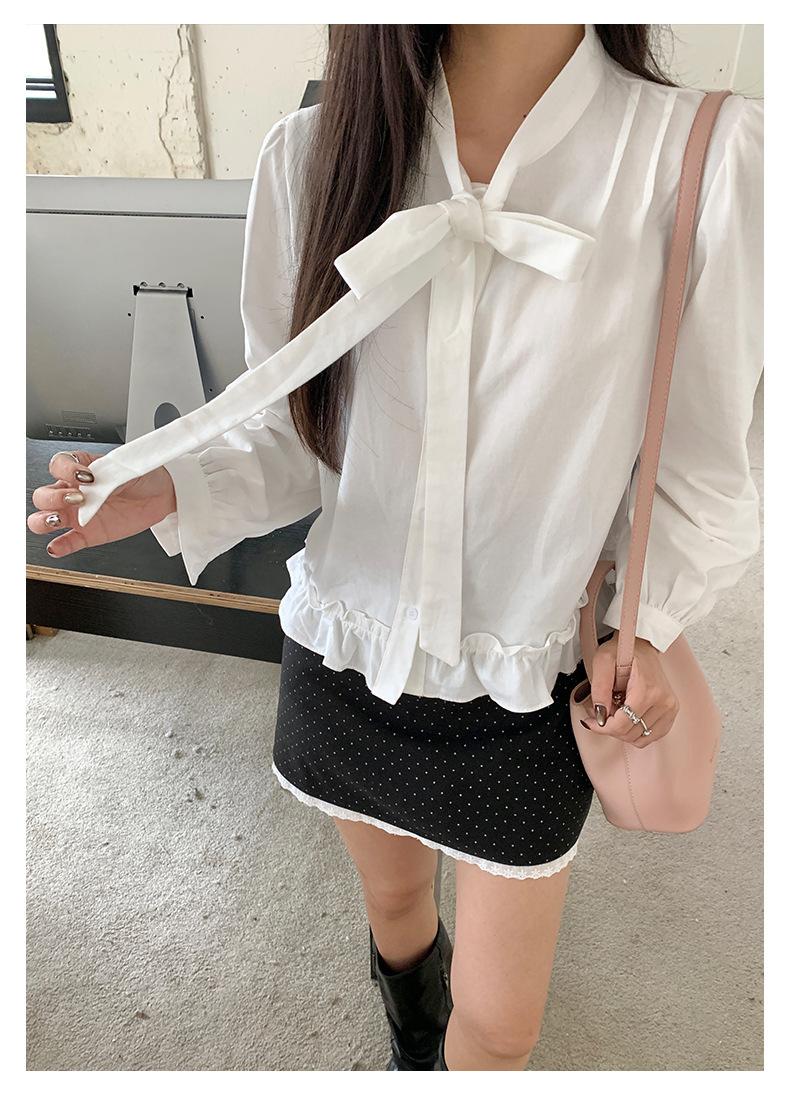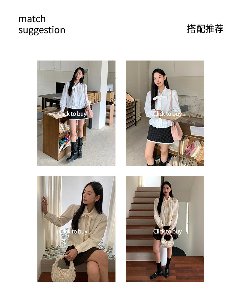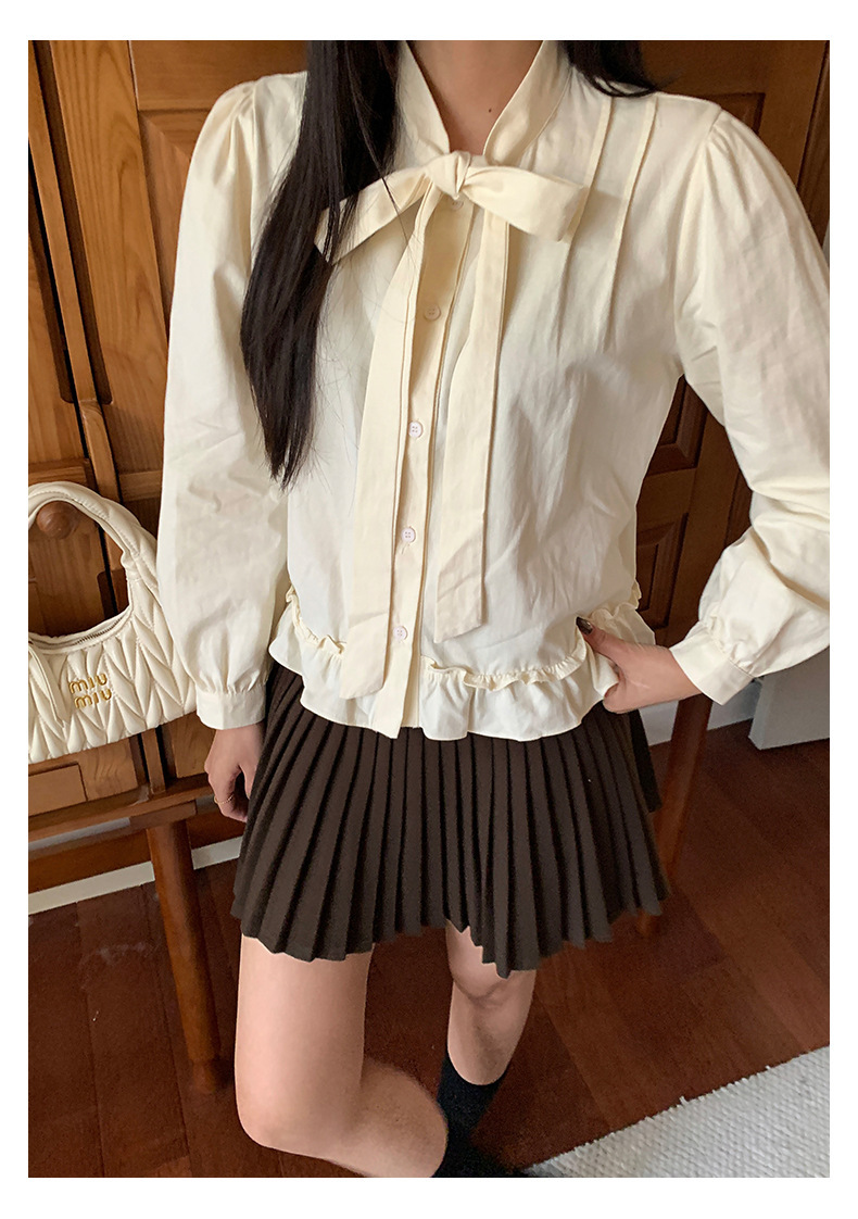 *o-ha-you*【FHZ145CY10077】韓系復古甜美繫帶襯衫2024年冬季洋氣荷葉邊百搭上衣-2色