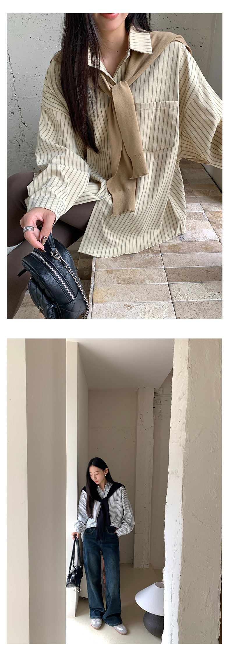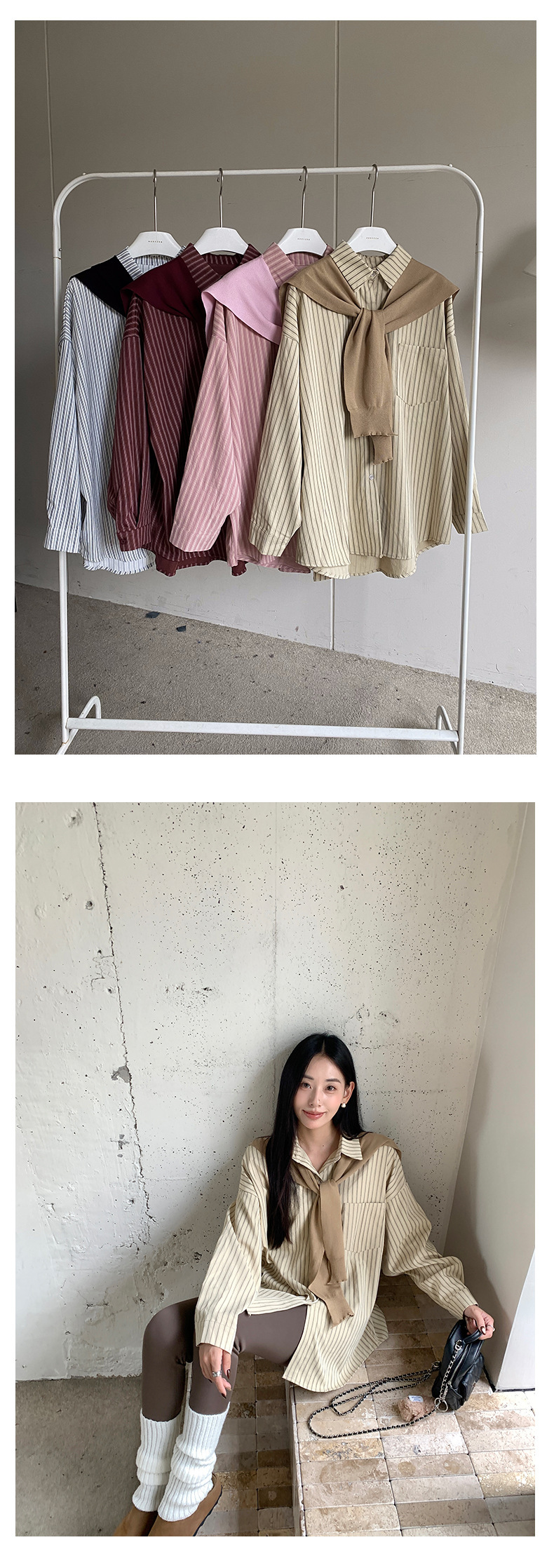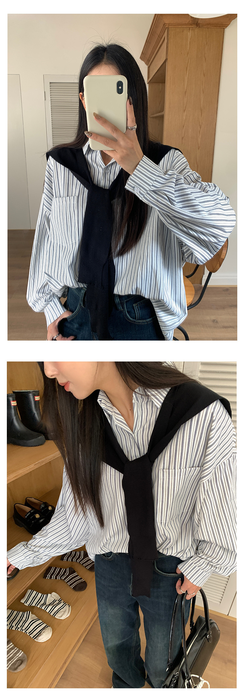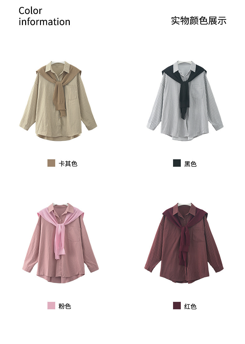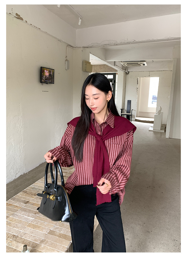 *o-ha-you*【FHZ145CY10078】韓系甜美假兩件披肩條紋襯衫2024冬季氣質顯瘦上衣-4色