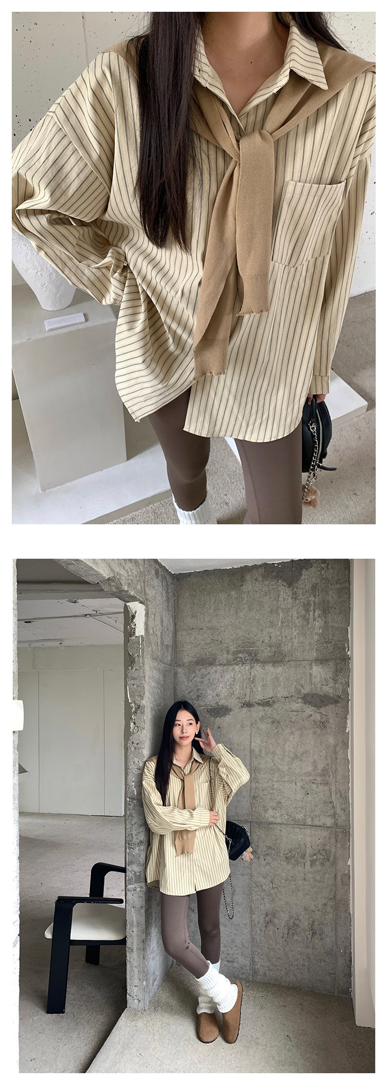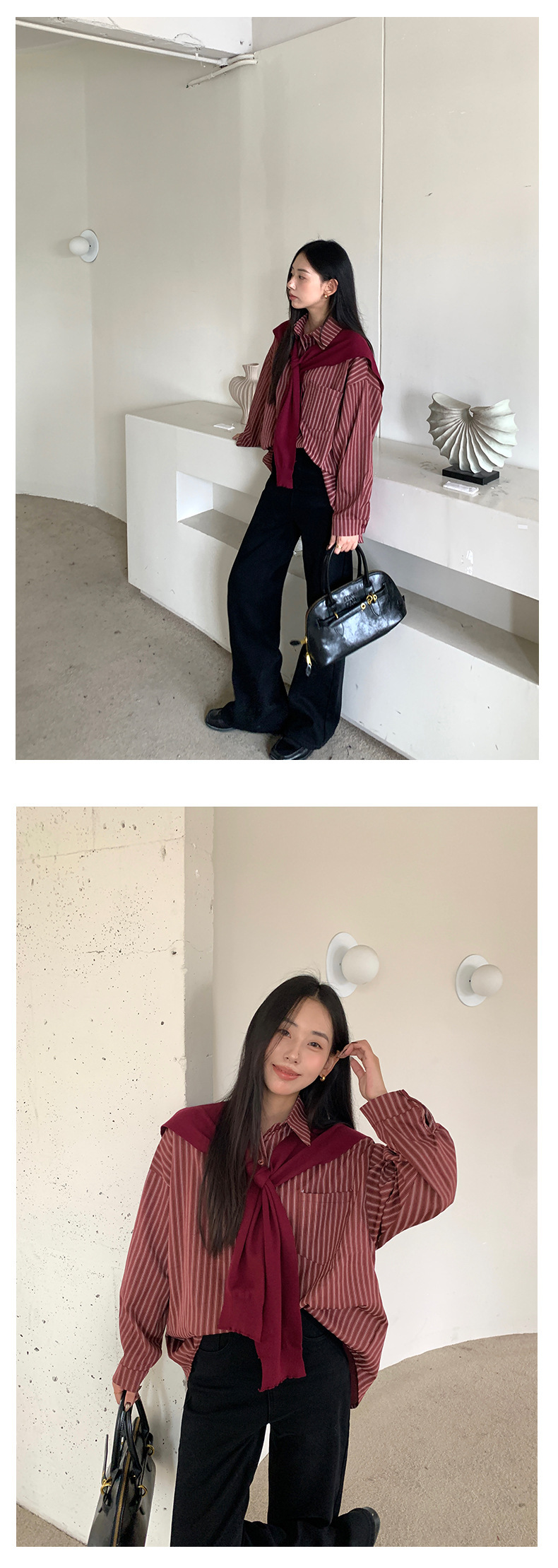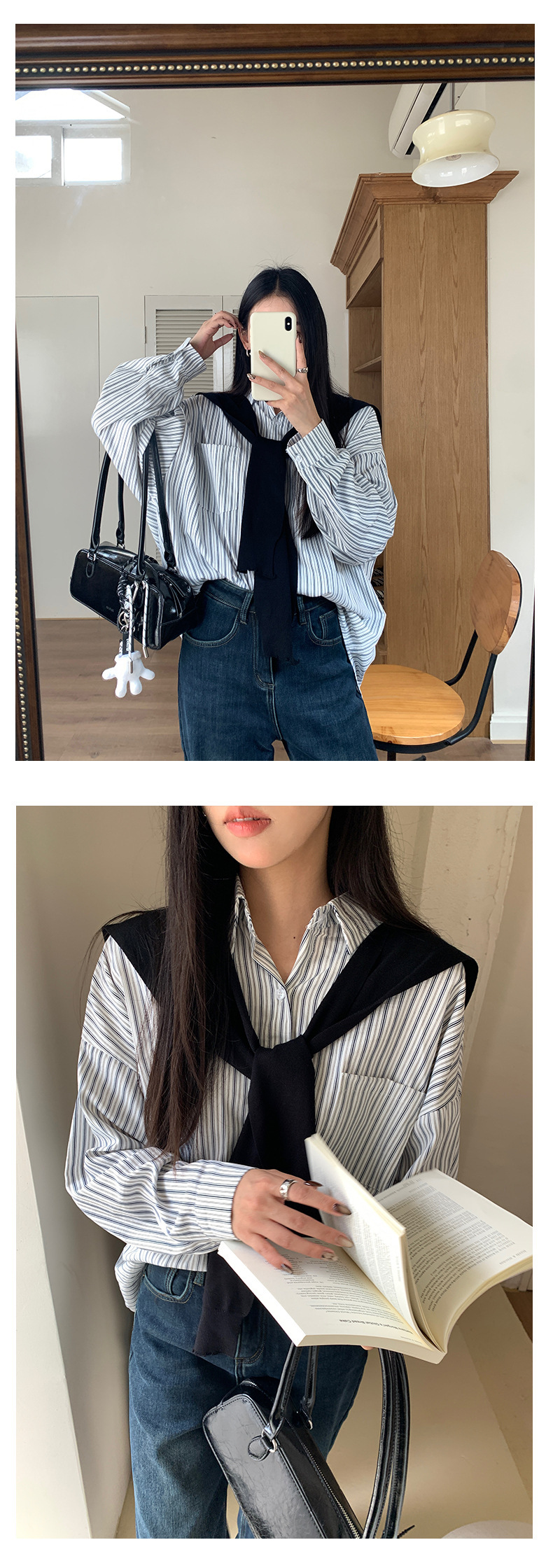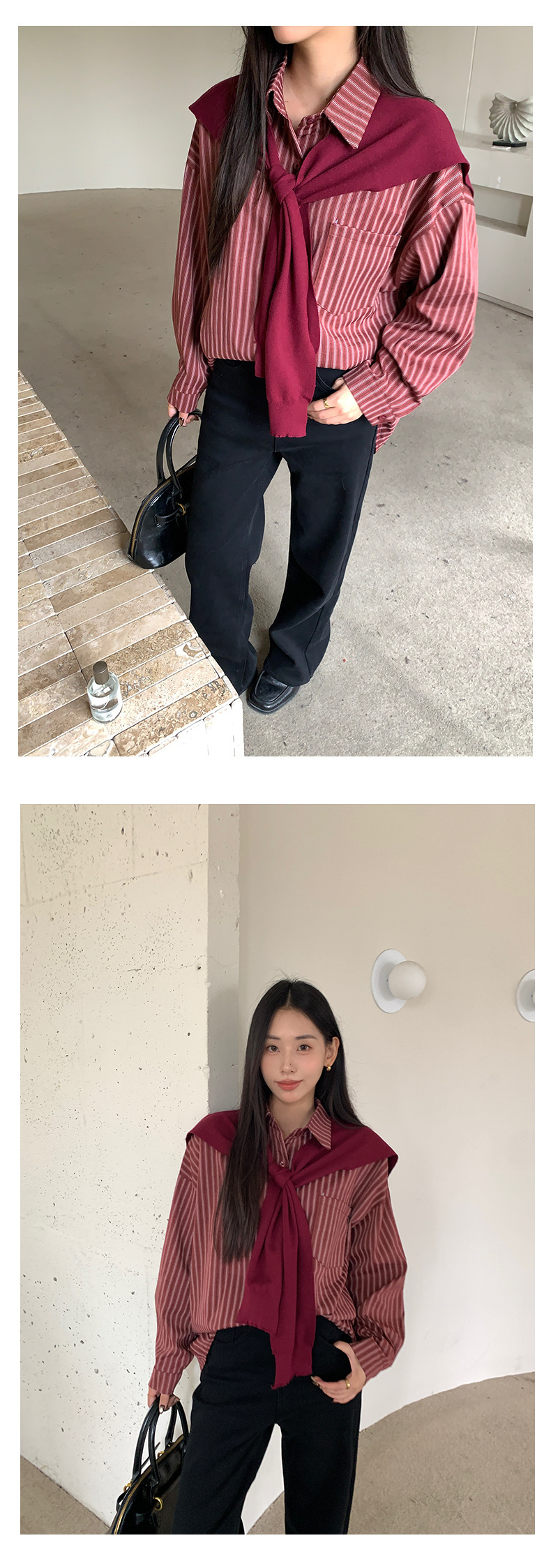*o-ha-you*【FHZ145CY10078】韓系甜美假兩件披肩條紋襯衫2024冬季氣質顯瘦上衣-4色