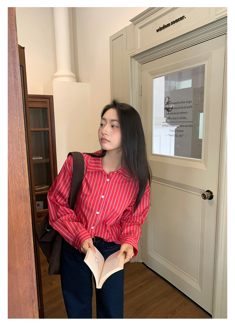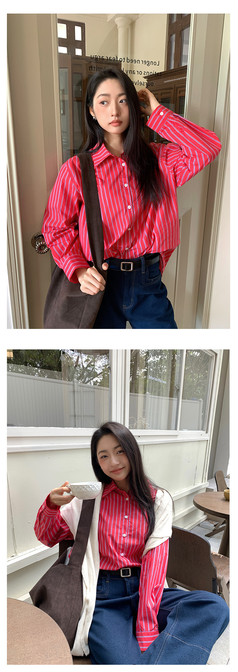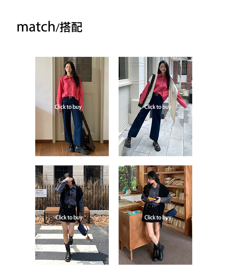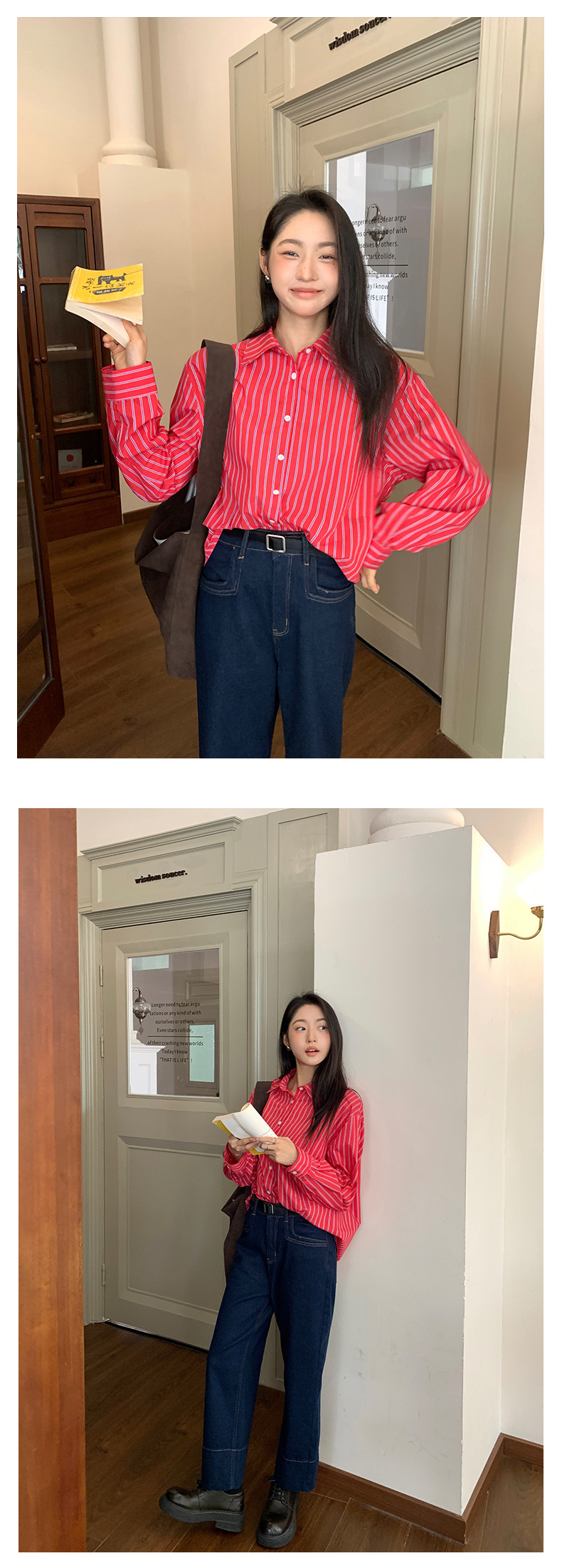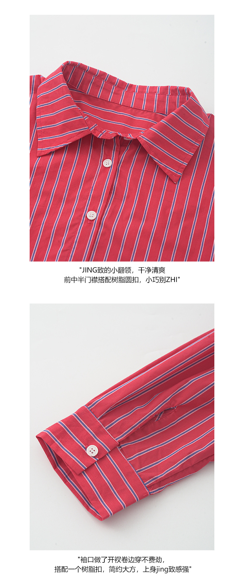 *o-ha-you*【FHZ145CY8022】法式復古高智感條紋淨色襯衫2024年釦子九分袖襯衫-2色