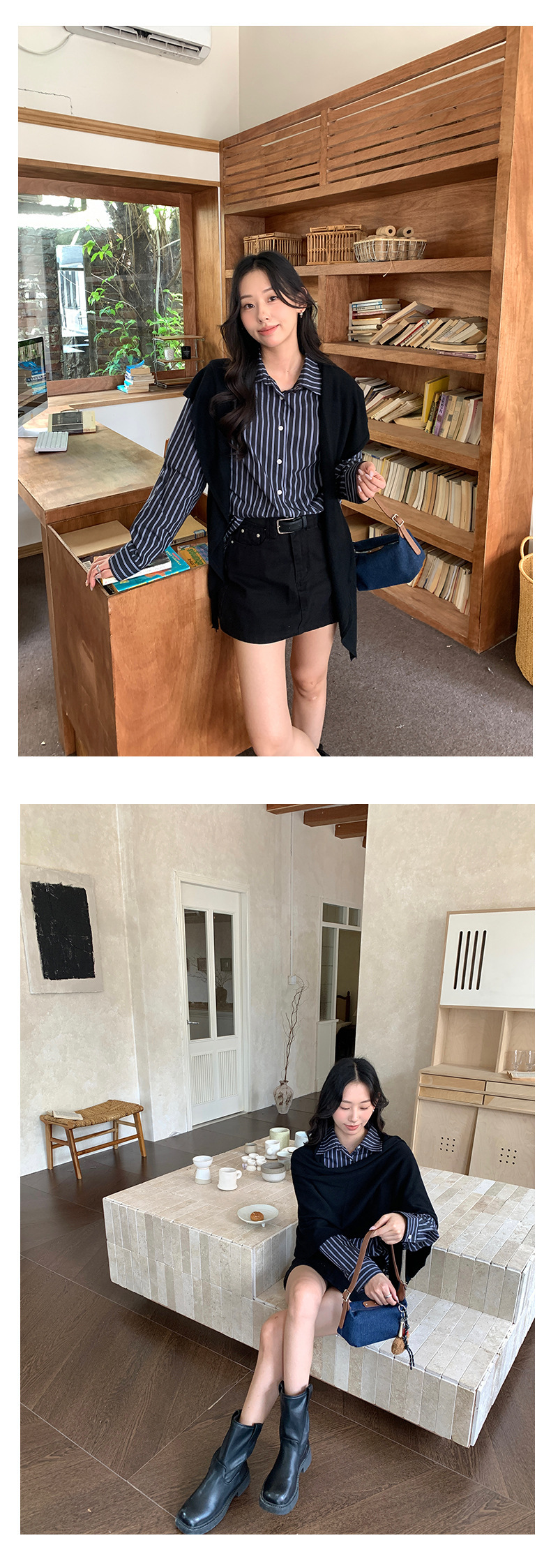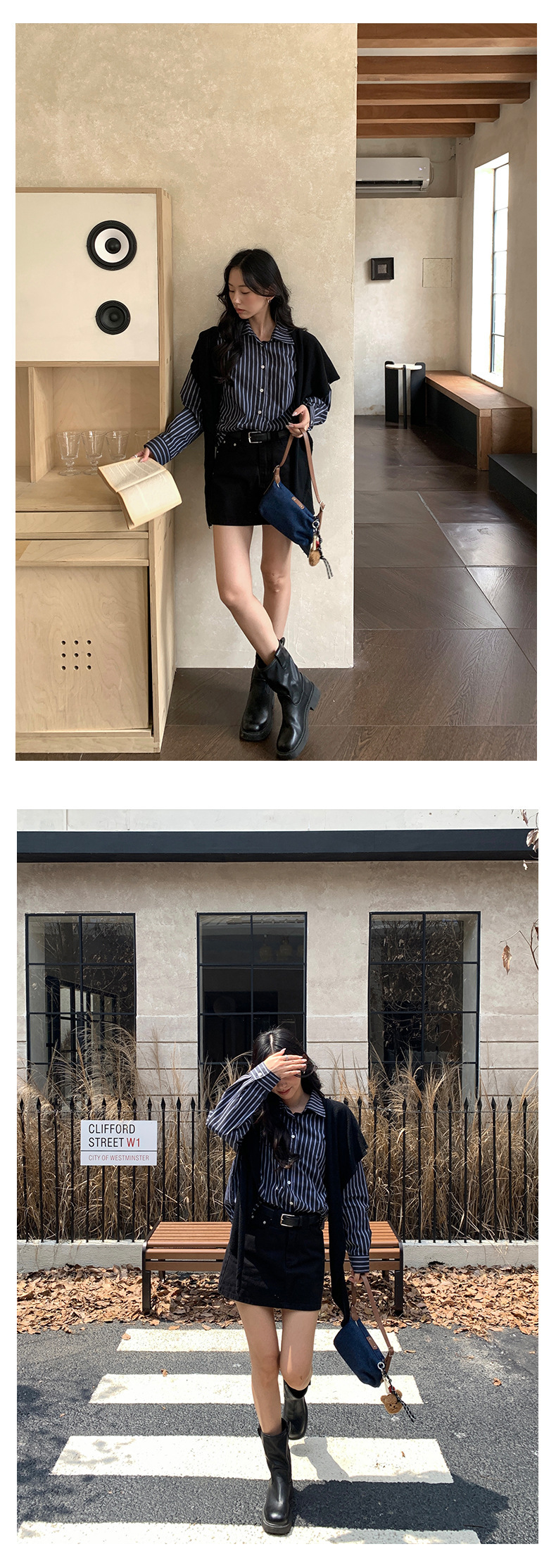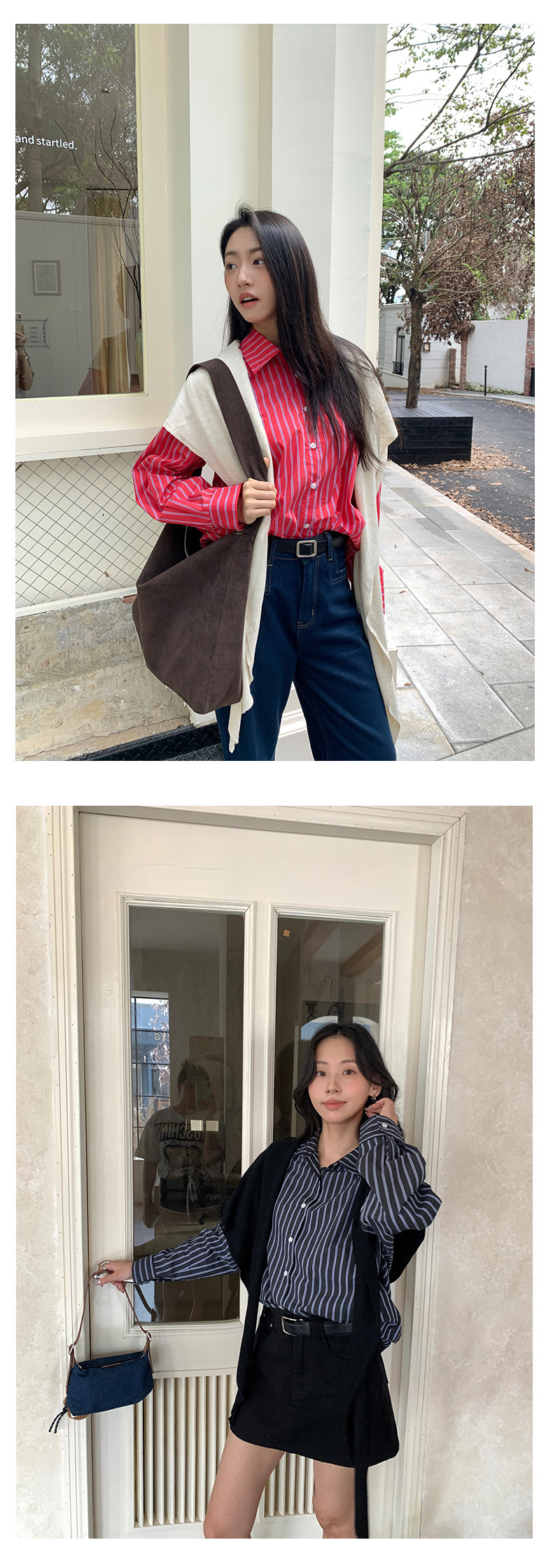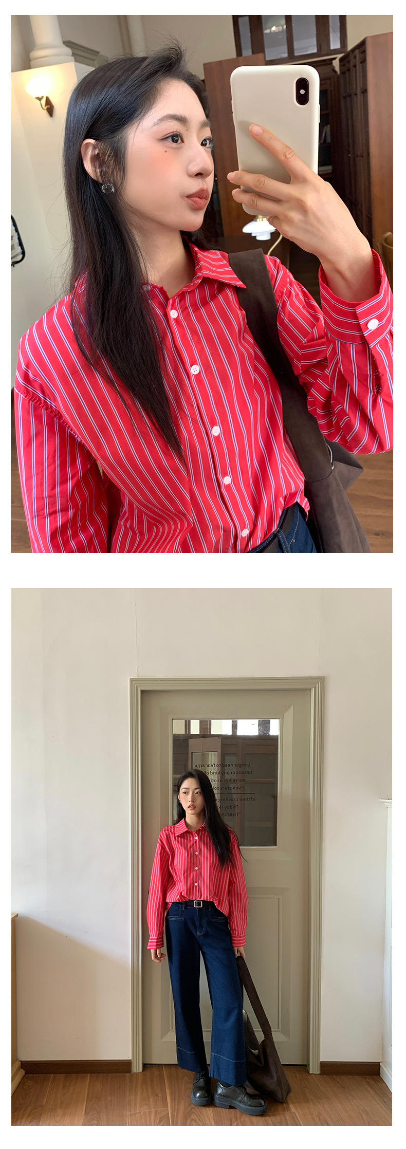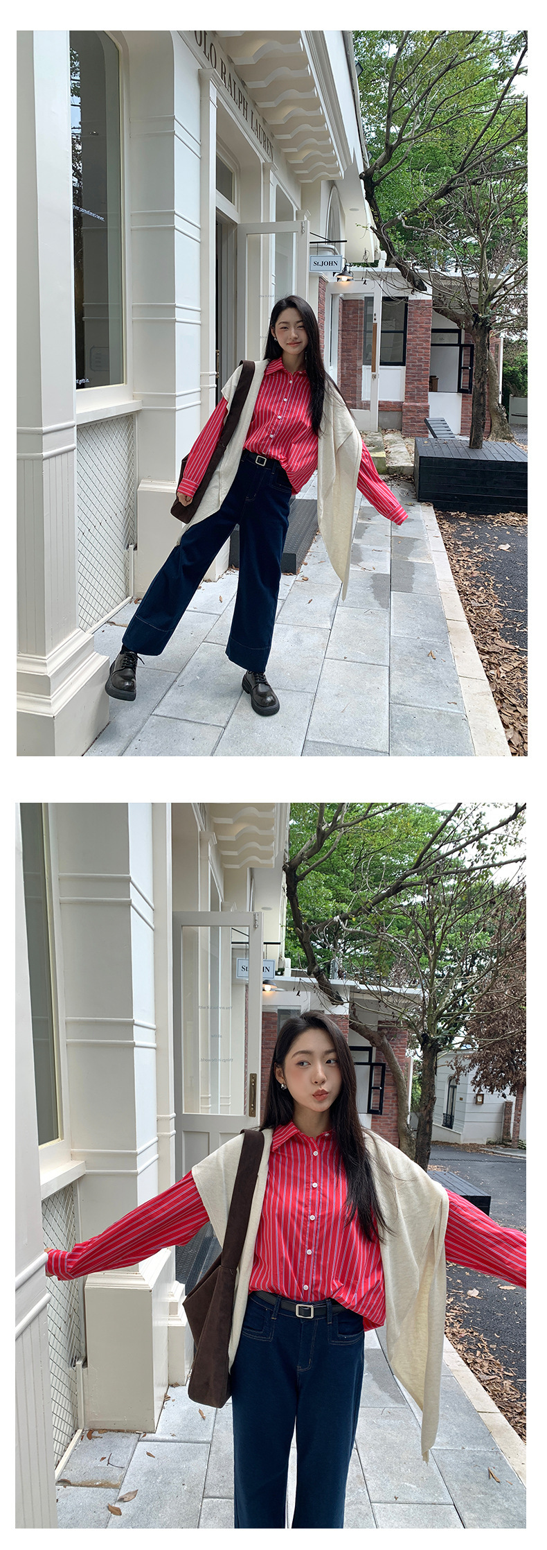 *o-ha-you*【FHZ145CY8022】法式復古高智感條紋淨色襯衫2024年釦子九分袖襯衫-2色