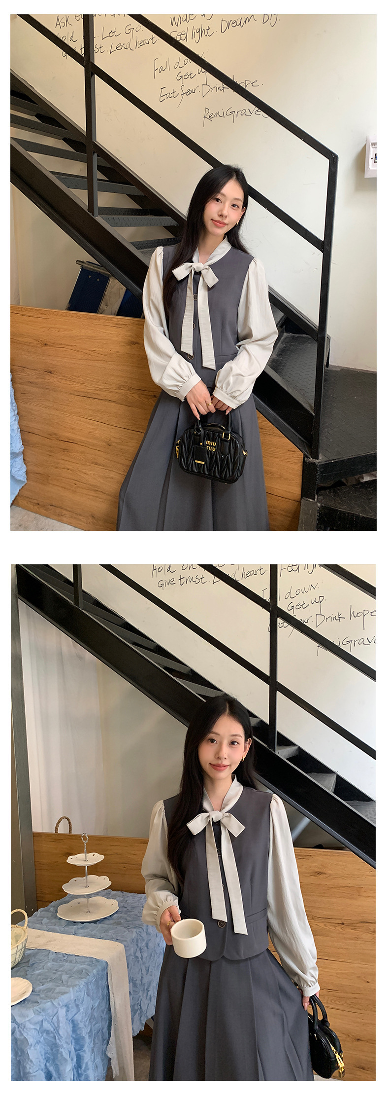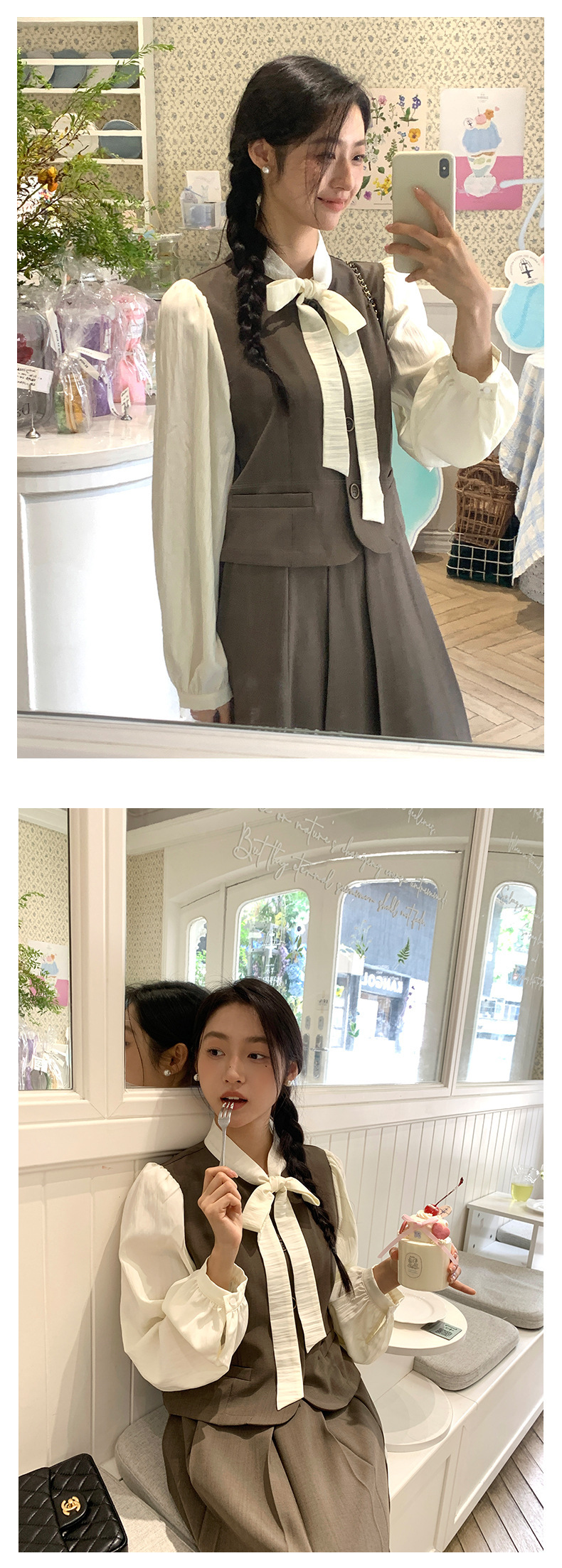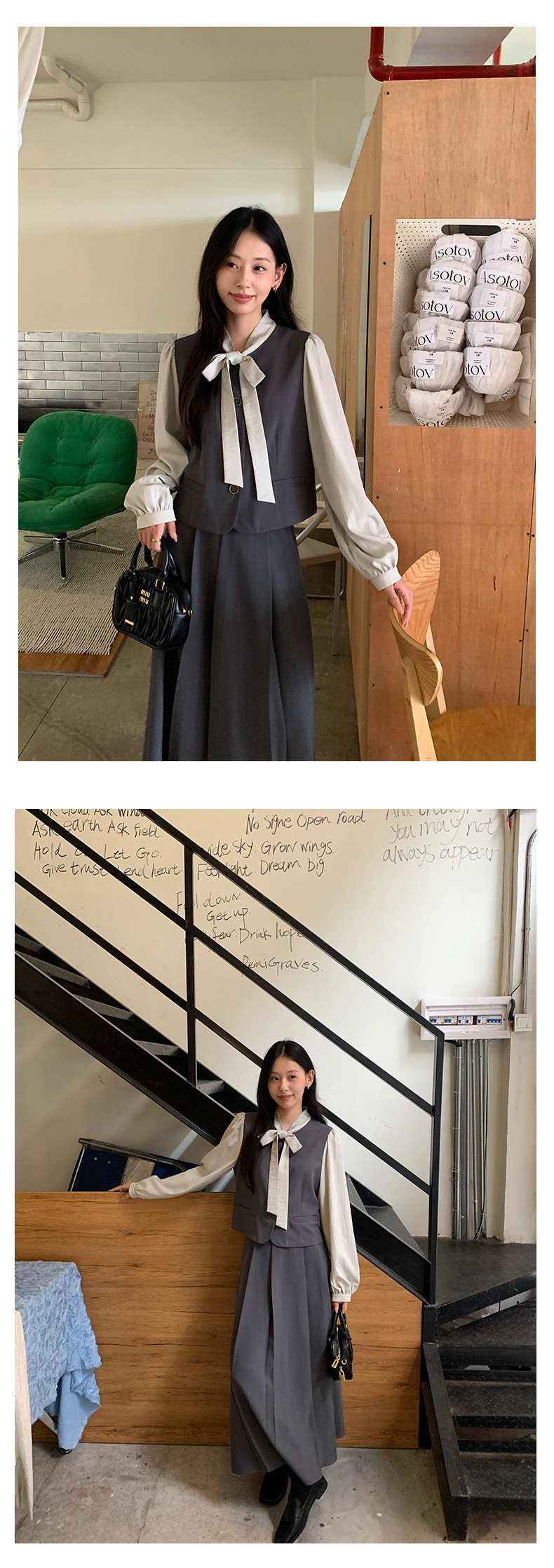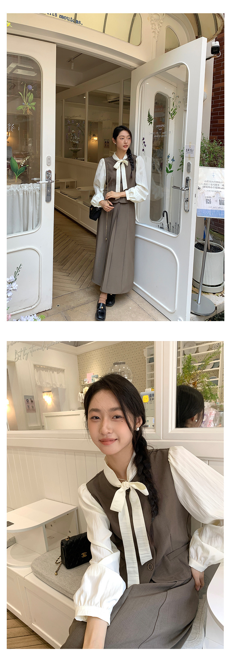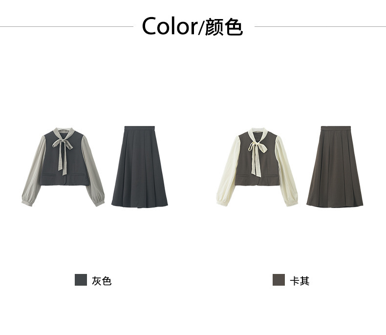 *o-ha-you*【FHZ145CY8043】韓式復古領帶假兩件小衫半身裙2024年冬季甜美套裝-2色