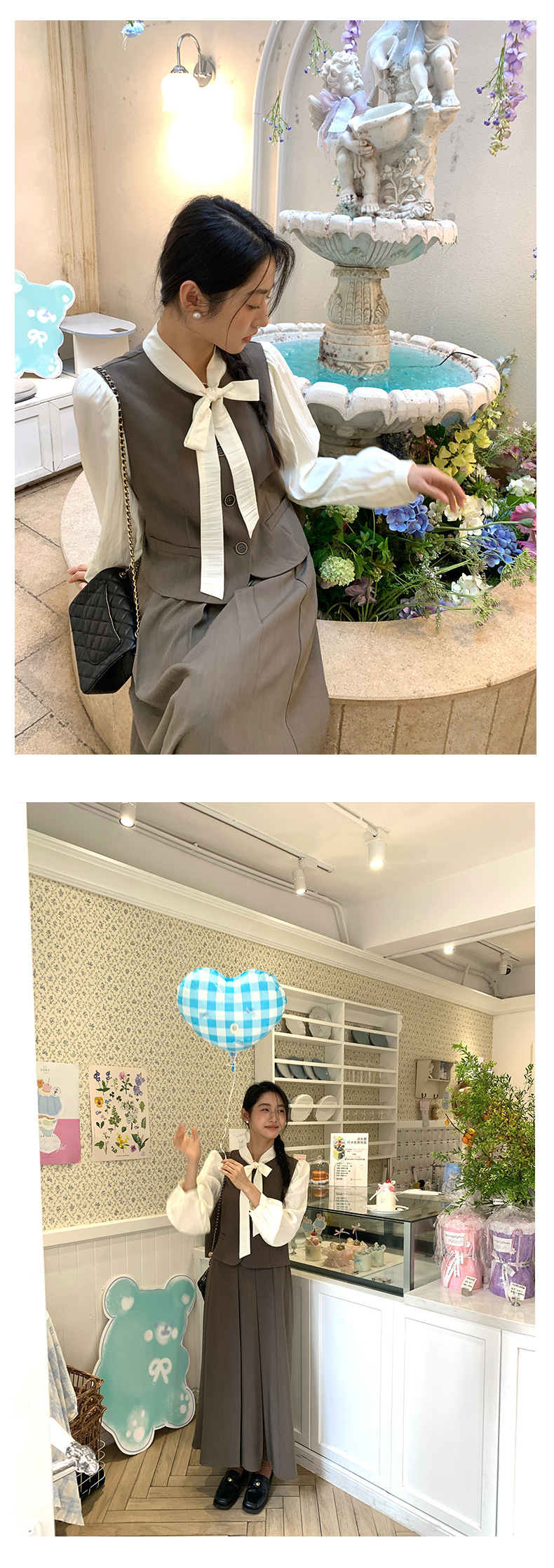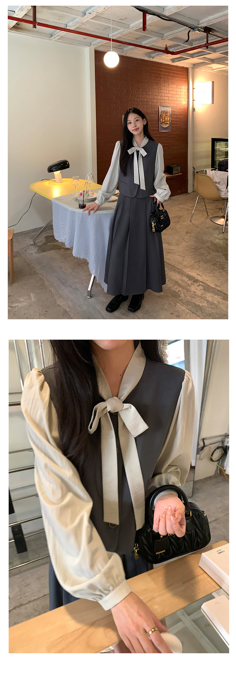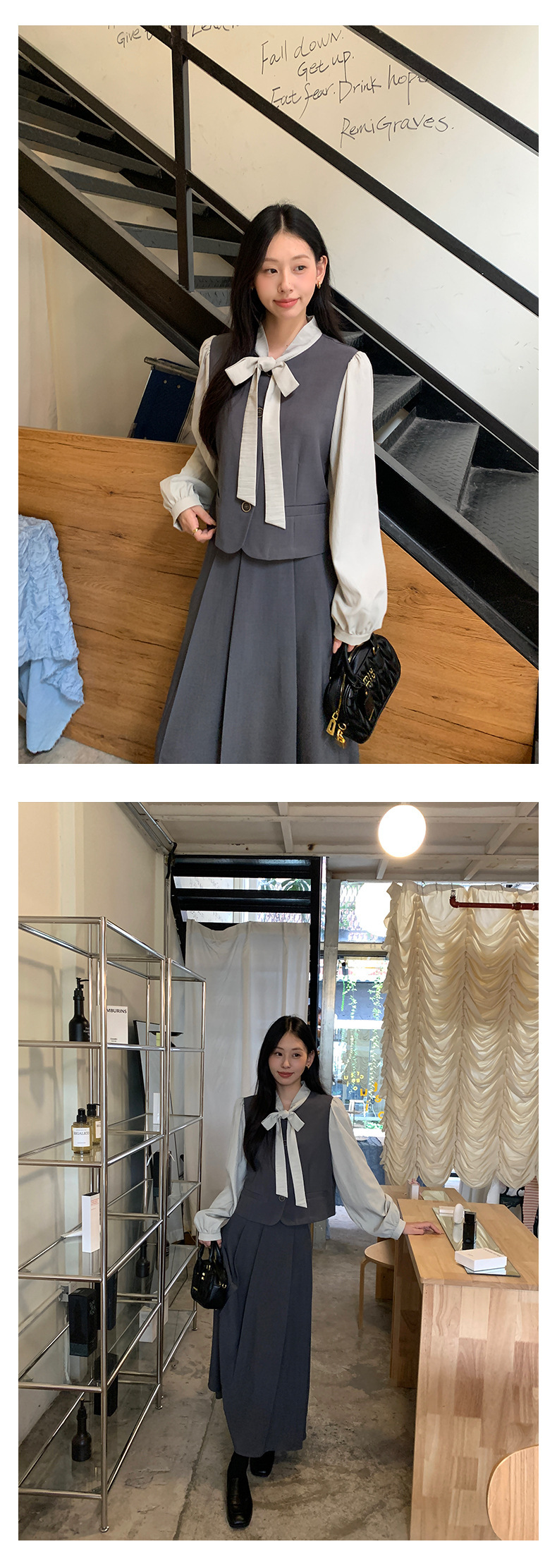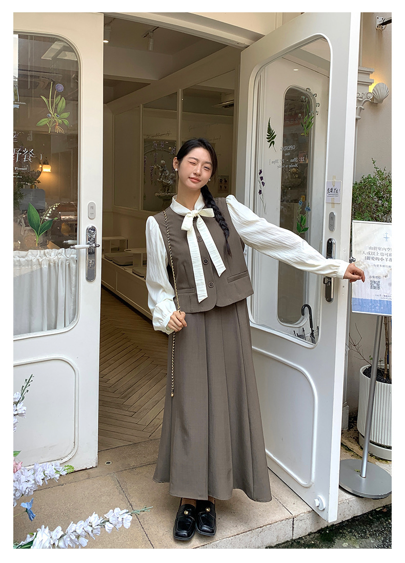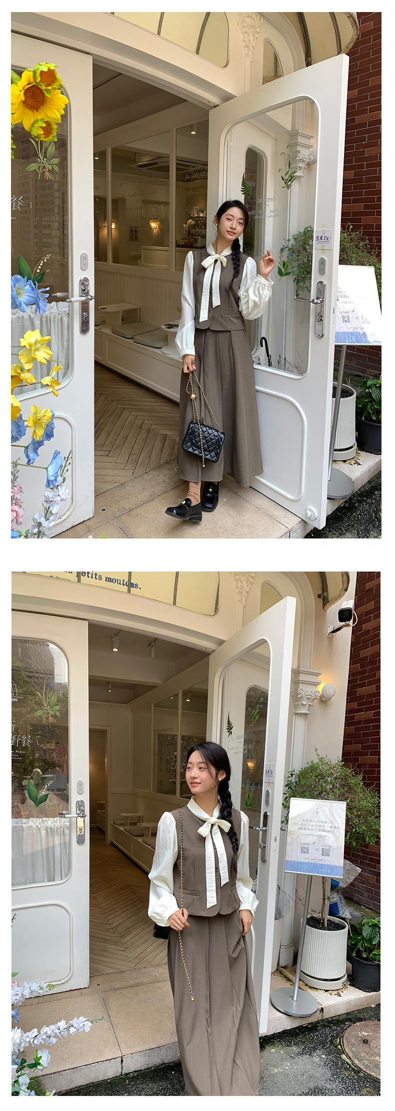 *o-ha-you*【FHZ145CY8043】韓式復古領帶假兩件小衫半身裙2024年冬季甜美套裝-2色