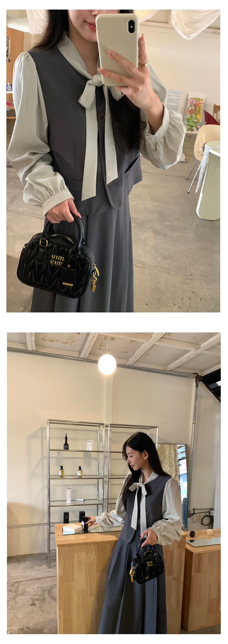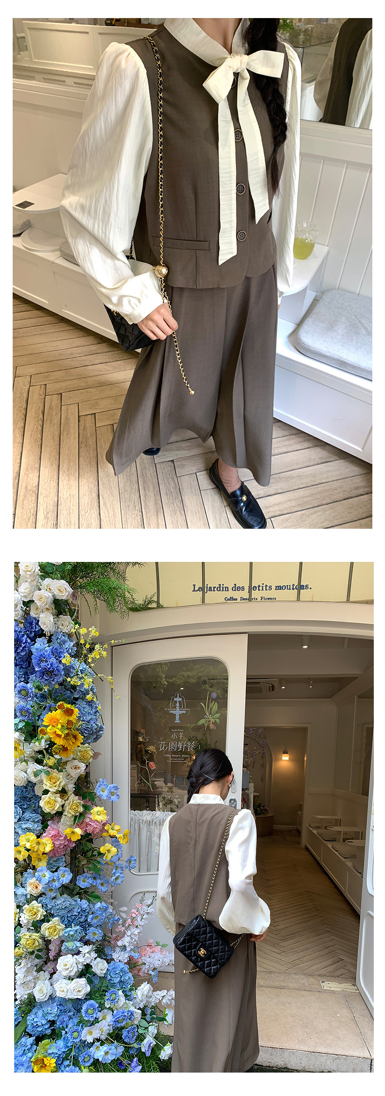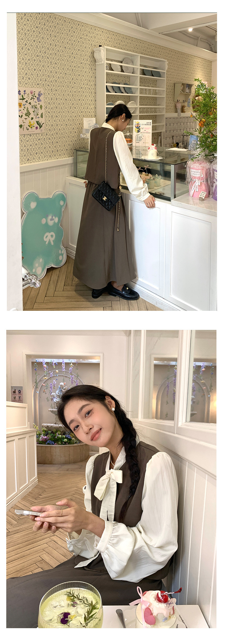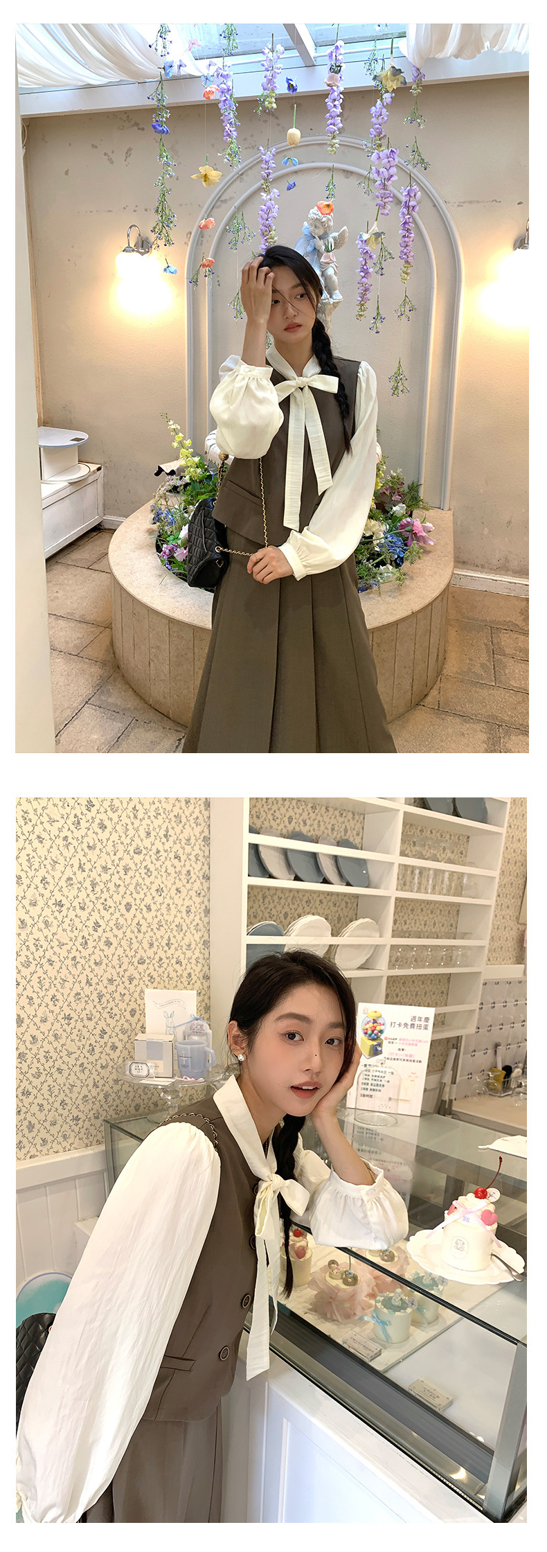 *o-ha-you*【FHZ145CY8043】韓式復古領帶假兩件小衫半身裙2024年冬季甜美套裝-2色