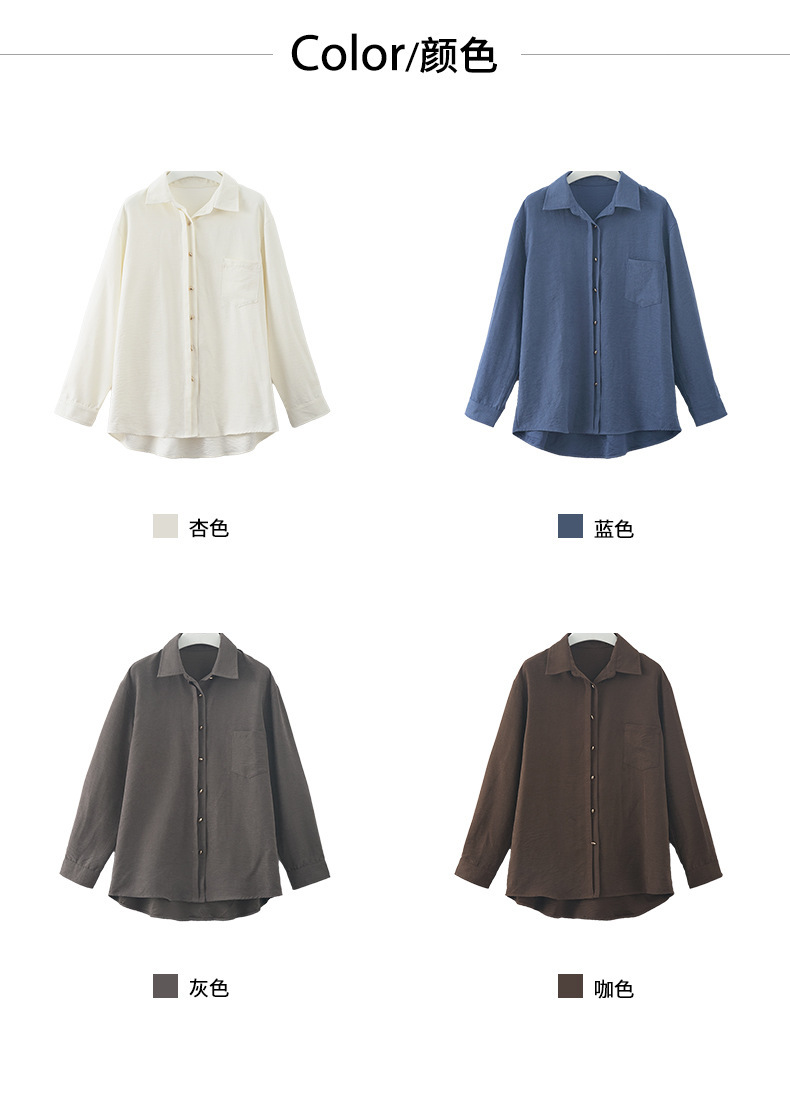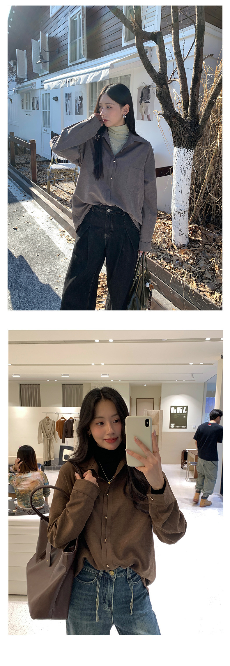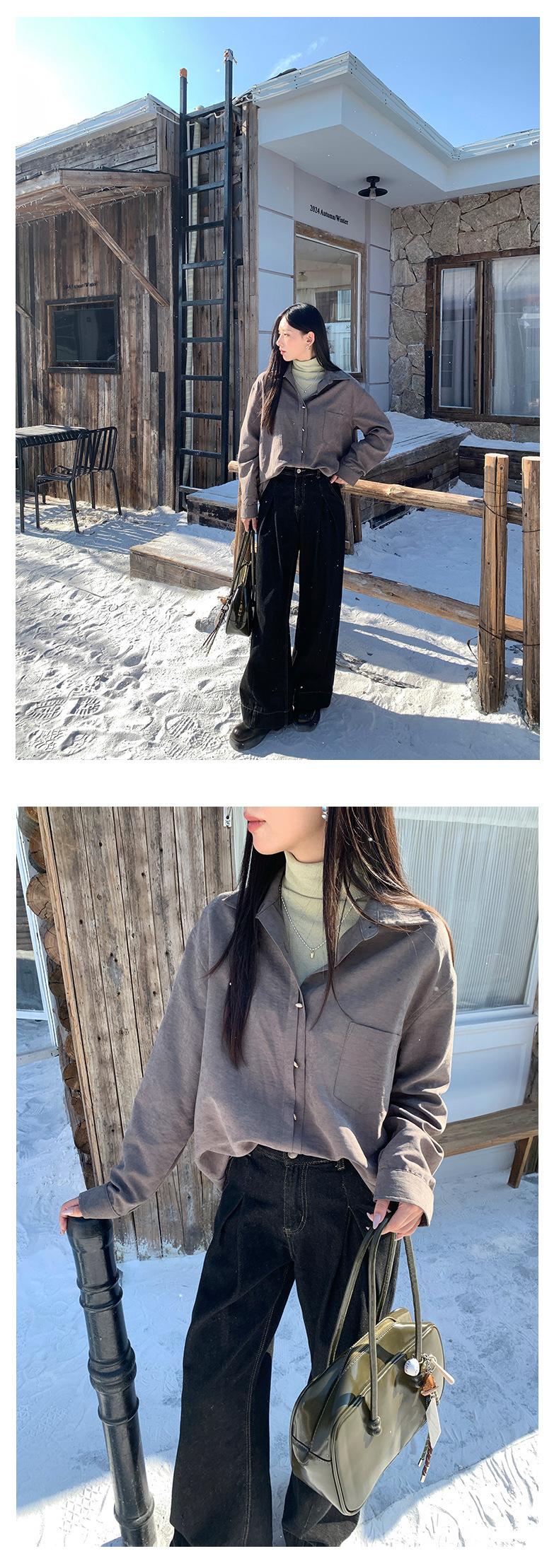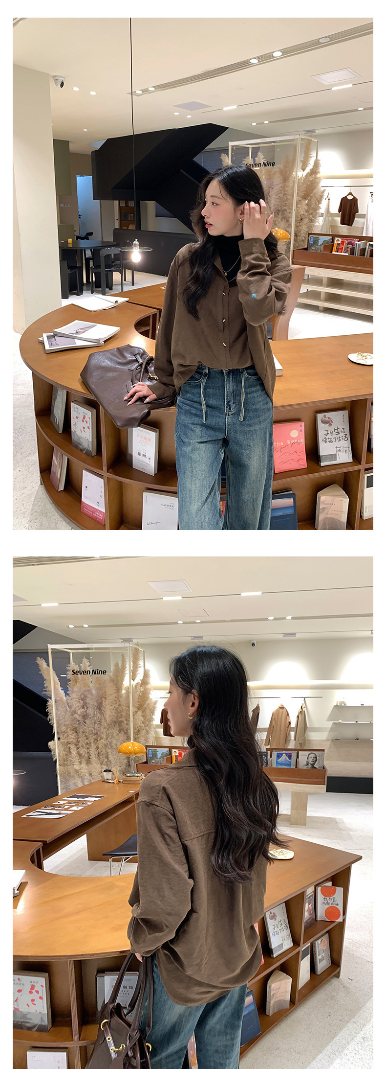 *o-ha-you*【FHZ145CY9023】法式雙開門絨感金屬扣襯衫2024年冬季長袖疊穿慵懶-4色-如有需要請先諮詢
