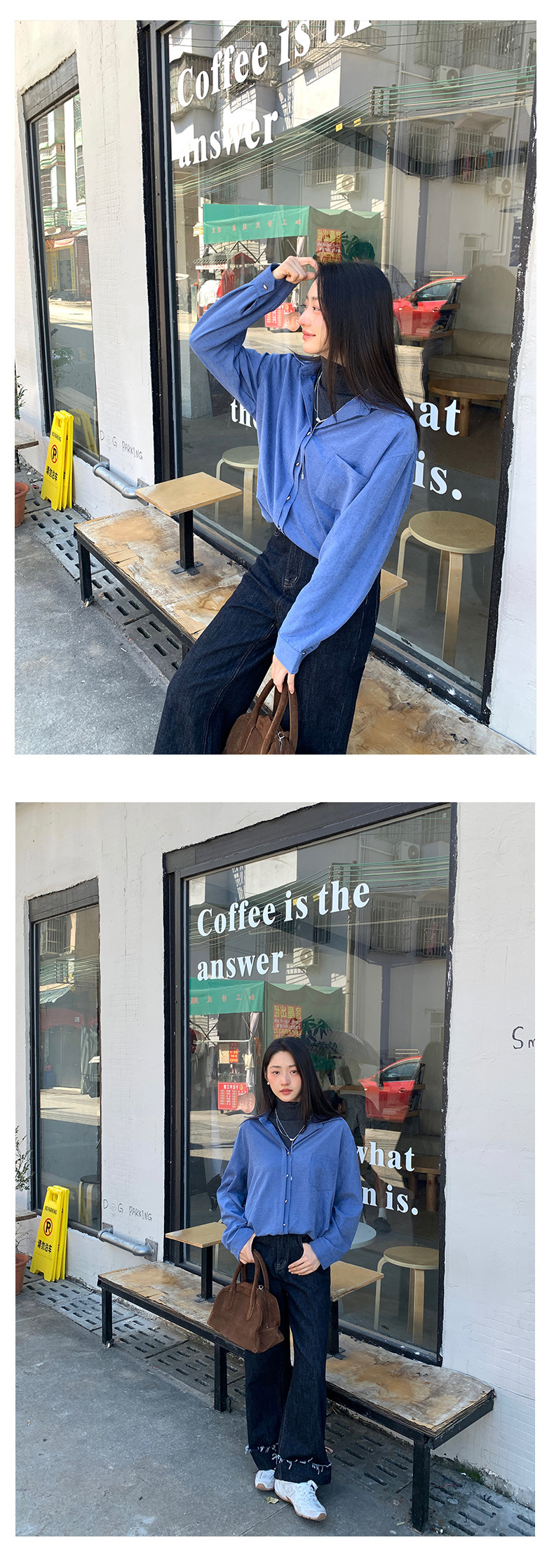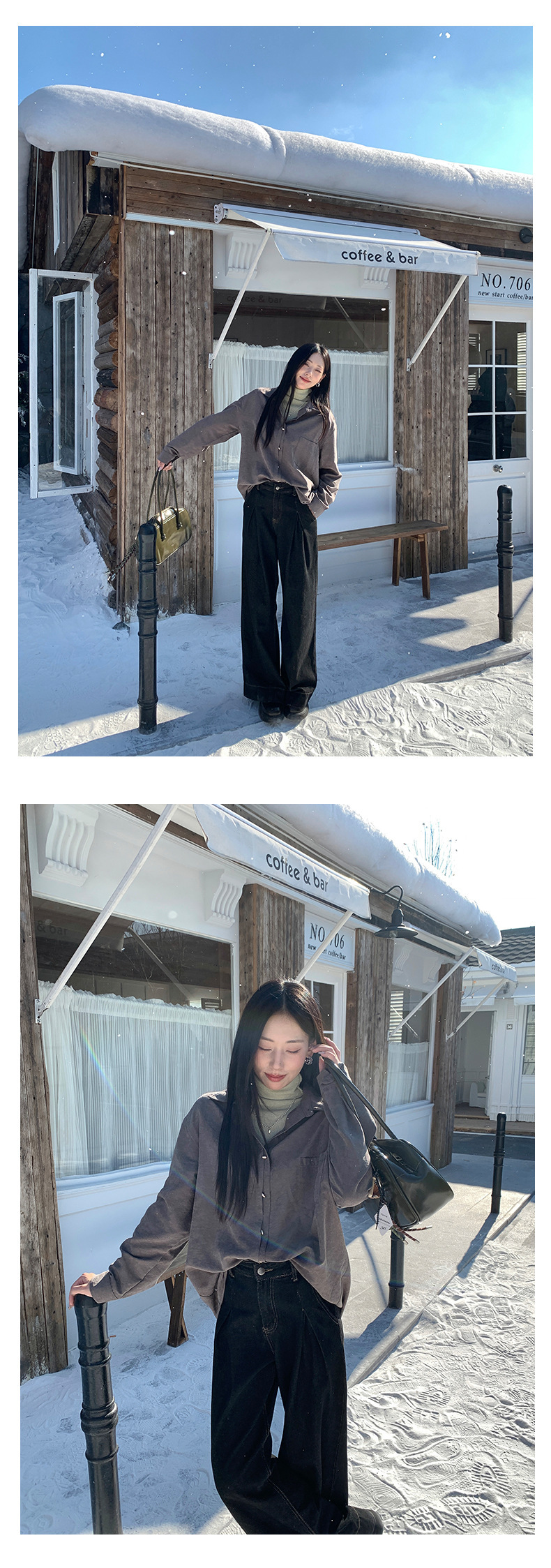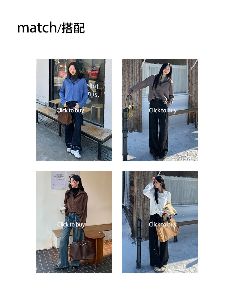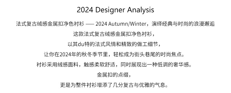 *o-ha-you*【FHZ145CY9023】法式雙開門絨感金屬扣襯衫2024年冬季長袖疊穿慵懶-4色-如有需要請先諮詢