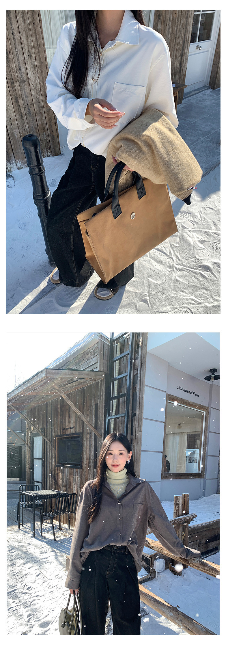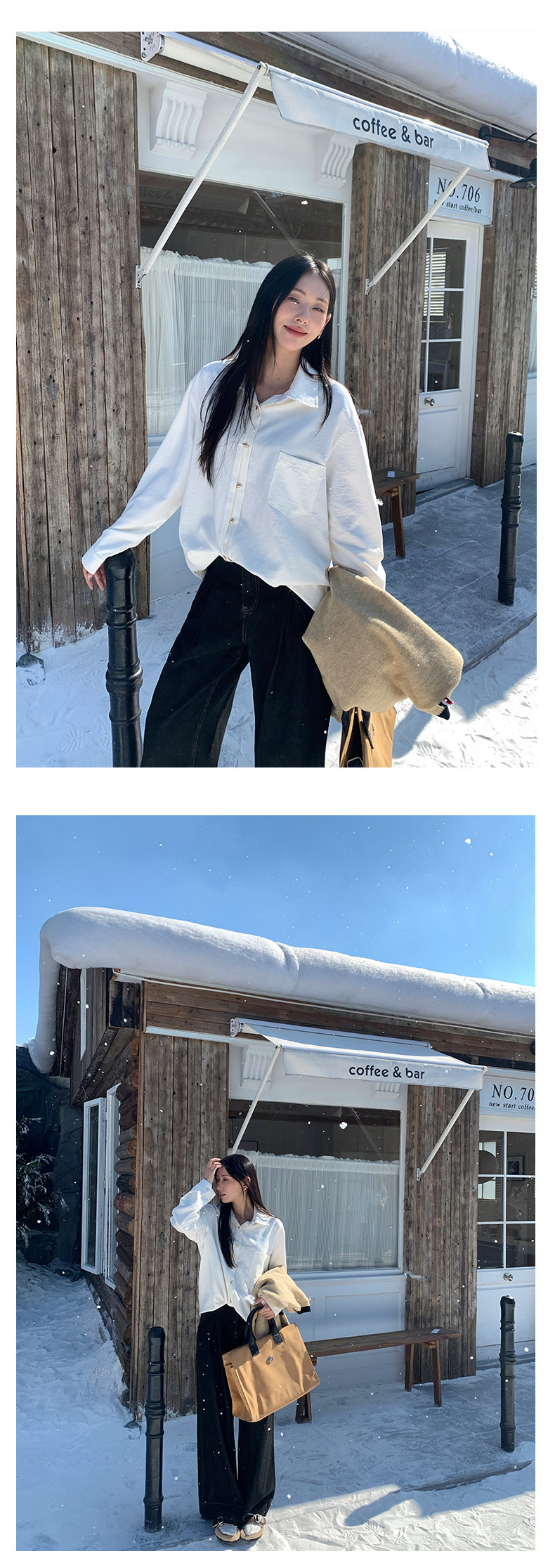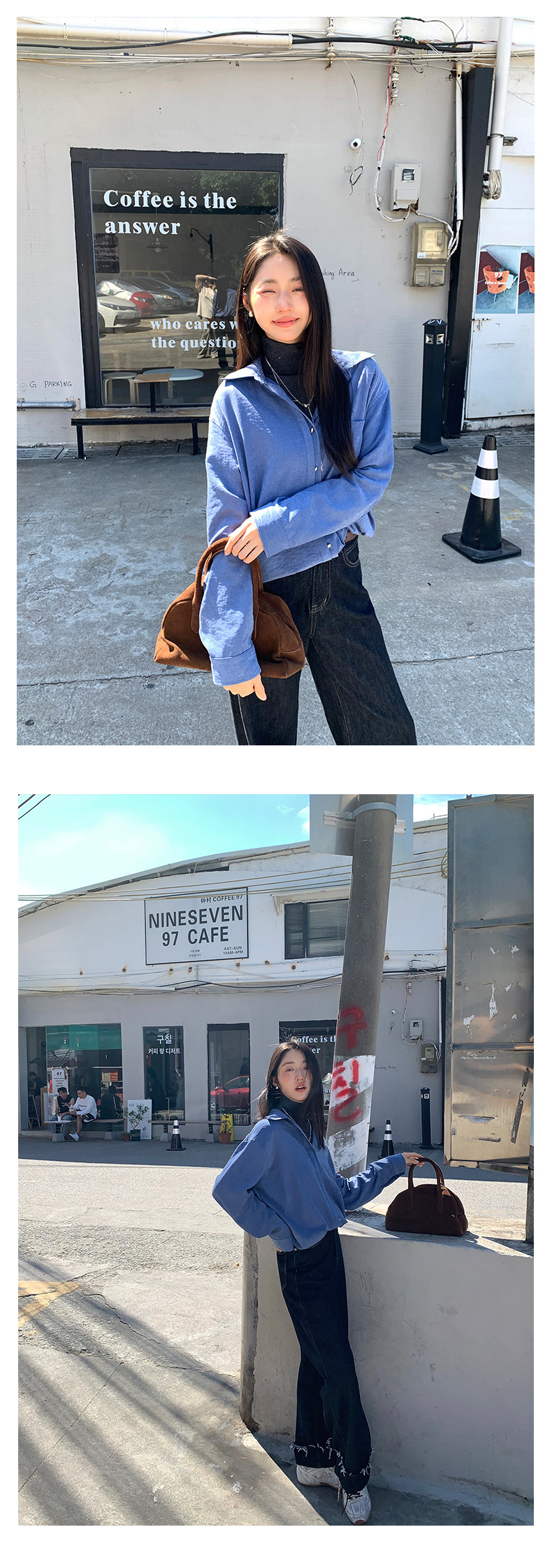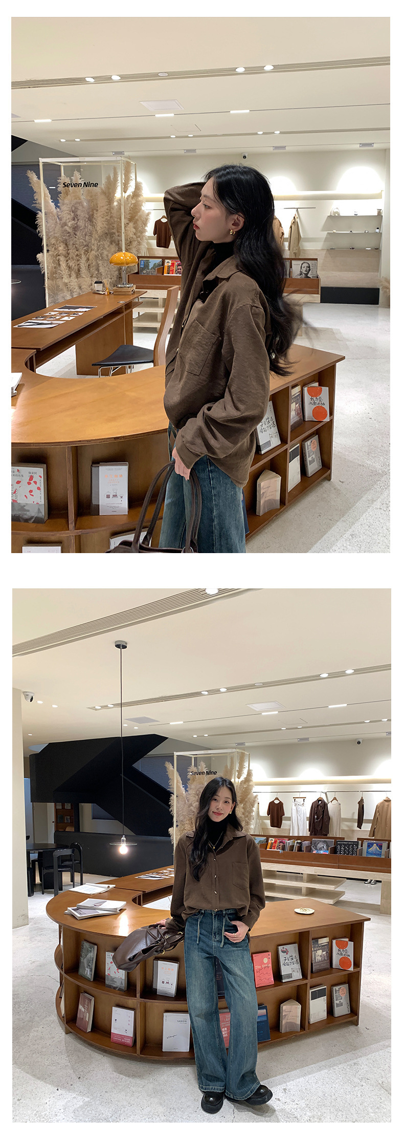 *o-ha-you*【FHZ145CY9023】法式雙開門絨感金屬扣襯衫2024年冬季長袖疊穿慵懶-4色-如有需要請先諮詢
