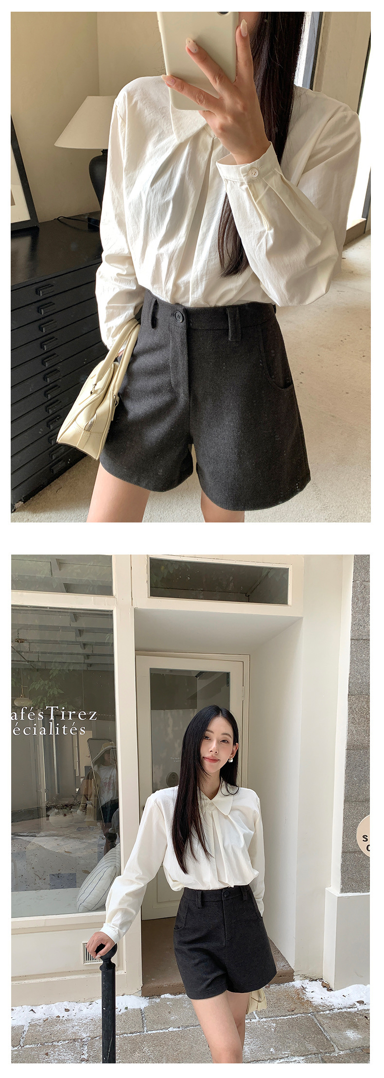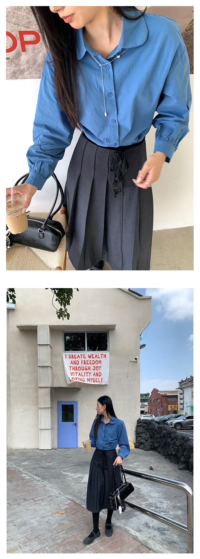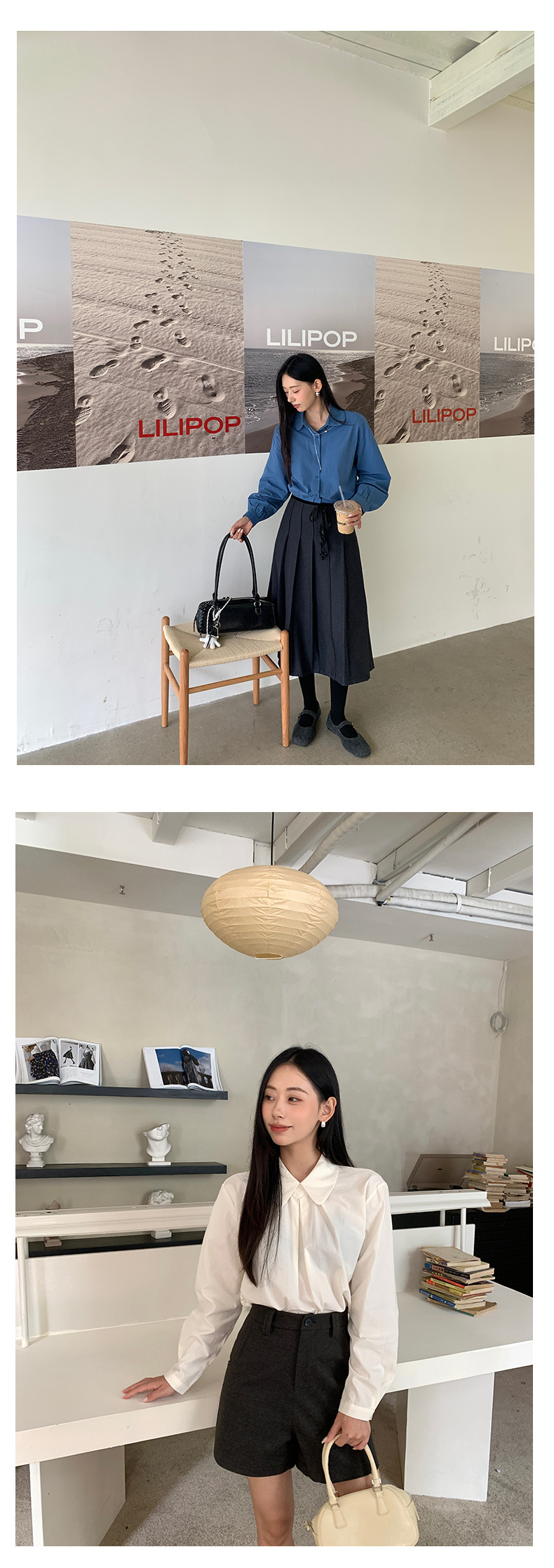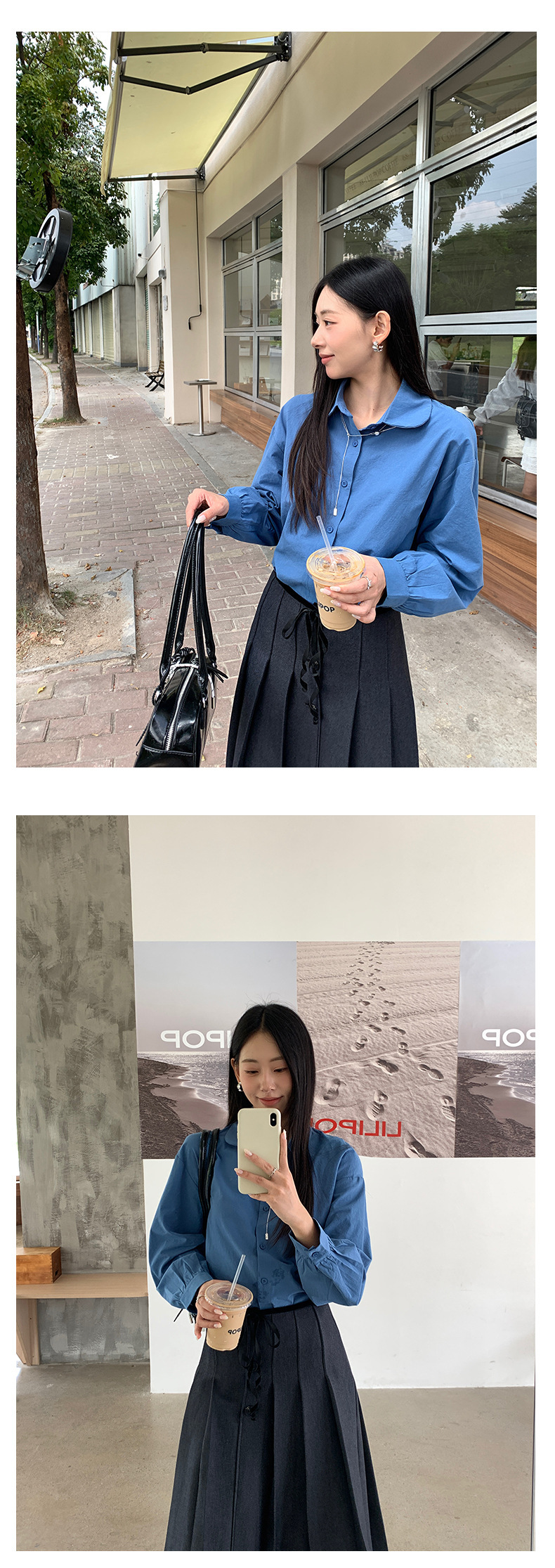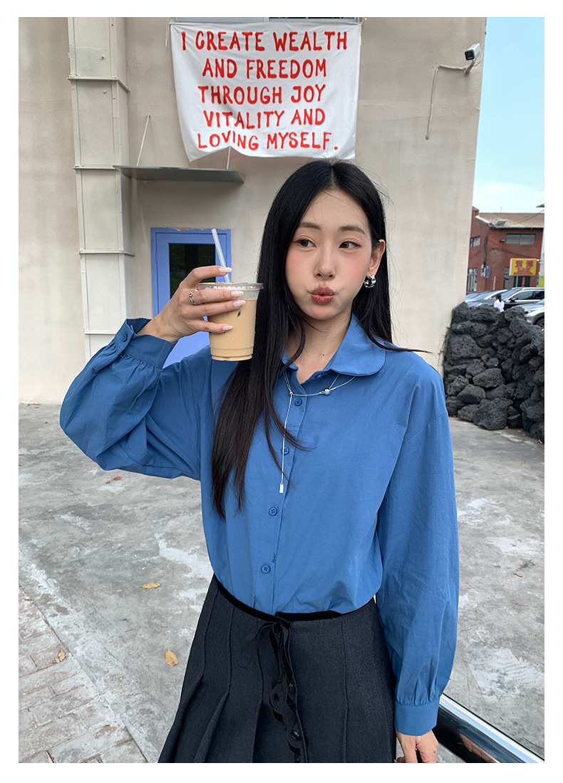 *o-ha-you*【FHZ145CY9056】學院風娃娃領純色襯衫2024年冬季寬鬆百搭甜美疊穿美女-2色