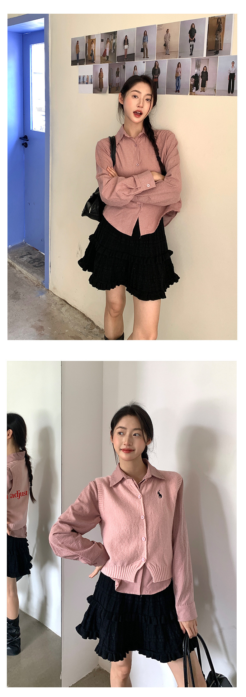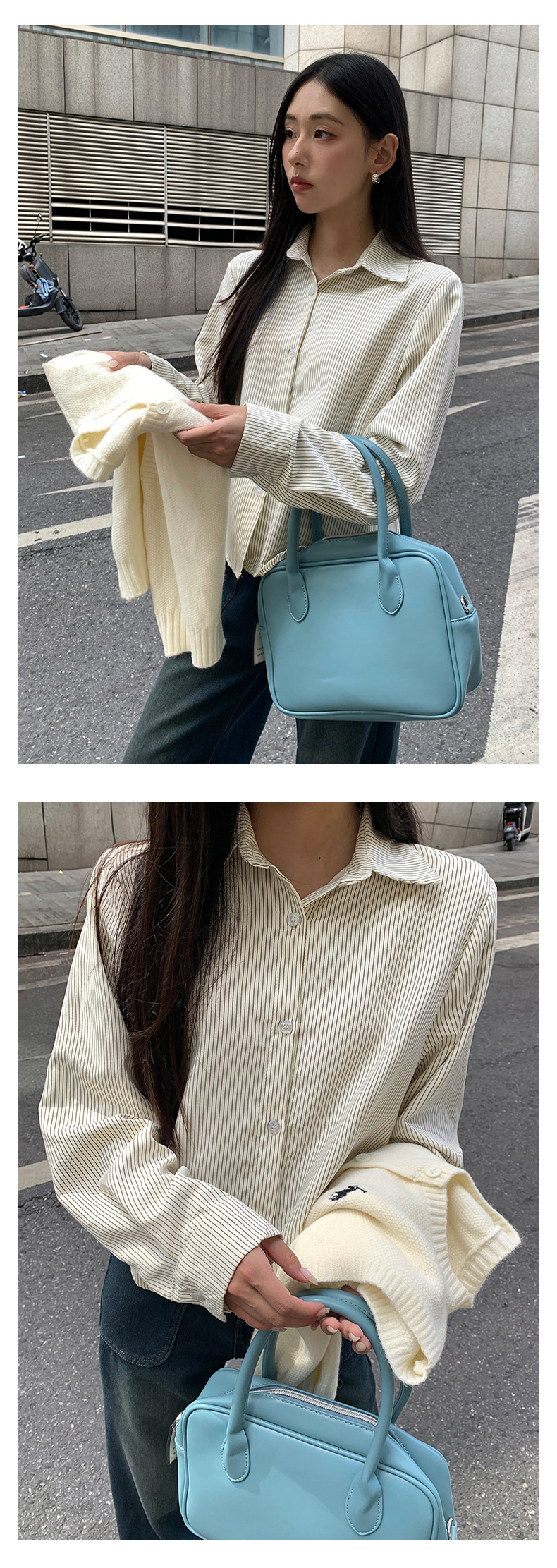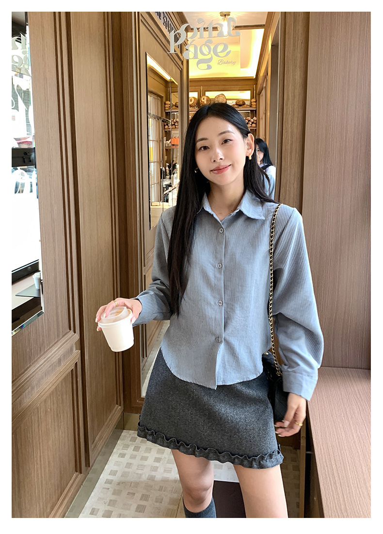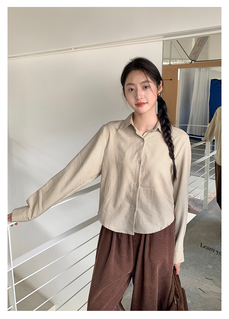 *o-ha-you*【FHZ145CY9094】韓系復古條紋襯衫2024年冬季長袖寬鬆職場通勤上衣-6色