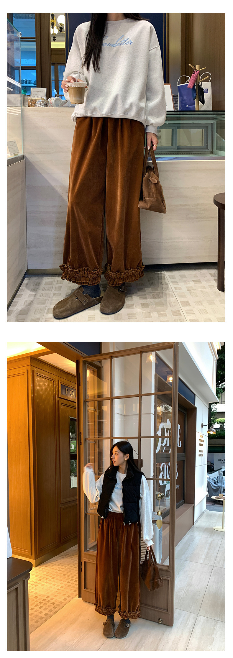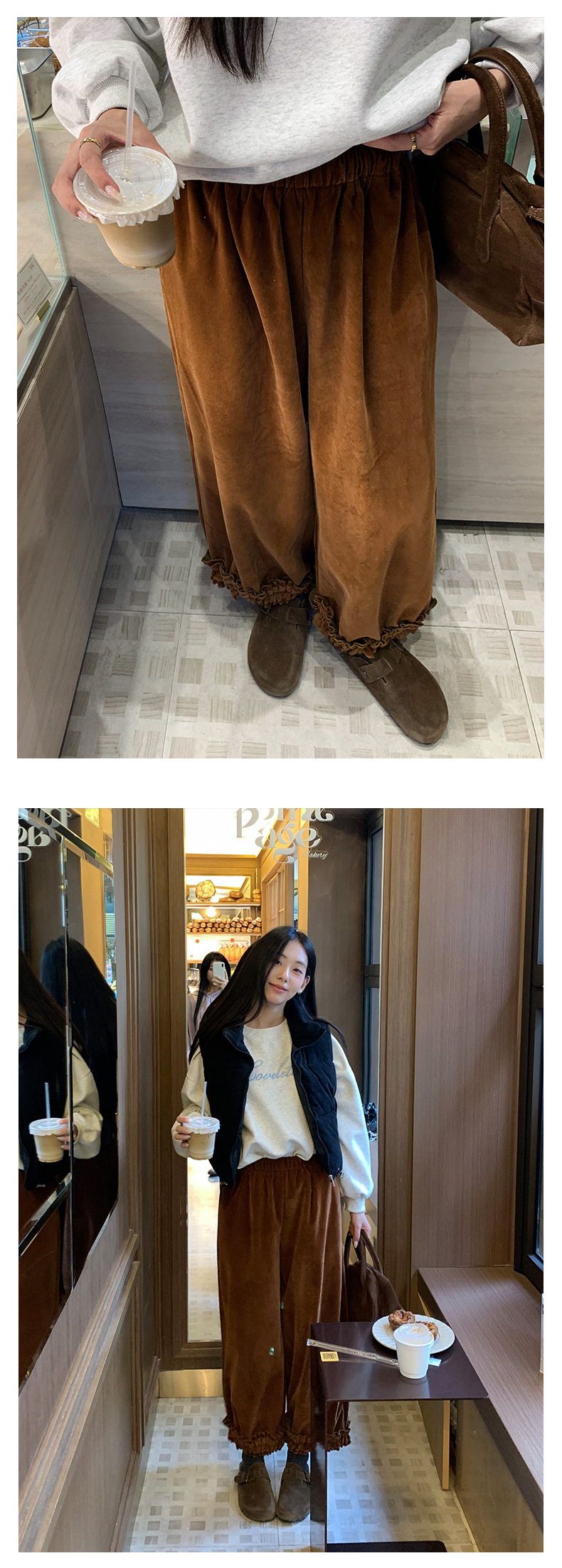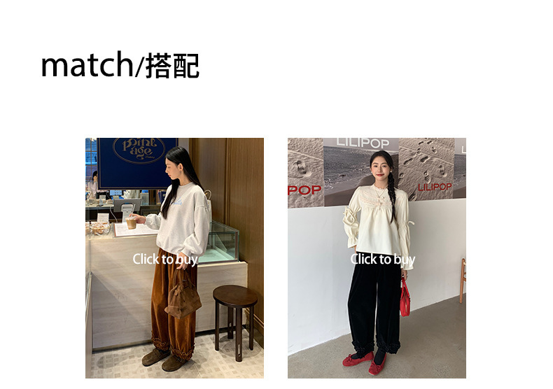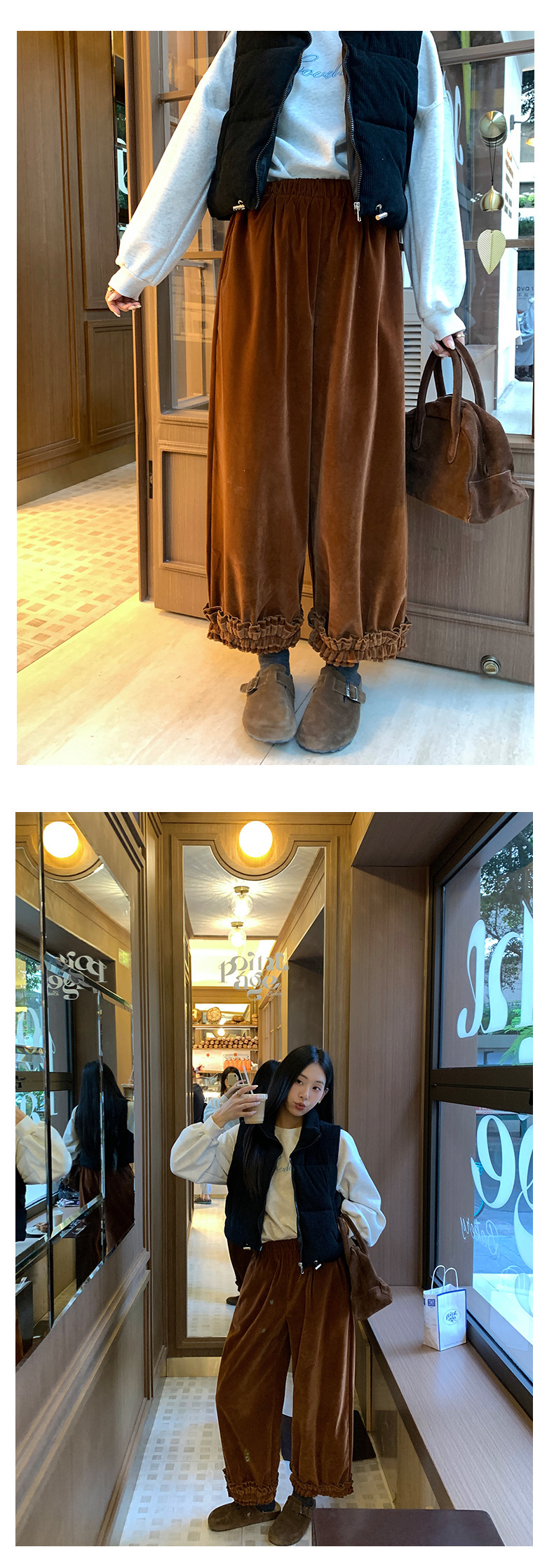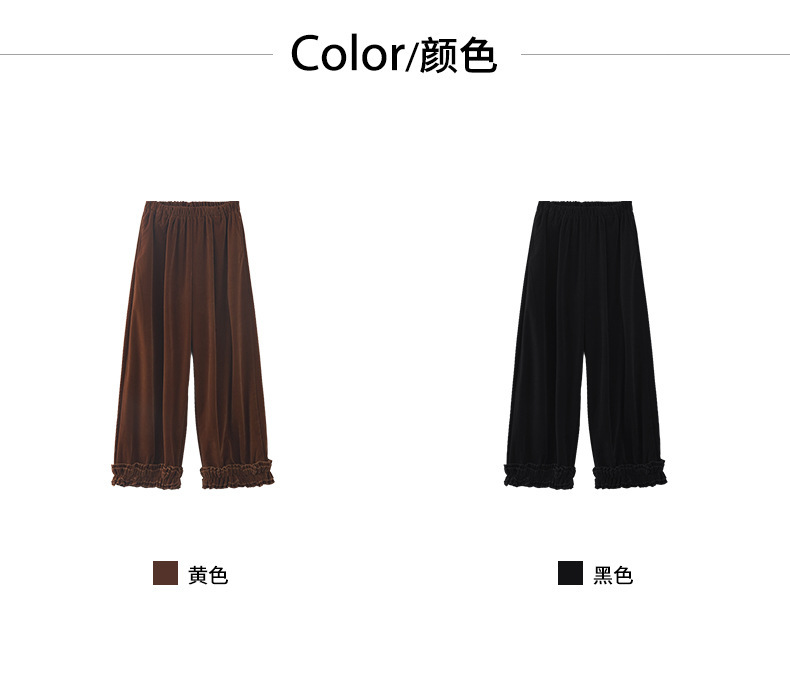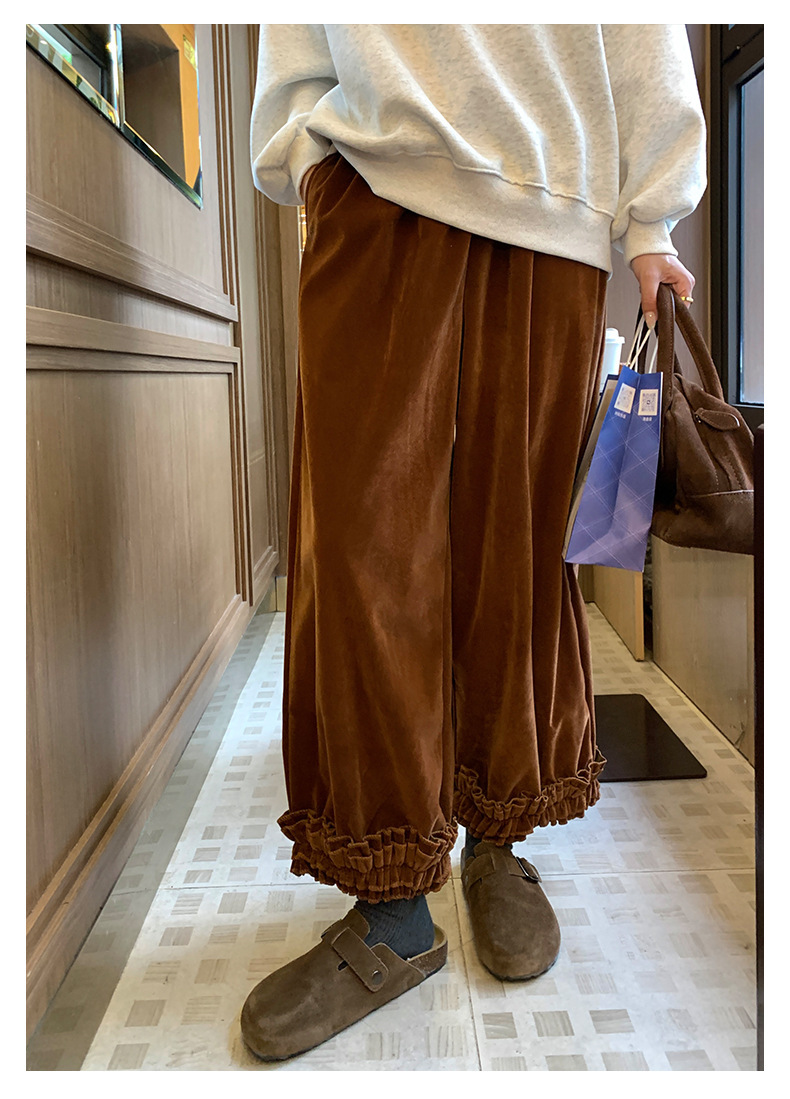 *o-ha-you*【FHZ145KY10000】韓國復古絲絨闊腿褲2024冬木耳花邊寬鬆直筒長褲-2色