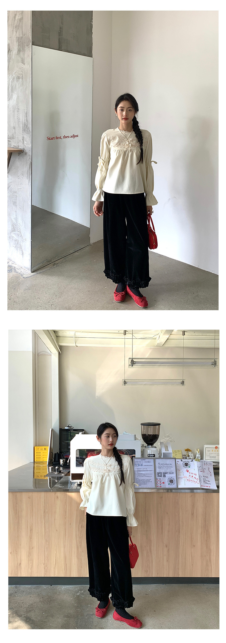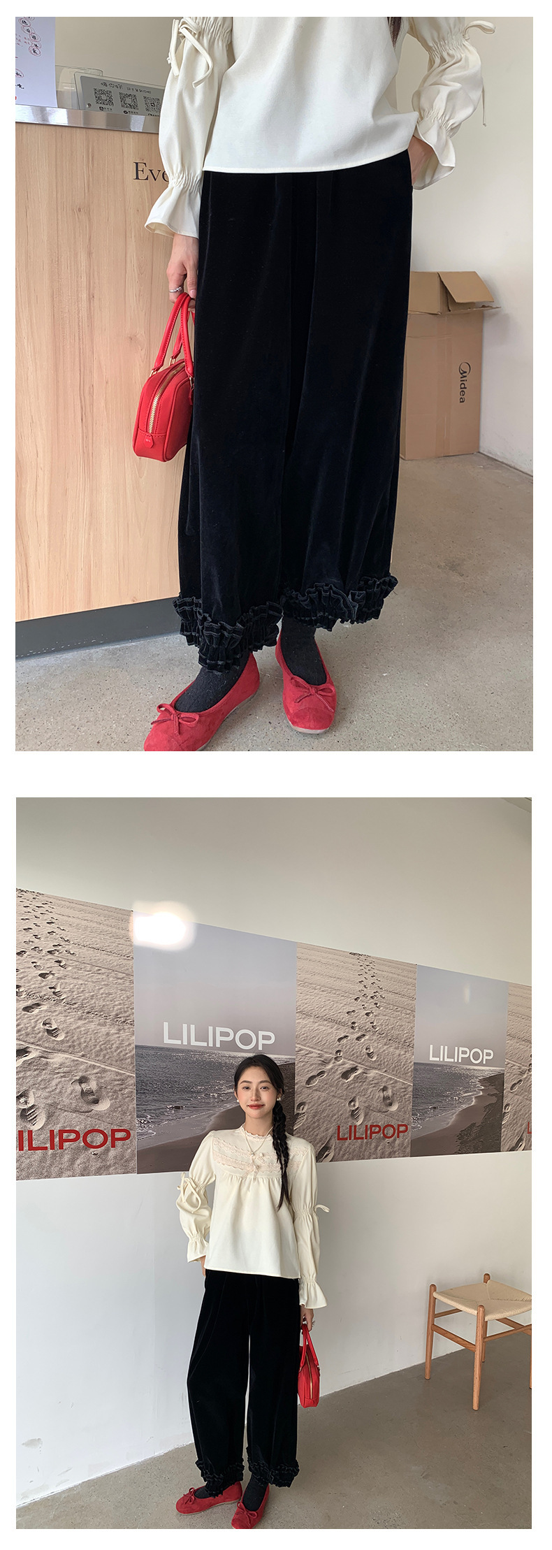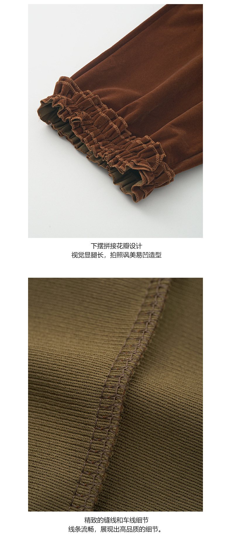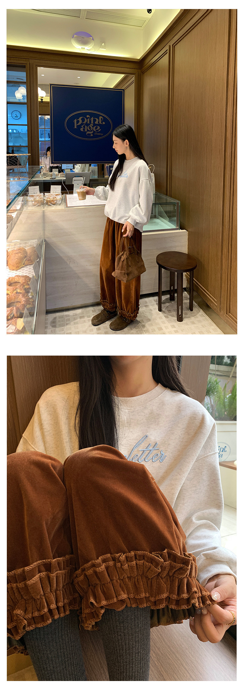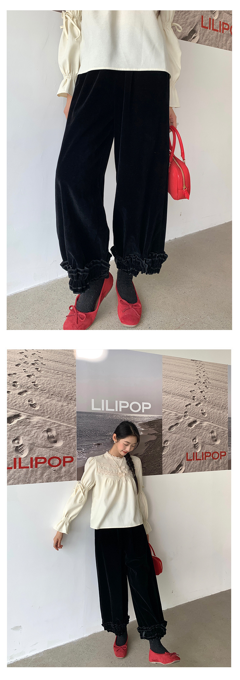*o-ha-you*【FHZ145KY10000】韓國復古絲絨闊腿褲2024冬木耳花邊寬鬆直筒長褲-2色