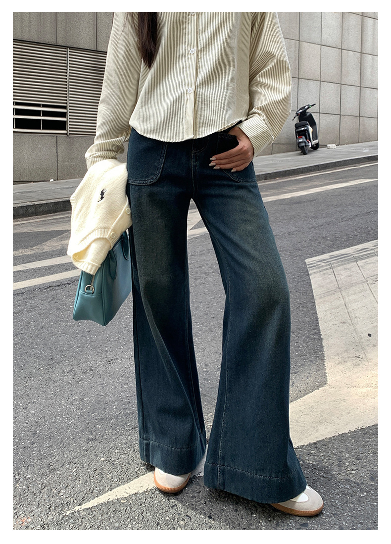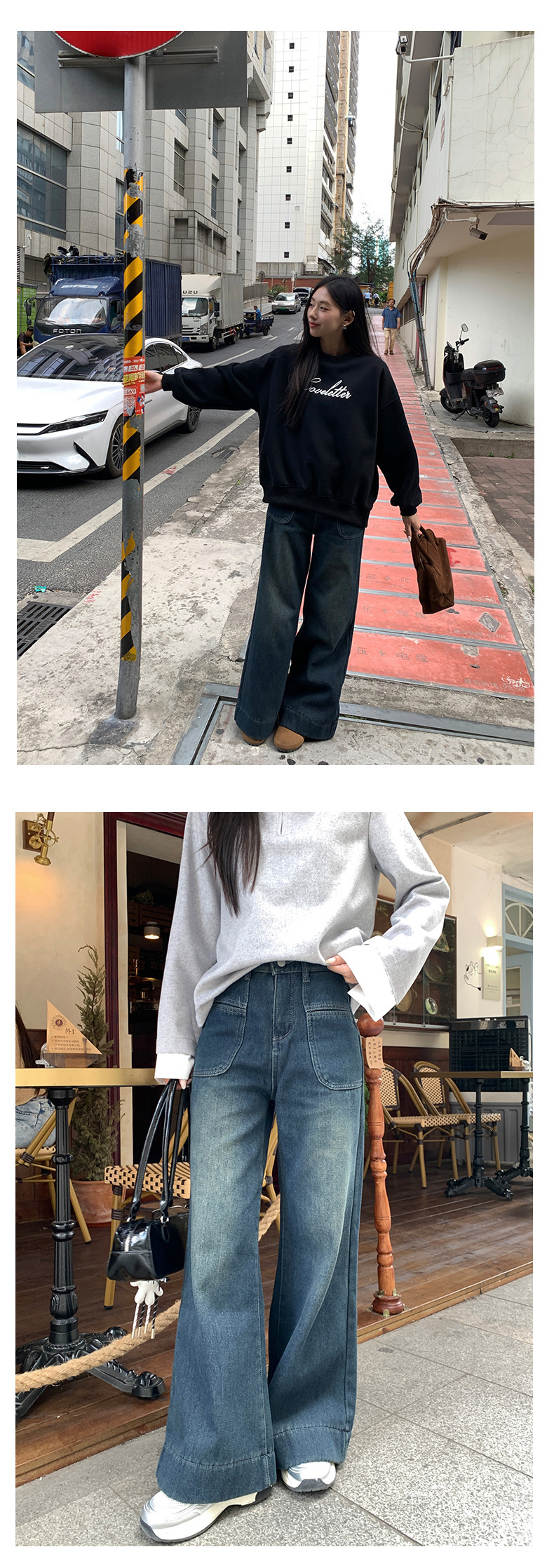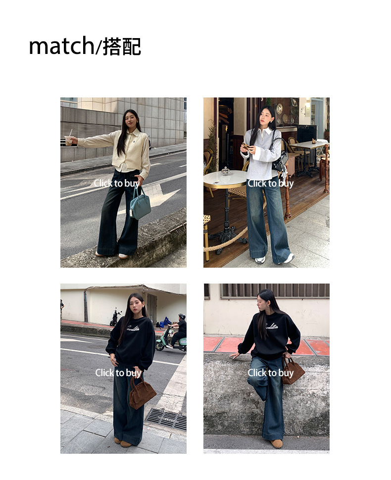 *o-ha-you*【FHZ145KY10002】韓系加絨淨色牛仔褲2024年冬季微喇保暖加厚顯瘦