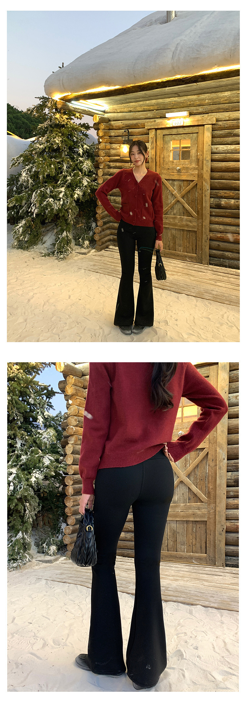 *o-ha-you*【FHZ145KY10067】美式加絨喇叭鯊魚褲2024年冬季保暖時尚高彈褲子-4色