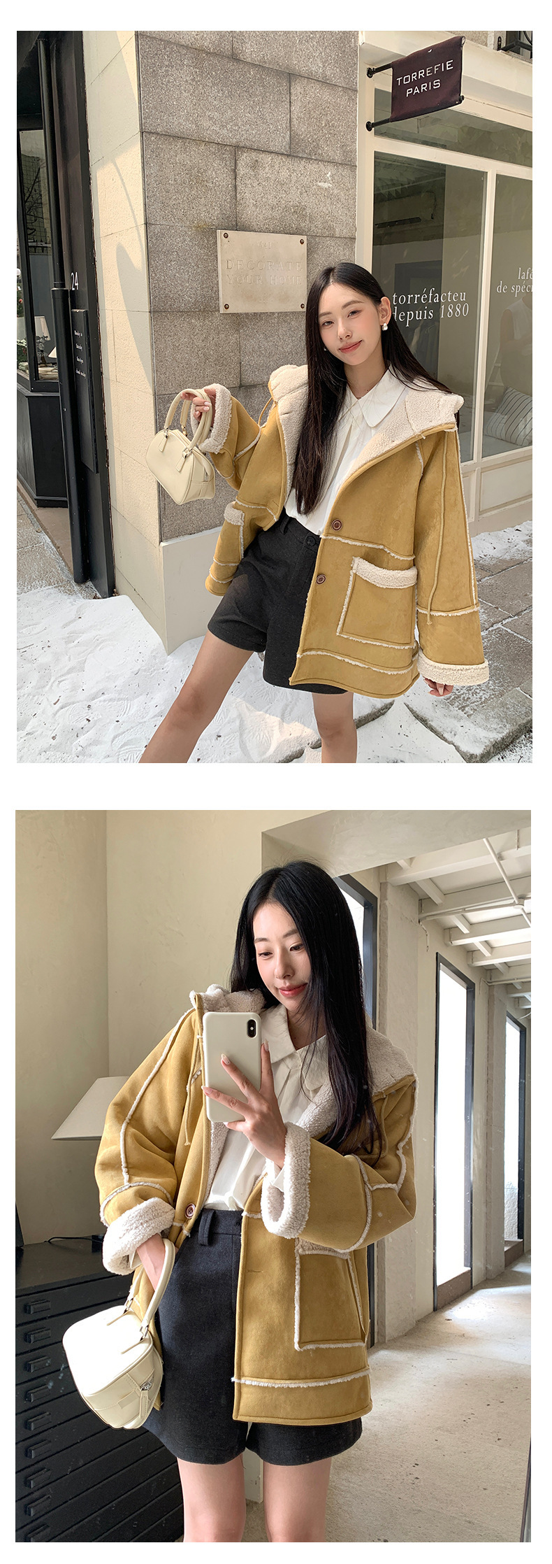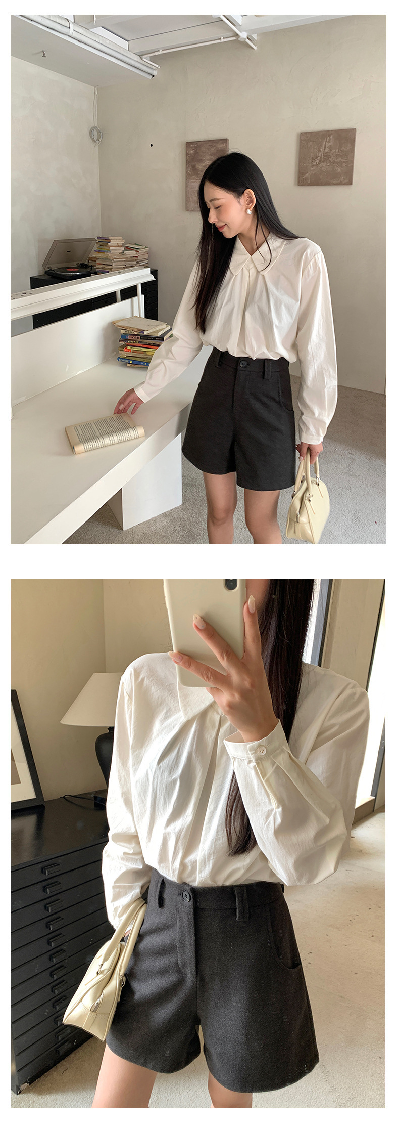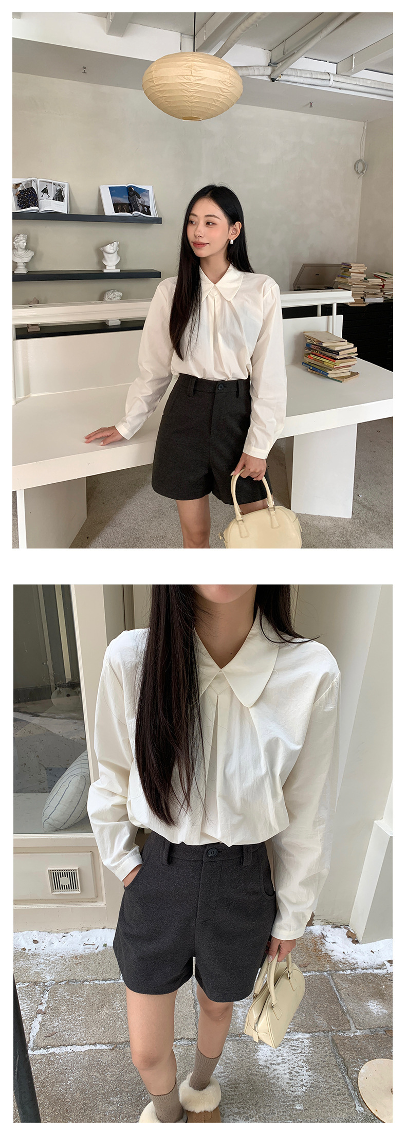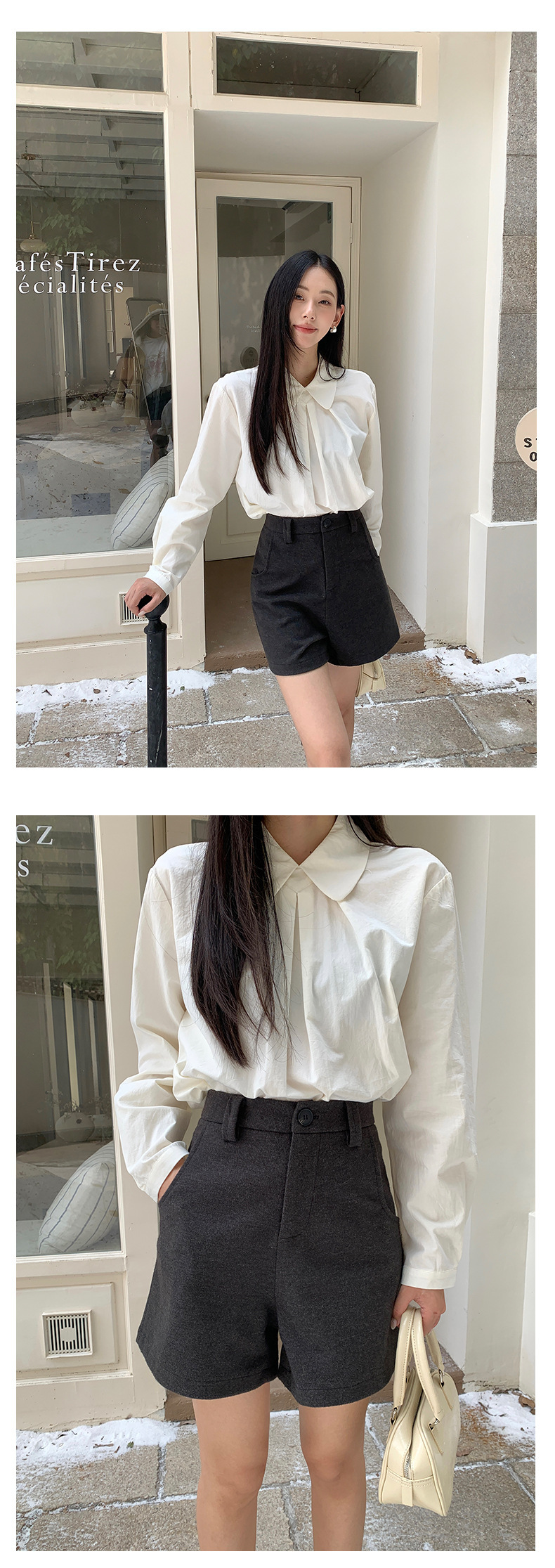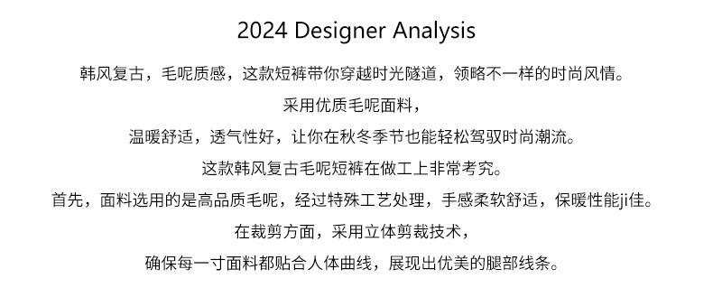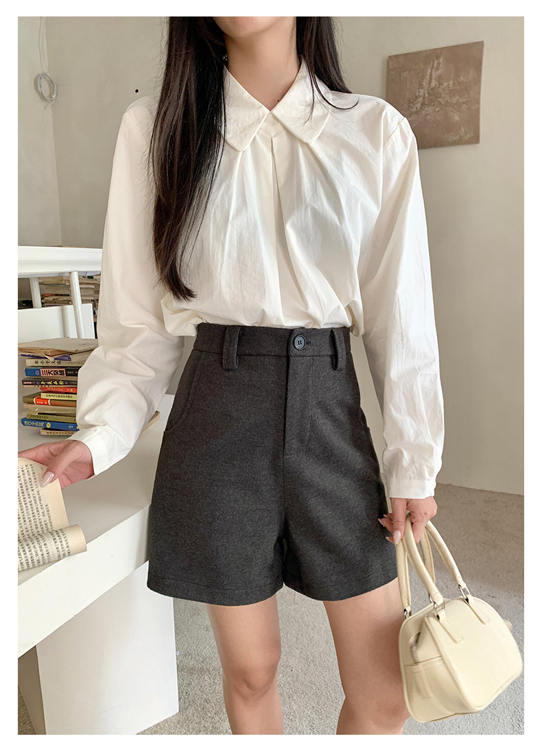 *o-ha-you*【FHZ145KY9038】韓風復古毛呢感短褲2024年冬疊穿寬鬆口袋極簡褲子