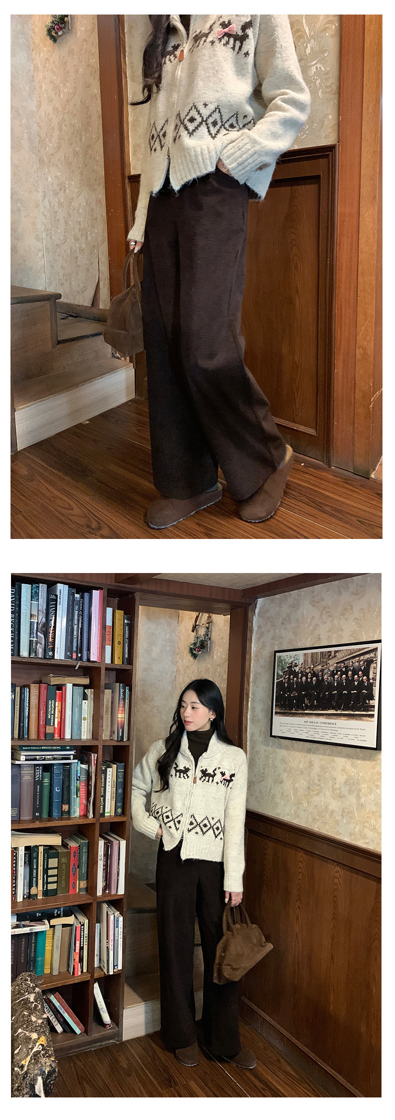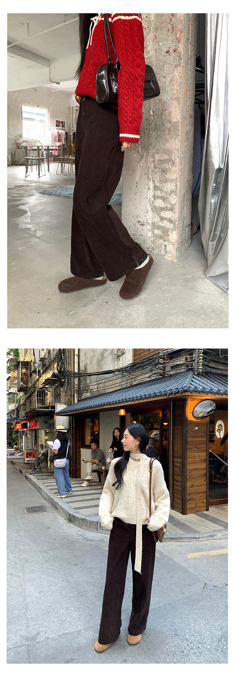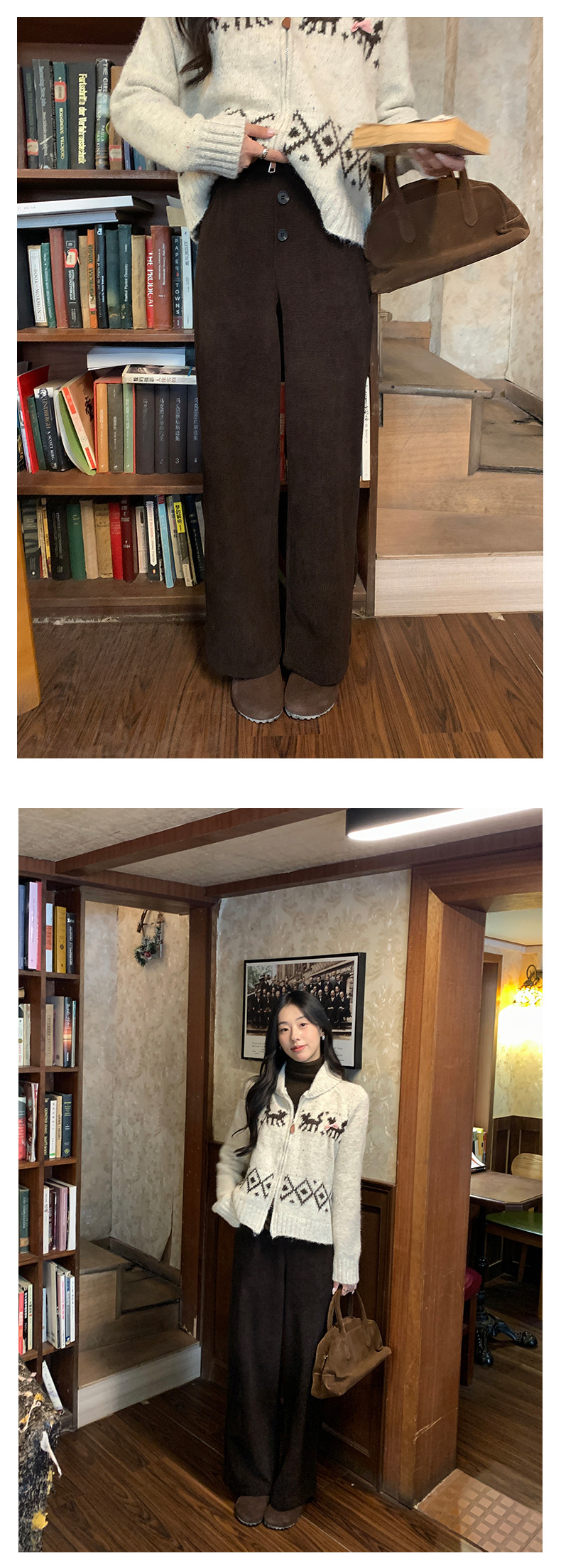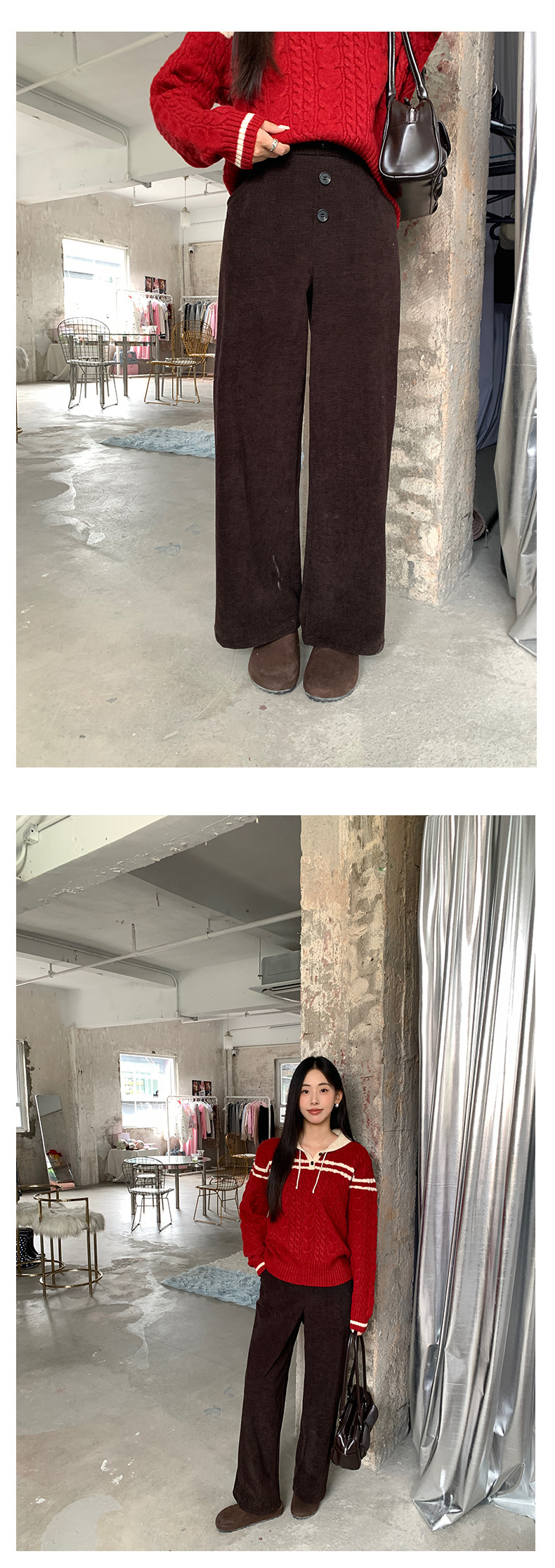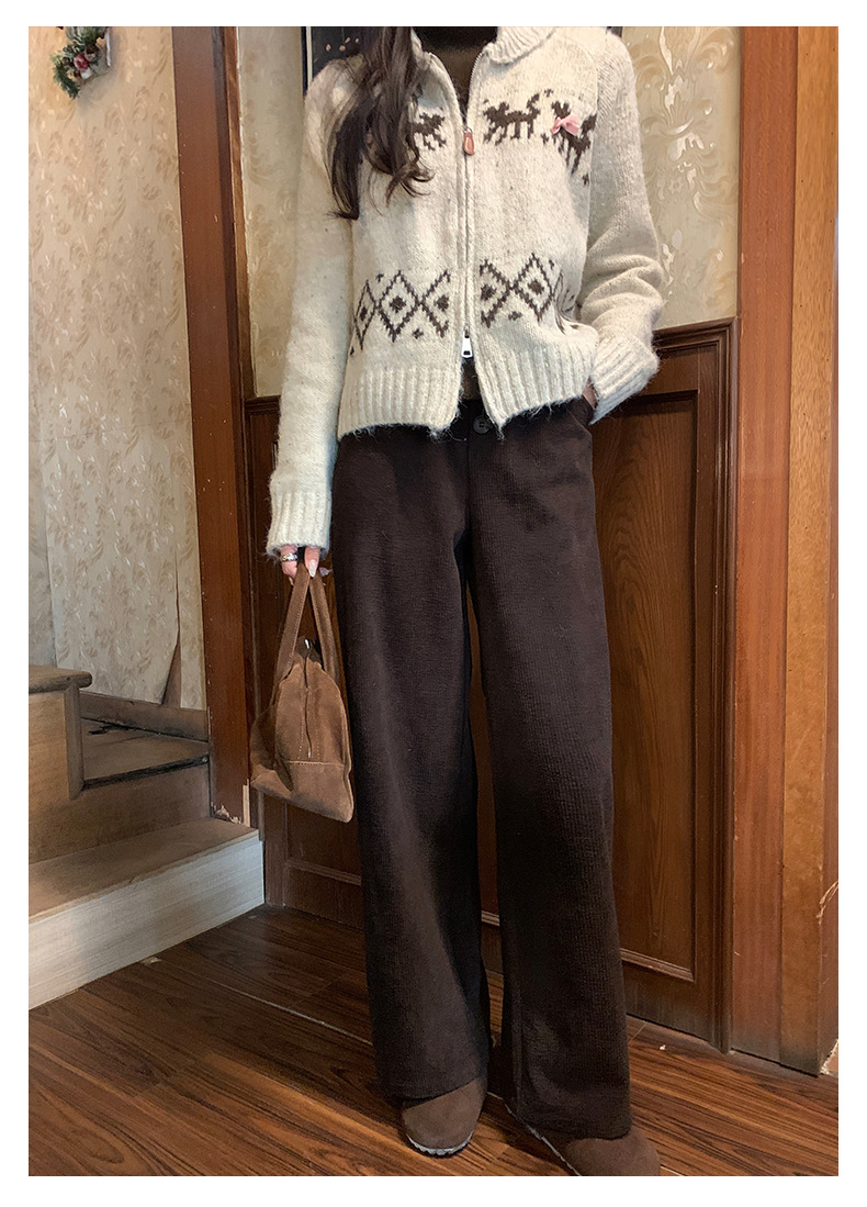 *o-ha-you*【FHZ145KY9041】復古高腰直筒休閒褲2024冬季加絨闊腿寬鬆褲