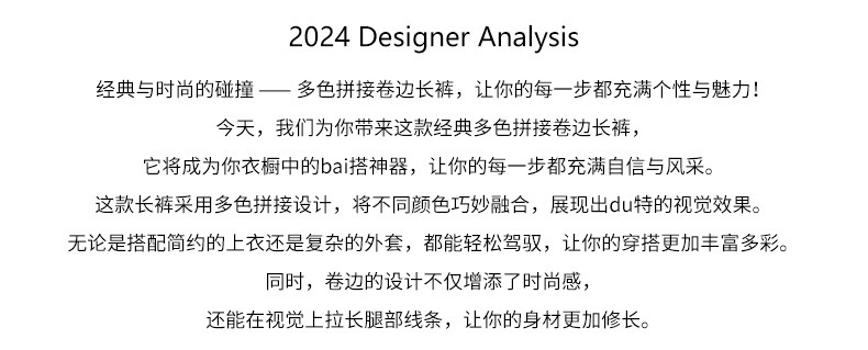 *o-ha-you*【FHZ145KY9062】經典多色拼接捲邊長褲2024年冬季顯高收胯寬鬆拉鍊-12色