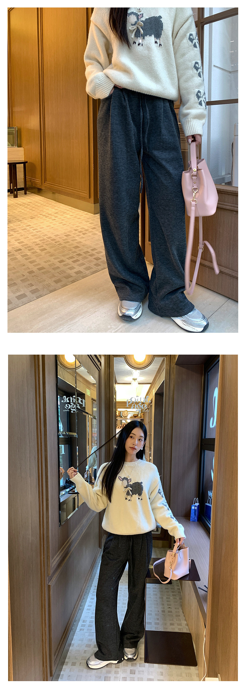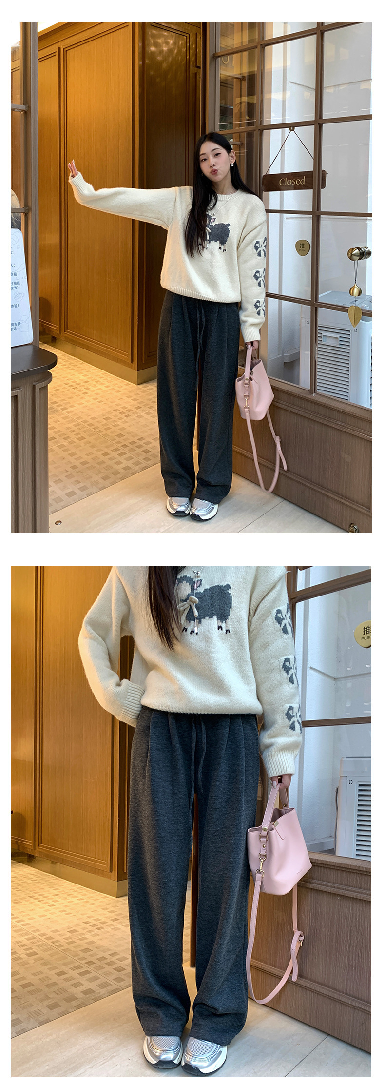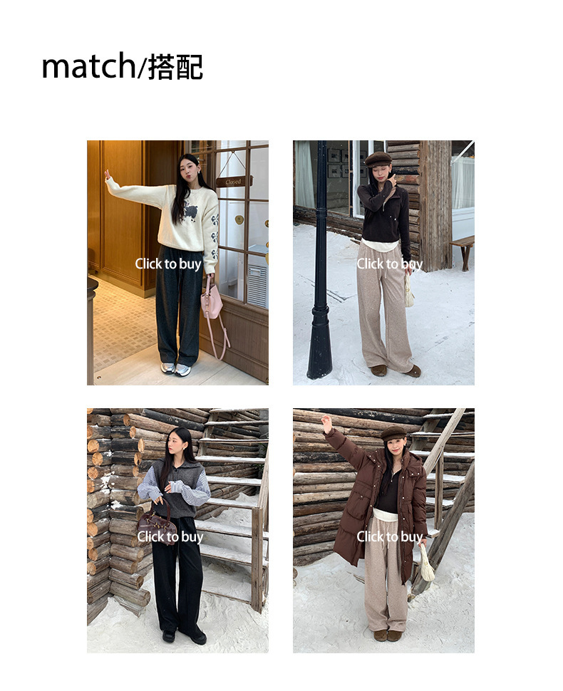 *o-ha-you*【FHZ145KY9099】韓系休閒闊腿褲2024年冬季慵懶針織糯米褲保暖加厚-4色