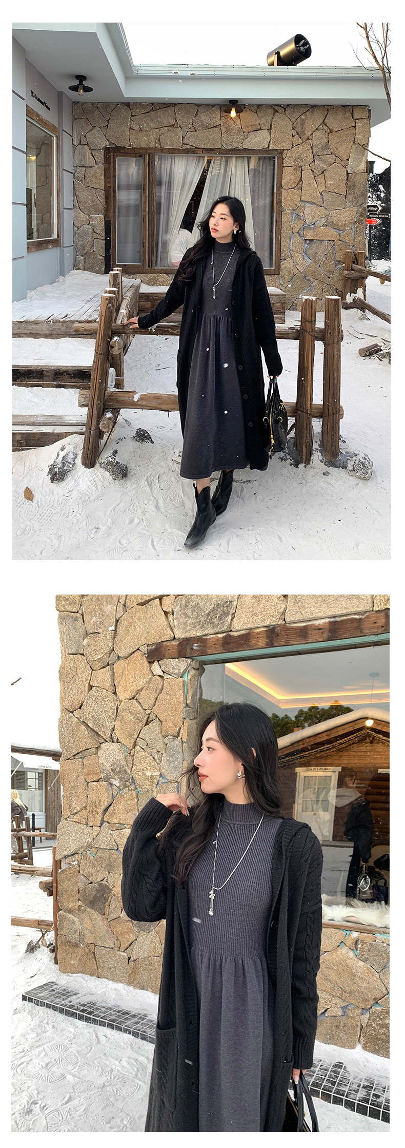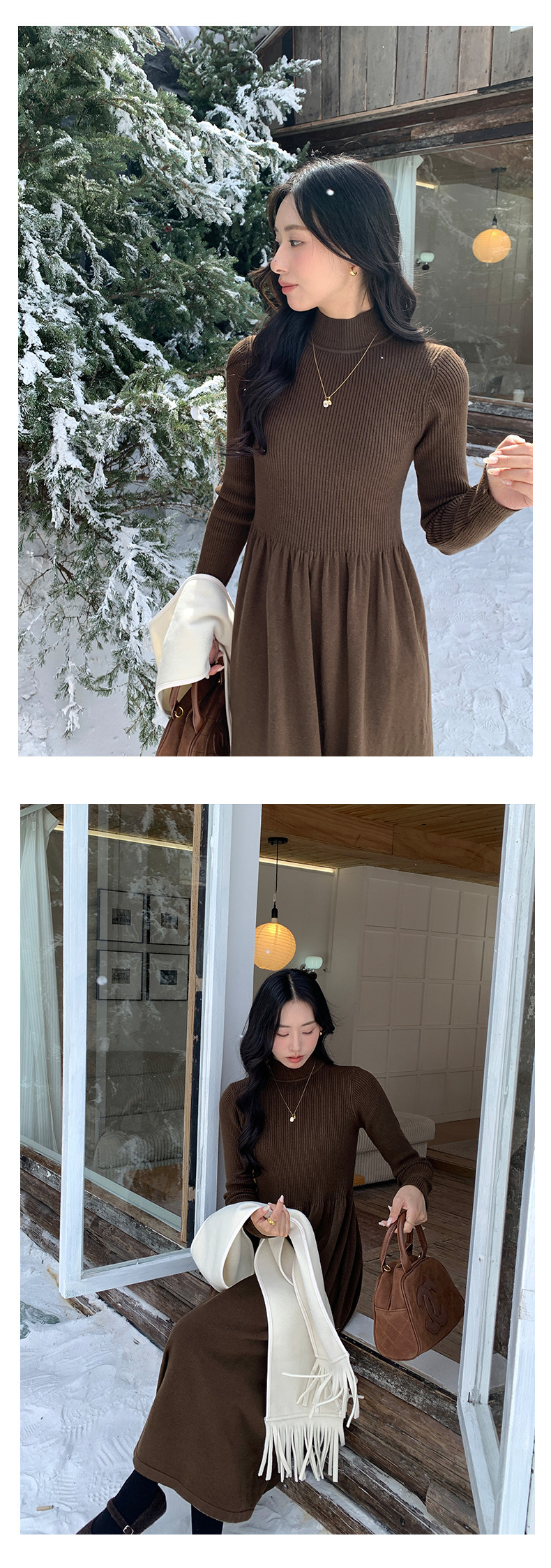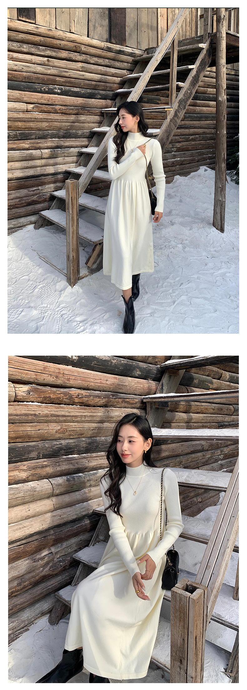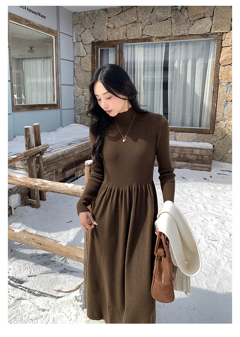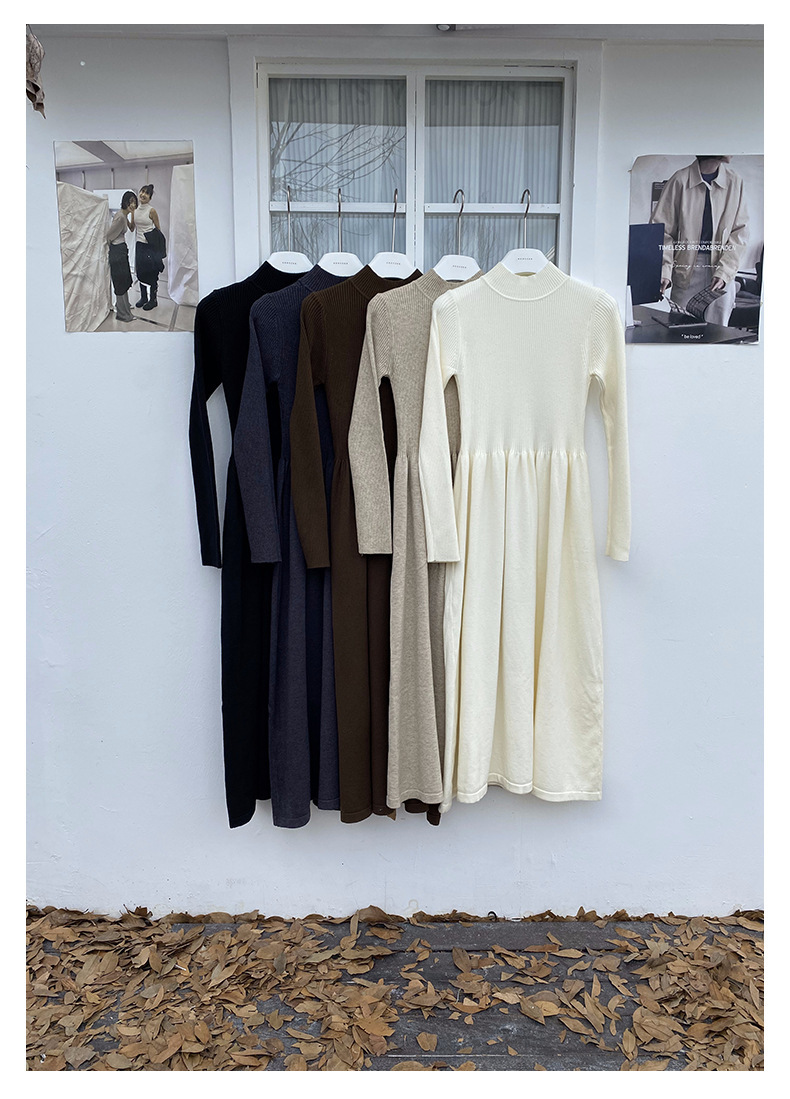 *o-ha-you*【FHZ145LY10025】法式復古針織連衣裙2024冬內搭氣質長版收腰顯瘦洋裝-4色